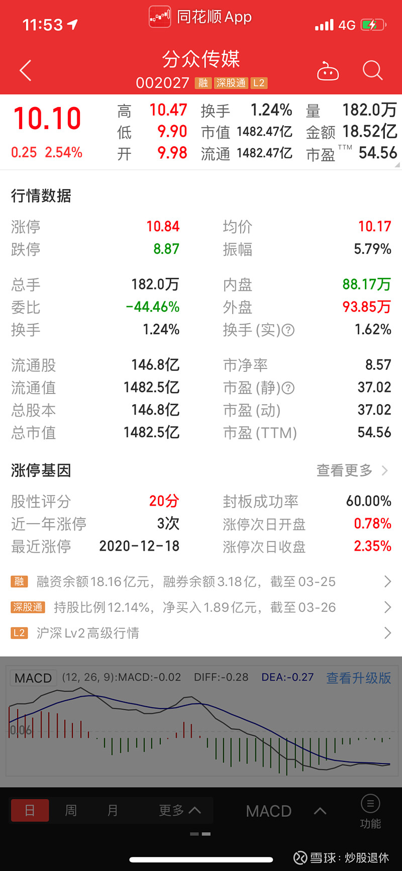 分众传媒(002027):每股净资产 1.26元,每股净利润 0.28元,历史净利润年均增长 29.59%,预估未来三年净利润年均增长 29.27%,更多数据见:分众传媒002027核心经营数据 分众传媒的当前股价 10.06元,市盈率 27.68,未来三年的估值假设和预期收益率如下:15倍PE,预期收益率 -58.13%;20倍PE,预期收益率 -44.17%;25倍PE,预期收益率 -30.21%;30倍PE,预期收益率 -16.25%。 周末确实玩嗨了哈哈哈,和圈内几个朋友聚了聚 三月份确实是短线行情贼牛逼,均值50个点收益,我这种转型的选手,羡慕啊,打算以后风格要随着市场变化切换了,不会死守一种风格。 给个福利吧,也是这次交流的收获之一:市场行情越差(抱团),就去做超短,趋势好起来了,超短就别做了。但是抱团真的回来了吗?不一定哈,稳几天再看看。 先说下天赐材料,量能有点稍微大了。按我以前做短线的思路,必走。应该走趋势了,周末出了个新能源利空。做时间的朋友吧,转型确实不能浮躁。 下面交作业了,答应你们的大菜。 分众传媒 这个票不研究还好,这完全比天赐还牛逼啊。 先看下年报, 公告2020年业绩快报收入120.97亿元,同比下降0.32%,归母净利润40.04亿元,同比增长113.55%,落入业绩预告38.6-42.6亿元区间。同时预告1Q21业绩,归母净利润12.20-13.80亿元,较去年3,789万元低基数大幅增长3120.08%-3542.39%,业绩预告超出市场预期。梯媒认同度提升,需求强劲创收能力再上台阶。公司4Q20实现营收42.22亿元,同比增30.69%,为历史收入最高季度。其中,梯媒实现收入38.95亿元,同比增长超过45%,影院在疫情后快速复苏,实现营收超过3亿元。公司在前期点位扩张后,通过众多品牌引爆案例大幅提升了客户对分众梯媒的认同度,刊挂率明显提升。成本方面,公司在优化资源的同时,保持了一定的点位扩张,同时影院广告恢复使得相关成本亦有所增长,4Q20营业成本12.16亿元,毛利率71.19%,环比小幅提升。淡季不淡,1Q21需求旺盛,广告主结构稳中有进。展望一季度,春节档带动影院业务进一步回暖,而楼宇广告淡季不淡,1月初刊例价上涨亦有效落地。根据CTR数据,1月电梯电视/电梯海报刊例花费同比增长19.8%/27.2%,我们预计1Q21公司有望实现收入35亿元,同比增长超80%。公司一方面深挖食品饮料等细分赛道为代表的消费品以及汽车、电商广告主投放需求,提升收入基础及稳定性,另一方面把握新兴互联网应用、游戏、基金等新兴广告主的引爆需求,增强收入弹性,使得单季度收入明显提升,全年需求趋势良好,整体盈利能力得以释放。梯媒广告需求仍有提升空间,全年业绩可期。过去三年,以分众为代表的电梯媒体点位快速扩张,覆盖人群面提升;同时在短视频等在线效果广告冲击下,其他传统品牌广告媒体日渐式微(CTR数据显示,2020年仅电梯LCD/电梯海报刊例花费增速超过20%,电视/报纸/杂志/广播/传统户外均负增长),而电梯作为人群必经场所比较优势凸显,逐渐成为品牌广告主曝光的必选媒体及品牌引爆案例的选择。目前据测算,梯媒仅占广告市场1.5%左右市场份额,具备较大提升空间。公司表示,未来将积极有序的加大优质资源点位的拓展力度,增加媒体资源覆盖的密度及广度,看好公司随着点位拓展,品牌广告主加码投放、及LBS竖屏本地生活广告探索,经营业绩长期、稳定增长的趋势。机构考虑需求趋势向好上调2021年收入2.8%至170.63亿元/净利润4.2%至63.55亿元,引入2022年净利润79.14亿元。当前股价对应2021年23倍PE,低估值高成长,看好公司在生活全媒体领先优势,业绩增长确定性高,继续坚定看好。 我的看法 同样属于高景气赛道,为啥这么说,因为我之前是做流量投放的产品的,现在线上流量成本越来越高,客户漏损也越来越高。简单来说,就是线上流量越来越贵,越来越低质。投放这块,现在已经慢慢凸显线下传统的性价比了,包括铺天盖地的医美和线上教育,充斥在生活的各个角落。 高业绩增速,年报季报已经反应出来了。 综上,又是机构喜欢的菜。现在机构大致都是60的仓吧,企稳后肯定又是好好的票er,可建底仓。持股周期半年起步。 为啥不将超短? 因为我觉得超短该毕业照了~最后几天了,次新关注下非碳中和的,提醒大家,周末愉快。 作者:炒股退休原文链接:https://xueqiu.com/1265262904/175667393 转载请注明:www.51xianjinliu.com » 分众传媒逻辑分享 喜欢 (0)or分享 (0)