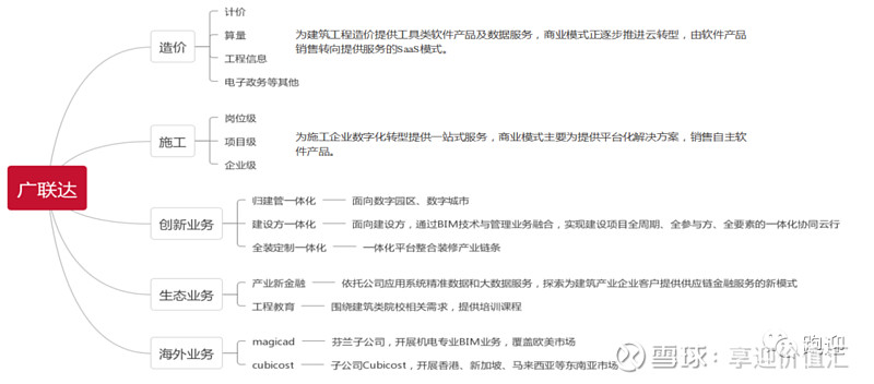 广联达(002410):每股净资产 5.56元,每股净利润 0.29元,历史净利润年均增长 23.02%,预估未来三年净利润年均增长 55.1%,更多数据见:广联达002410核心经营数据 广联达的当前股价 69.88元,市盈率 251.06,未来三年的估值假设和预期收益率如下:15倍PE,预期收益率 -83.29%;20倍PE,预期收益率 -77.71%;25倍PE,预期收益率 -72.14%;30倍PE,预期收益率 -66.57%。 《高瓴、高毅等调研广联达》 本文首发于跑迎公众号今天我们一起梳理一下广联达,公司立足建筑业,围绕工程项目的全生命周期,为客户提供数字化软硬件产品、应用解决方案及相关服务。公司业务领域正逐步由招投标阶段拓展至工程项目的全生命周期,产品从单一的预算软件扩展到数字造价、数字施工、数字设计等多个业务领域,涵盖工具软件类、解决方案类、大数据、移动互联网、云计算、智能硬件设备、产业金融服务等多种业务形态。 根据业务阶段及服务客户的不同,公司业务划分为两大业务板块和数个创新业务单元,分别为数字造价业务板块、数字施工业务板块,数字供采、数字城市、数字金融、数字教育等创新业务单元;根据业务区域不同,又分为国内业务和海外业务。 数字造价业务板块属于公司成熟业务,主要为建设工程造价提供工具类软件产品及数据服务,包括工程计价业务线、工程算量业务线和工程信息业务线等。 数字施工业务板块是公司重点突破的成长业务,主要聚焦工程项目建造过程,通过“平台+组件”的模式,为施工企业提供平台化解决方案以及软硬件产品销售。 海外业务方面,一部分为数字造价业务的国际化系列产品Cubicost,主要开拓东南亚市场;另一部分依托芬兰子公司机电专业BIM相关业务,形成MagiCAD产品线,主要覆盖欧美等市场。 建筑行业信息化是指运用信息技术,特别是计算机技术、网络技术、通信技术、控制技术、系统集成技术和信息安全技术等,改造和提升建筑业技术手段和生产组织方式,提高建筑企业经营管理水平和核心竞争能力,提高建筑业主管部门的管理、决策和服务水平。建筑业的信息化根据主体和产业链环节不同,主要又包括政务管理信息化、行业信息化和企业信息化。 企业信息化是整体信息化的关键,其框架有包含了 IT 基础设施、核心业务管理系统和综合管理信息系统等,其中核心业务管理系统针对建筑企业业务流程进行行业化、个性化的管理,主要围绕工程项目建设开展,因此其信息化关键在于工程项目建设的信息化,根据项目周期又分为五个阶段,分为可研阶段(项目策划)、设计阶段(设计管理)、采购阶段(采购管理,工程招标,工程投标,物资采购招投标),施工阶段(施工管理,施工策划、工程分包、项目施工、多项目管理等)以及运维管理(运维管理)。 建筑信息化渗透率提升空间广阔。技术维度,随着 BIM 概念引入我国建筑行业,互联网、物联网、大数据、人工智能等技术的深入发展,建筑业正经历从二维图纸到三维设计和建造的第二次信息革命,BIM、云计算、大数据、人工智能等新技术的持续落地,使得建筑行业不断重构,共同推动建筑信息化的发展。从产业链维度看,招标、设计、造价等环节的信息化水相对较高,而施工信息化程度尚在起步阶段。 建筑信息化依托于整个建筑行业的发展。我国建筑行业体量巨大,2019 年我国建筑行业总产值达到 24.84 万亿元,在国内 GDP 中的比重保持在 25%左右,是我国经济发展的重要支柱产业。 同时,建筑业企业的产值增长速度明显放缓,近年维持在 10%以下的增速水平。建筑企业亟需从过去野蛮扩张的阶段,向精细化管理、提质增效的方向转型。建筑行业人均创收和人均创利增速放缓,建筑行业产值利润率亦进入平台期。 横向对比看,2018 年,中国建筑信息化投入占总产值的比例仅为 0.10%,不仅远低于发达国家 1%的平均水平,还一定程度低于国际平均水平 0.30%,因此中国建筑信息化未来仍有广阔的发展空间。 根据中国产业信息网的统计数据,2011 年以来中国建筑信息化市场规模持续保持快速增长趋势,到 2018 年市场规模已达 245 亿元,较 2017 年增长 18.53%,建筑信息化市场的增速显著高于建筑行业总产值的增速。 公司是国内工程造价软件龙头,目前市占率超过60%。通过收购兼并方式发展扩大施工业务,未来将持续发展该方面,来带动公司营收增长。公司2013 年正式宣布云转型,2015 年开始向数字建筑产业平台服务商转型,2017 年公司“七三”战略启动,造价云转型落地推进,施工业务进展显著,转型不断取得新突破。 2020 年是广联达的“八三”战略开局之年,“八三”期间,公司目标以 3+X,实现业务持续健康快速增长。其中“3”指的是造价施工比翼双飞、设计软件战略突破、数字建筑平台成型(设计施工一体化),”X”则是指在数字装修、数字金融、数字供采等新业务上实现突破,实现业务的横向平台化和纵向一体化发展,向领先的数字建筑平台厂商发展。 一、建筑信息化龙头 广联达成立于1998年;2007年完成股份制改制;2010年深交所上市;2013年正式发布云战略;2014年收购全球领先的MEP设计和施工软件公司芬兰 Progman;2015年正式宣布向“数字建筑产业平台服务商”转型;2017年“七三”战略开局之年;2018年首提BIM进入3.0时代;2019年“七三”战略寿光;2020年“八三”发展战略启动。 二、业务分析 2015-2020年,本文后续发表于跑迎公众号 跑迎,致力于梳理好生意、