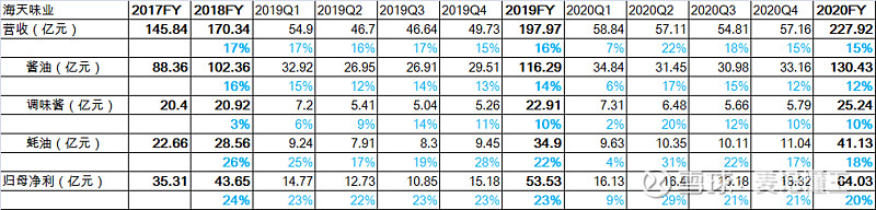 海天味业(603288):每股净资产 6.8元,每股净利润 1.98元,历史净利润年均增长 22.18%,预估未来三年净利润年均增长 17.51%,更多数据见:海天味业603288核心经营数据 海天味业的当前股价 170.8元,市盈率 86.44,未来三年的估值假设和预期收益率如下:15倍PE,预期收益率 -76.49%;20倍PE,预期收益率 -68.65%;25倍PE,预期收益率 -60.81%;30倍PE,预期收益率 -52.97%。 $海天味业(SH603288)$ 昨天发了年报,这里面最重磅的新闻就是他们“隐藏”了部分收入。 先说运营数据。营收上4季度单季的增速虽然比3季度继续回落,但基本落在了跟19年4季度非常接近的数字,蚝油还有所提速。归母净利润方面4季度增速与3季度持平。全年营收和利润增速对比19年均微降。 实际上我们从更长的时间来看,A股应该没有比海天更稳的了,上市后7年营收增速除了16年外,其余6年都保持在15%-17%之间。这是我在消费品里最喜欢的两类之一:硬刚需型。 营业成本方面,考虑到新会计准则对于运输费的处理在内,增速略高于营收增速。 此外ROE达到了 36.13%,是连续第三年上升,达到了上市以来的最高水平。 重点来了。销售费用的减少比较有意思,原文是“销售费用变动原因说明:主要原因是根据新收入准则,将运费调整至营业成本、促销费冲减营业收入所致。”这里涉及到新收入准则所导致的收入确认:促销费的处理,需要重点讲一下。 给到经销商的促销费是指在产品销售过程中对经销商的返利。举个例子,经销商进货,有时品牌商会给到类似于或10搭1的政策,比如经销商订货10箱可以额外拿走1箱。按照前一版收入准则,这一箱是确认为收入,然后相关费用计入销售费用科目里的促销费的子科目里的,品牌商一般会按照成本价(就是运营费用)折算促销费,这种情况下确认的收入是11箱产品的收入;但是新收入准则下,这一箱对应的成本价的促销费用会直接抵减已经确认的收入,如果促销费相当于0.5箱产品可以带来的收入,那么这种情况下确认的收入是9.5箱产品的收入。 2019年海天味业发生了3.94亿元的促销费,如果按照营收等比例增长计算,大概是4.62亿的促销费用,计算公式为(X-227.92)/3.94=X/197.97。如果将这部分加回,按照同一收入准则下计算,则海天2020年的收入为232.6亿元,增长约17.5%。 当然如果用2019年的收入直接减促销费,计算出来的结果是一样的。 所以这是本篇第一个重要结论:海天味业利用收入准则对利润表的影响,“隐藏”了收入。 至于这么做的原因,我不太清楚,可能是因为隐藏之后也达成了设立的目标,给今年的增速留有一些同比上的余地,也可能是在设立目标时就已经考虑到了新收入准则的变化。 产品策略方面,在20年上市了火锅底料、复合调味料之后,海天正式向颐海、天味开火,同时无添加酱油的上市也在酱油细分赛道上,并成为调味品这个大赛道里,产品线最齐全的公司了,这也和海天的调味品龙头的地位相对应。除了海天外,其他竞争对手更多还是在一两个赛道里精耕细作。这么多产品线,可以充分利用海天在渠道上的优势,形成协同效应的同时,也让其面临更剧烈的竞争。醋和料酒还没起量,又增加了上面的几个新品系列,如果按照起量的就角度判断(至少达到10亿元规模),还有很多工作要做。 这也是本篇的第二个重要结论。布局调味品更多产品线,让海天打开了更多的增长空间,同时也会面临竞争对手的激烈反抗。如果资源倾斜到这些产品线上,利润上可能会有一定的承压。2021年观察海天在产品线策略上的具体执行,应该是一件有趣的事情。 @今日话题 $中炬高新(SH600872)$ $千禾味业(SH603027)$ #深交所主板中小板4月6日正式合并# #2021雪球投资炼金季# #海天味业# #海天味业全年净利润同比增近两成# #Q1收官你的收益如何# 作者:麦记懂王原文链接:https://xueqiu.com/2358024793/176025056 转载请注明:www.51xianjinliu.com » 海天味业隐藏了2020年的部分收入 喜欢 (0)or分享 (0)