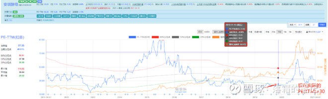 安琪酵母(600298):每股净资产 7.68元,每股净利润 1.66元,历史净利润年均增长 22.88%,预估未来三年净利润年均增长 14.04%,更多数据见:安琪酵母600298核心经营数据 安琪酵母的当前股价 61.3元,市盈率 33.45,未来三年的估值假设和预期收益率如下:15倍PE,预期收益率 -60.3%;20倍PE,预期收益率 -47.07%;25倍PE,预期收益率 -33.83%;30倍PE,预期收益率 -20.6%。 仔细研究了安琪酵母,公司真的非常优秀,现在就业绩本身来算一算估值区间。 首先从5年和10年PE(TTM)均可以看出,估值低位在30倍滚动市盈率,极端估值为20倍滚动市盈率,这是估值的锚。 目前滚动市盈率估值需要手动算:2021年一季度预增45%2020年一季度每股收益为0.37元,则2021年一季度每股收益:0.37*1.45=0.537元 2020年报每股收益为1.66元,减去2020年一季度每股收益0.37元 所以2020年后三个季度的业绩为1.29元加上2021年一季度每股收益0.537,近四个季度的每股收益是1.827元当前股价55.31元,对应PE(TTM)为=55.31/1.827=30.27倍 (理杏仁之类的显示为37.35,因为未更新一季度) 如果单纯看PE:2017/2018/2019,3年中安琪酵母的每股收益都为1.05元,对应股价区间为:20~35元即,PE估值范围是:20/1.05~35/1.05=19~33.33PE 2020年每股收益为1.66元,股价范围是28~72元由于上半年无法判断当年业绩大增60%,叠加年初疫情,低点取35元作为判断则对应PE估值范围是:35/1.66~72/1.66=21~43.37 PE 若2021年业绩增速为公司年报中预期的12%附近,则2021年每股收益为:1.66*1.12=1.86元则股价低点到高点为:1.86*21~1.86*43.47=39元~80.85元 估值中枢30PE对应的股价为:1.86*30=55.8元目前股价恰好处于估值合理的位置 如果今年可以取得20%的净利润增速,则需要提价以及海外市场增速以及成本(比如糖价/糖蜜价格稳定)对应每股收益为1.86*1.2=2.232元PE 20:44.64PE 30:67PE 40:89.28 综合判断安琪酵母:一、目前价格是合理偏低一点,若判断未来增速高于预期,则可以配置一部分(5%~15%);二、若判断未来增速符合预期,则最好等待股价下跌10%到50元(低点40元),此时可以加大配置比例,并随着时间增长增加配置;风险在于:证券市场波动、原材料价格波动、海外业务不及预期; 注意,投资公司不是简单直接看PE的,这种分析是因为安琪酵母的基本面极其优秀,而且作为龙头、具备提价权,每个季度的业绩也很稳定。 产能:而且是全球三大酵母公司之一(乐思福,英联马利和安琪),海外空间也在不断扩展(埃及、俄罗斯有产能)。 渠道:全年线下渠道营收有+13%的增速,线上渠道同比增长 23%;2020年四季度国内需求恢复带动增长,成为支撑增长的主要引擎, 此时国内营收增速约为 28%,国外约为 10%。 盈利释放的主要原因: 1、 疫情期间,高毛利率小包装产品占比提升,而且涨价; 2、 公司针对酵母及酵母提取物进行提价; 3、 产能利用率上升; 目标:2021年,公司确定了销售收入 102.56 亿,净利润同比增长 10.32%的经营目标。(以往目标完成度很好,今年很可能超预期) $安琪酵母(SH600298)$ $万科A(SZ000002)$ $水井坊(SH600779)$ 作者:落霜的笔记原文链接:https://xueqiu.com/4203354168/176140538 转载请注明:www.51xianjinliu.com » 安琪酵母估值区间分析 喜欢 (0)or分享 (0)