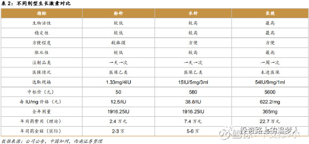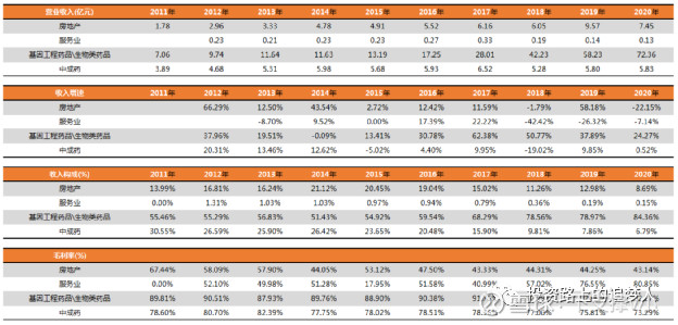 长春高新(000661):每股净资产 29.17元,每股净利润 7.53元,历史净利润年均增长 0.0%,预估未来三年净利润年均增长 28.71%,更多数据见:长春高新000661核心经营数据 长春高新的当前股价 480.17元,市盈率 63.79,未来三年的估值假设和预期收益率如下:15倍PE,预期收益率 -65.8%;20倍PE,预期收益率 -54.4%;25倍PE,预期收益率 -42.99%;30倍PE,预期收益率 -31.59%。 一、公司基本情况 $长春高新(SZ000661)$ 1.1基本信息 §成立时间:1993-06-10 §公司所在地:吉林省 §业务简介:长春高新从公司成立之初的以高新区基础设施建设为主成功转型,成为一家专注于医药科技创新领域,实施产业投资的企业集团。明确以生物制药为主、房地产为辅的产业定位,形成了基因工程药、生物疫苗、现代中药三大产业发展平台,实现了金赛药业、百克生物、华康药业、高新地产“四驾马车”鼎力发展格局 1.2证券信息 §上市时间:1996-12-18 §申万行业:医药生物—生物制品Ⅱ §市值:1620亿(2021.03.23) §上市至今年化投资收益率(理杏仁):22.45% 1.3股权架构 §实控人:长春新区国有资产监督管理委员会,持股15.84% §前十大股东比例:41.12% §机构持仓:3个社保基金、北上资金、公募资金等,机构持仓占比高,具体比例待更新 1.4正面: ①国资企业,造假的动机与可能性较小(虽然网上也有说长春高新造假的文章,但基本没有实质性的内容) ②16~20年高管团队不断地从二级市场买入公司股票,期间减持很少,目前高管团队全部持有股份,持股价值远超年薪; ③机构持仓多,尤其是前十大中有三大社保基金,历史最多的时候有5只社保基金进入前十; ④历史投资收益率高,有助于提升投资者的持仓信心; 1.5反面: ①所谓人红是非多,大市值的公司也是媒体们关注的重点,网络上有负面的报道,对投资者会造成干扰,需要理性和辩证的去看 ②股东人数20年下半年从3万增长到10万+,目前是7万多,公司热度提升,股份集中度下降,对公司内在价值没有影响; ③长生生物曾经是长春高新的控股子公司,百克生物在职高管和技术人员部分曾经都有在长生生物的履职记录; ④业务结构较为复杂,掺入了房地产业务,对分析报表会造成干扰(长春高新本质上来看就是一家投资公司,母公司本身并没有什么业务,业务主要由子公司开展); ⑤近三年分红比例较低,仅净利润的10%; 二、财务分析 2.1财务全景图 2.2成长情况 2.3盈利情况 2.4现金流情况 2.5成本&费用 2.6营运能力 2.7资产&负债 2.8正面 ①成长数据亮眼,净利润增速高于营收增速; ②净资产收益率常年处于优秀水平线20%附近及以上,近两年甚至达到了30%以上,根据我看的少数几家公司来说,ROE越高,和投资回报率的相关性越强; ③17年开始营收增速上了一个台阶,明显加快,驱动因素是什么?20年营收增速放缓,是疫情原因吗?未来是否可以恢复30%以上的增速? ④毛利率是否有提升空间?费用率是否还有下降空间?→净利润增速是否可以快于营收增速? 2.9反面 ①净现比比较差(自由现金流也很少),不确定是否完全是房地产业务造成的影响(单独看金赛和百克的现金流是没什么问题的); ②存货周转率相比其他医药企业明显偏高,从存货的构成来看,可以确认是房地产业务造成; ③货币现金30余亿的情况下,短期借款+长期借款有十几亿,但大概计算了下利率,才两点几,货币现金拿去做理财还是比较划算的; 三、主要业务情况 3.1业务拆分情况 3.2金赛药业 金赛药业主要从事基因工程生物药品的研发、生产和销售,主要产品为注射用重组人生长激素(粉针剂)、重组人生长激素注射液(水针剂)、聚乙二醇重组人生长激素注射液(长效水针剂)等人生长激素系列产品及辅助生殖、妇女健康等领域产品。 重组人生长激素销售收入55.33亿,其中水针产品约占75%以上,粉针产品占10%左右,长效产品占12%左右。与上年同期相比,水针产品收入增长20%以上,粉针产品收入增长19%左右,长效产品收入增长29%左右。重组人卵泡激素销售收入2.7亿元左右,较上年同期略有增长。 3.3百克生物 百克生物主要从事人用疫苗的研发、生产和销售,目前百克生物及其子公司迈丰生物共有三种已获批上市的疫苗产品,水痘减毒活疫苗、人用狂犬病疫苗(Vero细胞)(液体)、冻干鼻喷流感减毒活疫苗(冻干); 子公司百克生物水痘疫苗产品实现销售收入11亿元左右,鼻喷流感疫苗实现销售收入3.3亿元左右 3.4总结 ①房地产和中成药业务两块业务收入增速很慢甚至没有增速,占比不断下降,目前仅15%,未来最好的状态可能也就是维持稳定,后续就不再做关注; ②基因工程药品/生物类药品业务,指的是金赛药业和百克生物两家公司旗下生长素和疫苗业务,近5年的营收快速增长主要就是依赖于这两家公司; ③金赛药业,收入占比达67.65%,净利润占比超过80%,需要重点关注; 3.5疑问点 ①百克生物的数据有点奇怪,长春高新年报里披露的数据和百克生物递交的招股书里显示的数据有出入,不知道问题在哪; ②金赛药业19和20年的净利率有大幅度提升,毛利率并未增长,那就是费用率出现减少,持续性如何?(据了解是20年因为疫情放缓了市场推广,销售费率有所下降) ③百克生物的净利润在20年也出现大幅增长(可能和鼻喷流感疫苗上市有关); 四、金赛药业 4.1重组人生长激素 生长激素是由人体脑垂体前叶分泌的一种肽类激素,是促进人体生长发育的关键激素,能够促进身高的生长、心脏肾脏等的功能完善和皮肤、内