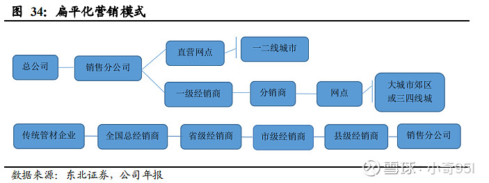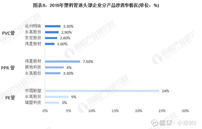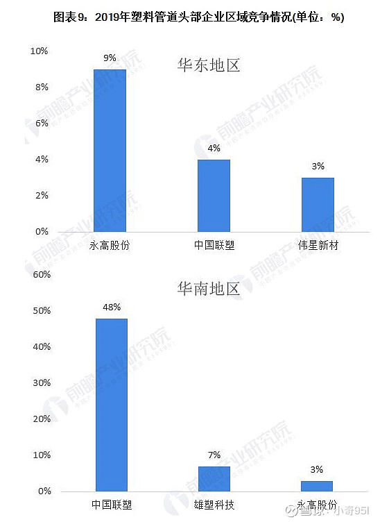 伟星新材(002372):每股净资产 2.81元,每股净利润 0.76元,历史净利润年均增长 27.17%,预估未来三年净利润年均增长 15.13%,更多数据见:伟星新材002372核心经营数据 伟星新材的当前股价 24.83元,市盈率 33.15,未来三年的估值假设和预期收益率如下:15倍PE,预期收益率 -41.92%;20倍PE,预期收益率 -22.56%;25倍PE,预期收益率 -3.2%;30倍PE,预期收益率 16.16%。 伟星新材,双轮驱动,同心成长,未来可期(二) 3、行业竞争对手分析 3.1、塑料管道行业企业区域分布情况 虽然在电子商务发展的大背景下,塑料管道行业营销市场正在从先前的以地域划分的市场向全国市场乃至全球市场转变,营销范围更加广泛。但是由于塑料管道有一定的运输半径限制(500-800公里),区域流动性受到较大影响,竞争格局有一定的区域特征。华东和华南企业最多,占比分别为37%与22%,占比共计59%,而东北和西部较少。塑料管道行业产品同质化较大,头部企业包括中国联塑、永高股份、伟星新材、雄塑科技、顾地科技等。中国联塑为行业领先企业,具有头部竞争地位,产销量分别达到245万吨和239.79万吨,远远领先行业其他企业。 3.2、塑料行业企业竞争格 按产量看,2019年全国塑料管道行业市场竞争格局中,中国联塑以15%的占比远超第二位占比4%的永高股份。按销量看,中国联塑销量同样以15.3%遥遥领先。 从产品类别看塑料管道头部企业竞争情况,在 PVC 管行业中,中国联塑渗透率较高,达到 24.4%;在 PPR 管行业中,伟星新材渗透率达到 7.5%;在 PE 管行业中沧州明珠渗透率达 3.3%。 由于运输成本问题,塑料管道头部企业仍然形成了各自的核心竞争区域,在华东地区销量领先的主要是永高股份和中国联塑,占比分别为9%和4%;在华南地区领先的是中国联塑和雄塑科技,占比为48%和7%。总体来说,除华东地区外,其他区域中国联塑的销量占据绝对优势。 按营业收入看,中国联塑与雄塑科技在华南地区占比较高,分别为72%和66%;永高股份和伟星新材收入集中在华东区域,占比66%和79%;顾地科技注重西部市场,营收占比85%。行业公司竞争格局区域特征明显,但中国联塑产能布局全国,除华东市场外,其余均处于绝对领先地位。 伟星新材的竞争优势 前面我们已经分析了塑料管道行业特征及竞争格局,现在行业已经过了高速发展期,并且产品基本上属于无差别化产品。伟星新材在行业中也不属于一个绝对的龙头,前面还有老大中国联塑以及强劲的对手永高股份等。并且各企业都有自己的主打产品和销售区域,竞争还是非常大的,下面一起梳理一下投资伟星新材的投资逻辑。 4.1、营销网点、产量、营收稳定增加 经营网点遍布全国,国际化战略推进布局全国。 为什么把营销网点放在第一位分析而不是产量,是因为公司是一个对市场非常敏感而且营销布局都非常厉害的公司。在产品的产销上,公司一直遵循“先有市场、后建工厂”、“以销定产”的思路进行产能布局。目前公司零售业务产品总体上执行“订单+适当备库”的原则,工程业务产品主要以单定产。因此,我们知道了公司的营销网点布局,就可以推测出公司将来发展方向在那里,产能分布在那里,进一步推测出新的利润增长点在那里。 目前公司在全国各主要城市设立了30多家销售分公司,全国覆盖率达到70%以上,其中一线城市,如北京、上海、深圳,都设有分公司。同时公司拥有 1,600 多名专业营销人员,营销网点 27,000 个,1000 多家一级经销商;并与众多自来水公司、燃气公司、知名地产公司、建筑装饰公司 等保持了良好的合作关系,如中国石化、中国石油、LG、海尔、华浔装饰、业之峰装饰。 公司加速推进国际化战略落地,国际市场影响力增强。由于国家“一带一路”倡议, 近两年公司通过全资子公司香港公司在泰国和德国设立了 2 家孙公司。2019 年 12 月 17 日,伟星与泰国经销商合资设立 VASEN AND TAC-M CO.,LTD. 主要生产经营塑料管道等。公司希望通过在泰国设立生产基地,拓展东南亚、南亚市场,实现 生产属地化,提升公司在国际市场的品牌知名度和竞争力。2020 年 2 月 26 日,在德国全资设立 VASEN GERMANY GMBH,公司希望通过该平台更好地开拓欧洲市场,并促进与国际先进企业的合作。2021年,在新加坡设立全资子公司。 公司产能稳定增加,多地建立生产基地。 公司自 2002 年开始,在全国各地陆续建立生产基地。2002年至2007 年是公司快速扩产阶段,6年间建成临海、上海、天 津三大产业园区。截止 2020年,公司已新建包括重庆、西安、泰国在内的三大产业园区。一共六大产业园,除泰国外均已投产,对公司的生产规模起到支撑作用。 截止 2020 年 7 月为止,公司的有总产能达到 29 吨,产能利用率达到 70%。 公司营收逐年提高,整体增速较为平稳。 从图表中不难看出,从2010年至2019 年, 公司的营业收入始终保持增长,由12.49 亿元提升至 46.64 亿元,年复合增长率达到15.77%,总增长近 212.4%。伟星新材的营业收入增长率总体较为平稳,2019年 营业收入增长率下跌较大,仅为 2.07%。这主要是由于去年零售市场走弱叠加市政主动调整,短期业务波动不会对伟星新材每年提高的营业收入趋势造成影响,看好伟星新材后续在新品类的产品布局与市政业务的发力,有望带动公司销售迎来结构性改善。 4.2、产品+服务构建护城河,同心圆战略共同发展 专注经销,深耕零售区域。 奉行扁平化营销策略,打造畅通的销售渠道。公司营销渠道主