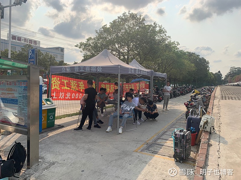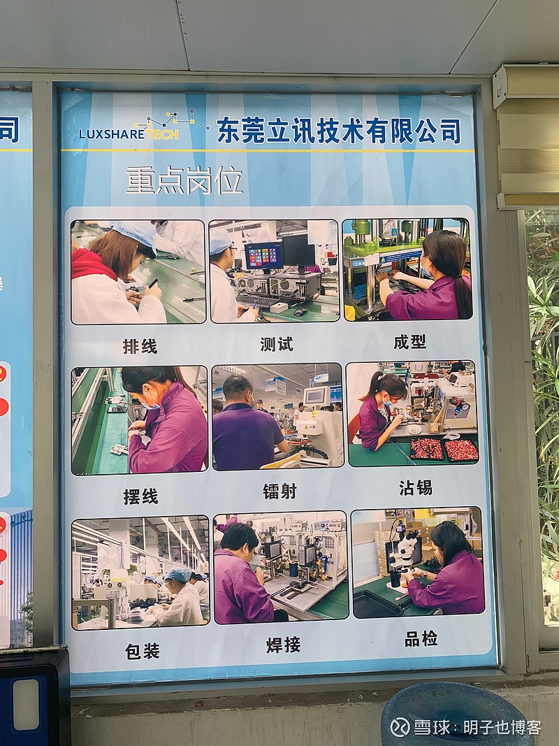 立讯精密(002475):每股净资产 4.11元,每股净利润 1.03元,历史净利润年均增长 51.68%,预估未来三年净利润年均增长 29.04%,更多数据见:立讯精密002475核心经营数据 立讯精密的当前股价 37.39元,市盈率 36.41,未来三年的估值假设和预期收益率如下:15倍PE,预期收益率 -41.65%;20倍PE,预期收益率 -22.2%;25倍PE,预期收益率 -2.75%;30倍PE,预期收益率 16.7%。 4月1日,股市开门红,最是人间四月天,深圳的天气早已经脱去了盎然的春意,迎来了有点燥热的夏暑,开车走在去东莞的高速路上,竟然需要开上一点空调,才能缓解空气中的闷热,一路听着德云社的相声,经过一个多小时的车程,来到了位于东莞市清溪镇上的 $立讯精密(SZ002475)$ 属下的立讯技术公司。 问了下门口的保安,公司招人吗?他说招聘要到旁边的三号岗,那里有专门负责招聘的,具体要到那里去问才知道。保安小哥长得还蛮帅的,精气神不错,看得出训练有素,态度还蛮和气,第一印象不错。 往东边走了大概200米,看到另外的大门,走进一看在大门的右侧有一个小房子,屋顶赫然写着:“立讯精密招聘处”。旁边也没有什么络绎不绝的人流,倒是在马路边发现了零零散散的几个人聚集在那里,很清闲的样子,当时没有细想,后来才发觉他们中有些人是招人的中介,看到招聘简章上说,推荐来上班的员工是有奖励的。 进到招聘处,看到里面坐了两个女孩子,我走进去,他们也没有主动来问一声。我先开了口,请问一下,现在公司还招人吗?招呀。招些什么样的工作呢?普工。什么是普工?就是没有技术含量的工人呀,只要年龄在18–45岁之间就可以的。那他们都做些什么事呢?就是生产连接器的流水线上的工人。那要工作多久呢?一个月正常休4天,也可能要经常加班,但最少保证休2天,像清明节就要加班,只有清明节这天才休息。我听说你们厂是给苹果做代工的,对吗?也不完全,我们这边也给其他的工厂做代工。这时,我看到旁边的墙上有介绍普工的工作情况的图片,起身拍了两张。 这时,门口走进来了几个小伙子,有带着行李,看他们交流的情况,得知这几个是准备来上班的,招聘的小菇凉说,不是通知你们2点之前到的吗?路上耽误了,那要等下一班才能去体检了,第二天才能安排宿舍,今天已经来不及啦。看到的情况基本也这样了,公司看来一切都在正常的运转当中。 走出招聘处,来到了旁边的二号岗,这里是员工的生活通道,看了整齐排列的宿舍大概有4、5栋的样子,通过窗户可以看到里面都挂满了衣服,估计员工应该也有几千人的样子。 旁边的小街上遍布了各种各样的小吃店,看了下时间才4点,员工基本也没有下班,找了一家便利店,歇息了下来,快到5点的时候,马路边支起了很多临时的小摊,小商小贩在做生意前的准备。便利店的老板一开始还以为我是带学生来找工作的,找我闲扯了起来,说厂里也正常,如果不加班,5点就开始陆陆续续下班,街上自然也热闹啦。因为是本地人,在这里做了很多年了。在闲扯的时候,进来了一个小伙子,想跟老板租个场地,摆个卖凉菜的小摊,两人因为摊子的尺寸问题,没有谈拢。便利店的老板似乎不大关心,立讯是干什么的,也不知道立讯是个几千亿市值的上市公司,我也没了解到更多的信息。 到了6点钟的时候,小吃街上已经很热闹,有吃东西的,有玩手机的,有出来抽烟的,让我印象比较深刻的一点是如今的厂仔、厂妹都还蛮阳光、满健康的,很少看到以前杀马特造型的,时代在变,新一代打工人的形象也在变化着。。。。。。 下面两张是我拍的4点、5点、6点左右的小吃街和二号岗门口的情形,可以看出下班之后人流的变化。 让我觉得有意思的是,门口来了一辆滴滴,一个小伙子招手把它拦下来了,司机打开了后备箱,小伙子搬起一件纸箱,车上既没下来人,也没上去人,车就开走啦,当时还觉得有点诧异,后来回过头一想,现在的人还真聪明,用滴滴送快递,不是更快捷吗?这比某丰的加急件还要快捷方便呀! 立讯精密实地调研的效果其实是在意料之中,一方面是立讯作为中国制造的代表,即便没有接苹果的单,也是有很多客户想要立讯来代工的;另一方面,这样的调研效果是大打折扣的,没有深入,得出来的结论也是没有太多的参考价值的。 这个也算是交作业,之前在雪球征集过实地调研立讯精密的意见,今后的我会更多关注企业基本面的研究,好企业,我会坚持持有的。 #股民的日常# #立讯精密# 作者:明子也博客原文链接:https://xueqiu.com/2046333232/176207288 转载请注明:www.51xianjinliu.com » 打卡立讯精密东莞厂区 喜欢 (0)or分享 (0)