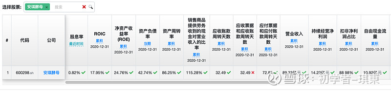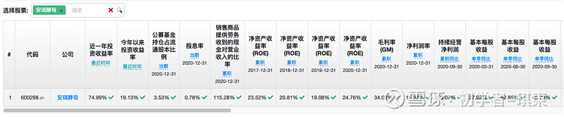 安琪酵母(600298):每股净资产 7.68元,每股净利润 1.66元,历史净利润年均增长 22.88%,预估未来三年净利润年均增长 14.04%,更多数据见:安琪酵母600298核心经营数据 安琪酵母的当前股价 61.3元,市盈率 33.45,未来三年的估值假设和预期收益率如下:15倍PE,预期收益率 -60.3%;20倍PE,预期收益率 -47.07%;25倍PE,预期收益率 -33.83%;30倍PE,预期收益率 -20.6%。 之前一直在围绕欧奈尔的投资体系做两方面的事儿: 一方面是随着2020年年报的不断披露,以欧奈尔CAN SLIM中关于ROE、EPS(扣非)以及营收的增速、绝对值筛选体系进行筛选,筛选出了和而泰和心脉医疗,心脉医疗之前有发小文简单感叹了下其赚钱能力,也发过文章对和而泰的情况进行了简要分析,且和而泰已经经过了“带柄茶杯”形态走了一波上升趋势。 另一方面是围绕着欧奈尔的“带柄茶杯”形态关注一些行业龙头,自接触欧奈尔的体系后便一直关注中环股份,之前也发文对中环股份的基本面和形态进行了简要的分析;而近2个月开始,逐步在关注另外一只股票即“安琪酵母”。 目前来看,从欧奈尔的财务指标筛选,有一些指标方面不那么符合,即2020Q3、2020Q4当季营收增速低于20%(实际为13%以上);但在“带柄茶杯”形态上,上周5(4月2日)放天量且收盘价突破之前高点,个人感觉似乎“带柄茶杯”形态也形成。 个人对安琪酵母的感觉是节后4月6日开盘,若股价企稳,则上其升趋势应该确立,具体分析如下: 一、酵母行业龙头,传统酵母产品确定性强,新增长点大概率可能是源自酵母提取物YE产品 (一)酵母行业地位 安琪酵母的主要产品为酵母,就是大家做馒头、烘焙食品用酵母,品牌为安琪(ANGEL),酵母在营收润中占绝对的大比例;整体的产品线包括烘焙面食、YE 食品调味(2018年大致12%)、动物营养、微生物营养、酿造与生物能源、植物营养等业务;从起披露的产品线分类来看,主要是酵母系列、制糖、包装、奶制品、其他。具体数据参考2018年如下: 酵母行业,安琪酵母为绝对行业龙头,全球第三(实际市场份额相近,但产能略低一些),亚洲第一,而受疫情的影响,海外产能受限,安琪酵母的市场份额进一步扩大。2019年全球及国内酵母市场份格局数据如下: 安琪酵母产能情况如下: 今天很巧的是,去超市(中高端)买东西,专门到面粉区域去与售货员大姐聊天,问酵母有什么牌子,大姐告知只有安琪酵母,查看货柜确实也就只有安琪酵母,当时比较惊讶,问了具体原因后,才了解到自从疫情爆发以后,超市都不进或国外的酵母,而排出国外的酵母后,酵母老大也就是安琪酵母了,这样可能也能应证安琪酵母2021Q1的净利润大幅增长的原因。超市酵母区域货柜情况如下: 因此,就传统的酵母产品而言,其确定性比较强,但可能受疫情海外产能恢复较快的影响,安琪酵母的实际市占率可能会波动,但从安琪酵母主要市场80%左右在国内来看,可能影响不大,受影响主要是国外,且国内毛利率比国外高;2020年安琪酵母产品(所有产品线)国内外市场营收占比情况如下: 国内外产品毛利率情况如下: 酵母的核心原材料为糖蜜,糖蜜的原材料成本在上涨,但比较好的是安琪酵母有着向下游传递成本的议价能力(源自垄断),因此安琪酵母可提价,从而保障期利润率。以下为摘自一份研报描述:“去年下半年以来全球糖蜜价格上涨,公司随后采取了一系列的提价动作,包括从去年 11 月起到今年 3 月对海外产品进行了2-3 轮的提价,提价幅度累计近 10%-20%;今年 1 月 1 日起将国内酵母抽提物产品价格上调 8%;3 月 10 日,公司上调国内酵母产品出厂价。糖蜜占公司成本占比约 40%,公司对产品的提价基本可以抵消原材料价格上涨带来的影响。” (二)新增长点-YE产品 YE产品即为酵母提取物的缩写,其应用广泛,在超市的大部分咸味的产品中会用到酵母抽提物(YE);目前已广泛应用到方便面、肉制品、鸡精、休闲膨化食品、酱油、调味汁、酱类、醋、酱卤制品、餐饮、饼干、速冻食品、素食及营养滋补品等当中。个人的理解是YE是纯天然制作,最大的替代对象即为味精,随着食品健康的重视度提升,减少味精使用,而用YE进行替代可能是安琪酵母最大的增长点。且安琪酵母YE产能全球第一,以下为2021年2月9日公司对投资者问题的回答:“公司对YE的布局目前主要在湖北宜昌、新疆伊犁、广西崇左、柳州,埃及,未来将根据市场的需求对产品结构和布局进行调整。目前公司YE产能已居世界第一,约为8万吨。” 目前国内YE渗透率还比较低,未来增长空间较大,但可能需要时间。2019年YE在日韩及欧洲鲜味剂市场中的渗透率已经高达30-40%水平,而我国YE对味精及鸡精的替代比例约为2%,尚处于初级阶段。 值得注意的是,安琪酵母产品线并不混乱,主要还是围绕核心的微生物发酵技术进行衍生,产品线的相关新和技术核心还是比较明显。 二、近3年来财务指标都较为优秀,2021Q1财报发布后更是很耀眼,ROE上升为资产周转率提升 还是按照老习惯,将欧奈尔的财务指标筛选情况截图,如下: 会发现几个特点: 1、ROE高,2017-2020年ROE平均20%以上,只有2019年低于20%,为19%。 杜邦分析法分解,ROE的增长源自于资产周转率的提升,而同时资产负债率下降,销售净利率提升,是较理想的ROE增长驱动因素,ROE及销售净利率情况如下: 杜邦分解总资产周转率、权益乘数情况如下: 2、利润率高,2020年毛利率34%,净利润率15.92%,但销售净利率上升,毛利率下降,其中值得注