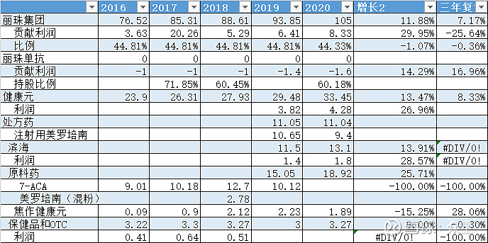 $健康元(SH600380)$ 对结论感兴趣的可以直接跳到关注点13:估值和前景分析。 关注点1:收入和利润分析 2020年收入135亿,增长13%,利润11.2亿,增长25.28%,扣非利润9.66亿,增长16%,差强人意吧。非经常性损益为1.54亿。 主要内容为器械公司的出售: 关注点2:经营数据分析 健康元部分4.28亿利润,扣除非经常性损益,实际上的业绩倒退的。呼吸药没有介绍,估计是销售量还比较少。 处方药销售持平,原料药销售增加,但是利润减少,报告中提到了7-ACA价格下降。今年没有披露两个中间体各自的销售额。 从销量看,7-ACA下降的比较多。那多出来的销售额,应该都是美罗培南的。 国外增长比较多,这应该是受到丽珠集团的影响。 这两组数据混杂了丽珠的内容,目前看意义不大。 关注点4:成长性和ROE ROE比较低,只有10%的水准。 关注点6:研发投入分析 呼吸制剂的研发还在继续,只是市场还没有成果报道。研发费用是当期的,不知道我2019年整理的累计值是哪里来的。 关注点9:创始人和经营团队 今年提到了重塑企业文化价值观。 还换了总经理: 邱庆丰是原来公司的总裁。俞雄是原来的副总裁。 俞雄是专业人士,而邱庆丰是公司的老人,原来一直管财务的。 换专业人士上马是好事情。 另外,和丽珠集团一样,公司也实施了合伙人机会,并且今年计提了1000多万的奖励金。方式和丽珠差不多,在计算收益时,不包含丽珠和单抗。 关注点13:估值和发展前景预测 买入健康元的时候,估值是20出头一点,现在还是20出头一点,完全是挣的公司成长的钱。高瓴定制给的市场机会没有抓住。因为我觉得我肯定不如高瓴看的清楚,高瓴都定增了,我没有理由放弃啊。 当时对公司的主要逻辑为: 1、本身20倍的估值就不是很高 2、呼吸药的可以至少增加50%的收入。(也有算1倍的收入,我算的是50%) 5、单抗研发很久了,应该要出成果了。 其实这几个逻辑还在,只是对他的信心貌似没那么强了,大概是因为看的公司多了,觉得逻辑比他清晰的还比较多,另外,也受到高瓴的影响,买入也收到影响,持有也收到影响。哎,要完全的独立,意味着完全的认知能力,还需要修炼。 ————————————- 查看以往文章或联系我请访问众量的雪球专栏。欢迎各位球友参与讨论、批评、指正。 作者:众量原文链接:https://xueqiu.com/9712920988/176275956 转载请注明:www.51xianjinliu.com » 600380健康元 2020年报跟踪 喜欢 (0)or分享 (0)