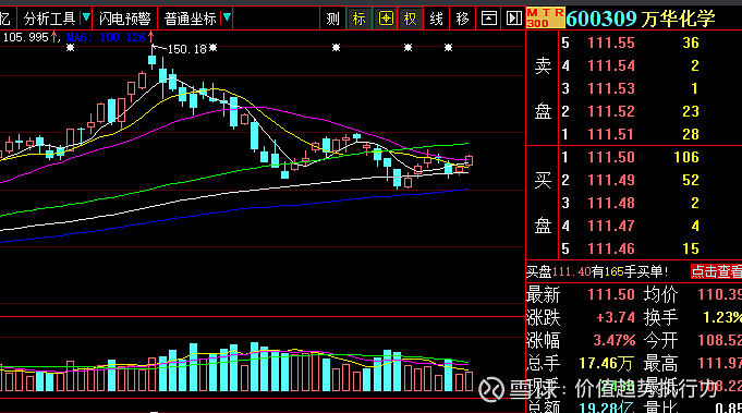 万华化学(600309):每股净资产 17.48元,每股净利润 3.2元,历史净利润年均增长 20.43%,预估未来三年净利润年均增长 33.52%,更多数据见:万华化学600309核心经营数据 万华化学的当前股价 111.12元,市盈率 22.82,未来三年的估值假设和预期收益率如下:15倍PE,预期收益率 3.79%;20倍PE,预期收益率 38.38%;25倍PE,预期收益率 72.98%;30倍PE,预期收益率 107.57%。 价值分析和趋势分析都是投资过程中的工具,是实现利润的手段。单个工具的局限性是难免的,组合工具的效果则好得多。因此我们不该把价值分析和趋势分析对立起来,而是要结合起来——依靠价值,利用趋势。 价格要以价值承载和支撑,否则就是泡沫,而泡沫总要被刺穿。 不是有价值的公司都可以给我们带来利润,至少在一段时间内是这样。很多人的亏损是发生在好公司身上,这是对趋势认知不足。 价值与趋势是相辅相承的。建立在价值基础上的趋势才是有效的,而合理地利用趋势对实现价值非常重要——买入一家好公司后它天天跌,你能撑过半年撑不过一年,割肉了,三年五年后的辉煌与你有什么关系?如果买入不久就盈利了,对你坚定持股信心有时候是决定性的。 趋势分析有的效性与时间有关,太长远的事情谁也说不准,市场也无从反应。比如2020年初突发的疫情,无论是价值分析还是趋势分析都是不可测的。趋势分析短期的有效性是值得信赖的。例如:3月25日我写发布了《这二家公司基本调整到位》,说的是东方雨虹和宝丰能源的下跌趋势基本结束,结果大家看到了,东方雨虹从46涨到最高56,宝丰能源还没涨但也不亏钱。趋势分析可以帮助我们避免交易风险,实现利润更大化。哦对了,短期不是指一天两天,也不是三五天,可以延伸到三五个月。另外,实际上包括疫情这一波下跌,每一次大跌在趋势上都提前有所反映,在趋势分析上是很明显的,至于跑没跑掉是执行力的问题。 以万华化学为例进一步阐述价值与趋势的关系。万华在公司价值方面是没问题的,对这样的公司我们把重点放在它的趋势上即可。 再好的公司也无法绕开涨跌趋势的缩命,这一波价值抱团股的下跌,万华也跌去了近40%(如果说趋势无用,在150买入和在111买入的人各是什么感觉?)。 与大盘一样,万华的中期趋势也是不明朗的(绝大部分个股都是,从中期来讲,上证指数跌破3200的可能性并不是那么小,希望我的这个观点不要吓着你),但万华的短期趋势是明朗的——短期调整趋势结束,进入反弹趋势,即现在开始的短期内万华化学的上涨概率比下跌概率明显大!不提趋势这个词,万华化学从2月18日的150元一路跌下来,现在最新111.5元,与下跌以来的最低位相差不大,从这一点上说风险就小得多了吧?很多人都明白追高风险大,但看见上涨就是管不住手,如果你认识了趋势,懂得了趋势分析,那么心和手都自然地管住了。 趋势可以有效地告诉我们什么时候是高位,什么时候是低位、什么时候可能要见顶,什么时候可能见底,什么时候是上涨途中,什么时候是下跌中继。如果这些你都知道了,你还会追高吗?你会在万华化学从150元跌到130元的时候买进吗? 不少读者朋友认可趋势但表示不知道学习方法。我将在今后加强这方面知识和方法的系统讲解,多写这方面的文章,同时利用W信的沟通便捷功能,结合实务进行碎碎念式的细化以提高效果。欢迎关注并加“cait456”。已关注的朋友也请加一下。 作者:价值趋势执行力原文链接:https://xueqiu.com/9291381971/176301307 转载请注明:www.51xianjinliu.com » 以万华化学讲价值与趋势的关系 喜欢 (0)or分享 (0)