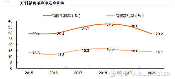 万科A(000002):每股净资产 19.43元,每股净利润 3.62元,历史净利润年均增长 25.66%,预估未来三年净利润年均增长 9.28%,更多数据见:万科A000002核心经营数据 万科A的当前股价 28.09元,市盈率 7.85,未来三年的估值假设和预期收益率如下:15倍PE,预期收益率 141.82%;20倍PE,预期收益率 222.43%;25倍PE,预期收益率 303.03%;30倍PE,预期收益率 383.64%。 公司公布 2020 年年报,实现营业收入 4191.1 亿元、归属于上市公司股东的净利润 415.2 亿元,同比分别增长 13.9%和 6.8%;实现销售金额 7041.5 亿元,同比增长 11.6%。公司拟每 10 股份12.5 元现金股息,合计 145.22 亿元,分红比例重回35%。 1. 公司营收、净利润和销售额实现稳健增长,毛利率同比降低约7个百分点。2015年以来,公司年报显示,公司营收、归母净利润和销售额同比增长全部为正。营收除2017年外全部实现两位数的快速增长,归母净利润除2020年外全部实现两位数的快速增长。单从营收、净利润等数据来看,2020年公司的营收和归母净利润表现与往年对比都不强势,特别是归属净利润,自2015年首次进入各位数增长,低于一些投资人的预期。 通过研读万科的年报,可以大概判断,公司拿地至开发销售大概1年,然后到交付约2年,即销售额的结转周期大概2年左右,拿地至交付的整个周期大概3年。也就是说公司2020年的营业收入与2018年销售额相关性较强,2020年的利润表中的成本费用(主要为拿地支出)与2017年楼面地价相关性较强。从这个思路来看,2018年的销售额同比增长14.5%,与2020年营收同比增速及趋势很接近。那么为什么归属净利润的同比增长率低于营收增长率那么多呢?主要原因为公司的毛利率2020年同比下降7个百分点,那么毛利率下降的主要原因是什么呢?主要为2017年公司楼面地价同比增长36.9%达7908元/平米,创2015年至今的最高楼面价,并且2018年的销售均价同比涨幅仅1.98%。故反应在2020年业绩数据中毛利率大幅下降也就不足为奇了。 那么未来3年如何表现,通过以上思路我们可以做个简单预测。2019年公司销售额为6308.4亿元,同比增长3.9%,推断2021年的营收增速放缓至各位数。2018年楼面地价为5427元/平,同比大幅下降31.4%,2019年销售均价同比增长2.05%,故预计2021年毛利率会实现反弹。2021年的归母净利率同比增速会高于其营收增速。同理可推断2022年的毛利率会低于2021年。另外根据万科2021年前3个月的销售数据及目前的宏观行情,今年房价预计仍然小幅上涨,2020年楼面价同比增速放缓,故2023年公司的毛利率会高于2022年,整体来说公司未来3年毛利率能保持在30%以上的水平。营收和净利润增速依然能保持正增长,只是增速会相对缓和。相关图表如下: 1. 公司的财务状况稳健,今年一季度有望“三线归档”。2020年,万科的净负债率、剔除预收账款的资产负债率和现金短债比分别为 18.1%、 70.4%和 1.8 倍,仅剔除预收账款的资产负债率略超红线。在业绩会上,万科表示,有信心在一季度使其三道红线指标回到绿档。具体从其财务结构来看,万科一直保持相对稳健的有息负债水平及长短期债务结构,2020 年,有息负债仅同比增长 0.26%,短期有息负债同比下降 11.7%至 829.1 亿,短期债务占比降至 32.1%。 资金情况。公司坚持“以现金流为基础的持续真实价值创造”理念,不断提高资金管理的计划性和精细度,全年实现经营性现金净流入 531.9 亿元,截至报告期末,本集团持有货币资金1,952.3 亿元,同比增长 17.5%,实现对短期债务的2.4 倍覆盖。公司净资产同比增长约29.3%。货币资金和净资产的大幅增长促使公司2020年净负债率降至 18.1%低位,并且连续 20 年低于 40%。 对此,万科表示,并不最求过低的净负债率,但会保持合理的净负债率,40%这条线是坚守的。 2021 年 3月,成都发文红档房企不得参与土地竞拍,再结合土地供应“两集中”政策的出台,都利好于资金充裕和财务结构稳健的房企。随着万科三道红线指标转绿, 其在拿地端的优势将进一步加强。 2. 万科物业业务实现高速增长。万科物业改名万物云, 定位为空间科技服务商,2020年实现全口径营收 182亿元,同比增长 27.36%,(5年 复合年均增长率达 34%), 在管面积 5.66 亿方,其中 47%来自于非万科系,公司营收及在管规模均位居行业首位,竞争优势明显。 3. 公司多元业务:渐入佳境,成为细分领域龙头。1)印力集团:2020 年在疫情的冲l 击下,公司商业运营实现营收 63 亿元,新开业商业面积达 129 万方,在管面积 达 1425 万方(其中包括已开业面积 990 万方;在建及规模面积 435 万方),营 收和在管面积规模已进入 top3;2)万纬物流:2016-2020物流可租售面积由 147 万方增至 1148 万方(5 年复合增长率 50.8%),2020年万纬物流营收达 18.7 亿元(+37%),公司已成为国内物流地产龙头,未来仍有较大增长空间;3)万科泊寓:2020 年万科泊寓开业规模位居全国第一,累计开业 14.2 万间,已开项目整体出租率>95%,营业收入达 25 亿元(+72.3%),仍在积极探索盈利模式。 5.股价预测。截至4月2日收盘,公司股价为30元。动态市盈率8.4,市净率为1.55,行业平均动态市盈率为13.99,与行业平均估值对比,公司估值较低,结合公司基本面较为稳健等,公司股价有望达40元。 6.风险提示:(1)受疫情影响,若行业需求释放持续低于预期,房企普遍以价换量,可能带来公司项目减值风险;(2)2016 年起受楼市火爆影响、地价持续上升,而后续各城市限价政策陆续出台,未来公司毛利率面临下滑风险;(3)公司多元化业务拓展存