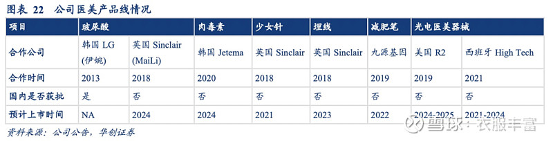 恒瑞医药(600276):每股净资产 6.04元,每股净利润 1.19元,历史净利润年均增长 27.67%,预估未来三年净利润年均增长 20.96%,更多数据见:恒瑞医药600276核心经营数据 恒瑞医药的当前股价 83.0元,市盈率 67.98,未来三年的估值假设和预期收益率如下:15倍PE,预期收益率 -68.02%;20倍PE,预期收益率 -57.35%;25倍PE,预期收益率 -46.69%;30倍PE,预期收益率 -36.03%。 华东医药(000963):每股净资产 8.72元,每股净利润 1.61元,历史净利润年均增长 28.27%,预估未来三年净利润年均增长 14.9%,更多数据见:华东医药000963核心经营数据 华东医药的当前股价 44.9元,市盈率 27.86,未来三年的估值假设和预期收益率如下:15倍PE,预期收益率 -18.41%;20倍PE,预期收益率 8.79%;25倍PE,预期收益率 35.98%;30倍PE,预期收益率 63.18%。 2021开年,医药行业跌跌不休,龙头股遭遇杀估值,但却有一匹黑马杀出,这就是华东医药。 $华东医药(SZ000963)$ 自2020年拳头产品阿卡波糖集采落标后,华东医药股价一度受重挫。如今,却摇身一变成为资本市场炙手可热的对象,连续获得机构大额买入。2月8日至3月22日,华东医药股价涨幅达到78%,总市值超700亿元。 华东医药逆势上涨的秘密,源于其搭上了医美概念的顺风车。在医保控费的大环境下,传统药企利润空间被压缩,华东医药积极向医美及创新药业务转型,并通过License-in形式,获得了多款医美、创新药产品的中国大陆商业化权利。 但本周形势却发生了逆转。3月23日至26日,包括华东医药在内的多支医美概念股经历回调,其股价一度跌停,四天跌幅约为15%。 图片来源:东方财富网 华东医药股价坐上过山车,可谓“成也医美,败也医美”。那么,其医美概念的含金量究竟几何?能顺利完成赛道转换吗? / 01 / 试水医美 蹭热点还是有干货? 华东医药很早就试图切入医美市场。 2013年,华东医药一举拿下韩国LG公司的玻尿酸——伊婉的国内独家代理权,次年该产品在国内上市,属于中端产品。 伊婉为华东医药带来了不错的回报。据其披露,2018至2019连续两年,伊婉在中国市场销售规模和销售金额排名领先。华创证券研报预计,伊婉2021年市占率约为20%,为华东医药带来营收约10亿元。 在医美上尝到“甜头”的华东医药,近些年开启了“豪买”模式,开始收购海外医美公司,并拿下了一系列医疗器械、医美产品的代理权。 2018年,华东医药作价14.9亿元收购了英国老牌医美公司Sinclair。这次交易让华东医药获得了Sinclair的全部产品管线——少女针、高端玻尿酸、埋线产品等。 2019年,华东医药与美国R2公司达成合作协议,持有其26.60%股份,并获得其F1、F2 医疗器械及其未来改进型在中国大陆、日本、韩国等34个亚太国家的分销权。 2021年,华东医药再次通过Sinclair,以最高8500万欧元(约合6.6亿元)收购西班牙医美器械公司High Tech 100%股权,获得其冷冻溶脂、激光脱毛等产品。公布该消息的当天,华东医药涨停。 此外,华东医药还分别与九源基因合作,获得其利拉鲁肽减肥适应症的开发技术;与韩国Jetema公司合作,获得其肉毒素产品在中国大陆的独家代理权。 目前来看,华东医药医美的产品线已经完备,覆盖了市场上大部分轻医美产品,包括入门级医美产品玻尿酸、肉毒素;抗衰老产品少女针、埋线;利拉鲁肽减肥瘦身产品,以及光电医美仪器。这甚至比爱美客、华熙生物等头部医美公司更为齐全。 图片来源:华创证券研报 但值得注意的是,华东医药通过收购及License-in得来的这些产品,除了伊婉,均未在中国大陆获批上市。其中一部分处于在研阶段,另一部分即便在海外获批上市多年,比如备受瞩目的少女针,也未给华东医药带来太多业绩收益。 2020年中报显示,华东医药国际医美业务营收仅有1.3亿元,同比下降50.66%,占其总营收的比重从2019年的1.43%,下降到0.76%。 以少女针为例,华东医药在一次电话会中称其“具备颠覆医美填充行业的潜力”,具有“填充+修复”双重功效,相当于童颜针与玻尿酸的结合,并且持续时间更长。 但是,这样一款重磅产品,自2009年在欧洲获批上市已有11年,虽陆续在全球60多个国家或地区获得准入,业绩却并不亮眼。广发证券研报显示,其2018年全球销售额1500万美元(约合9798万元),市场难以做大。 对此,有媒体分析称,“少女针”主要成分之一PCL(聚己内酯)的降解时间长,并且特有的包裹现象效果并不好。且对医生操作要求高。据华创证券研报预测,若国内顺利上市,2021年华东医药少女针将为其带来8000万元收入,2022年有望达到2亿元。 实际上,医美产品在中国的市场准入和注册难度很高,上市之路往往漫长艰难。华东医药医美业务负责人曾在接受媒体采访时表示:“在中国想把医美产品落地,需要经过分类鉴定、形式检查、临床研究、材料申报等程序,平均下来一个产品的落地周期需要四年半到五年半。” 图片来源:华创证券研报 虽然部分产品仅处于讲故事阶段,但资本市场对“变美”的华东医药可谓信心满满。一方面,在医保控费的当下,药企转型像医美这样的医保免疫、消费主导型赛道备受青睐,比如云南白药买牙膏、片仔癀买化妆品,都获得了不错的收益。 另一方面,华东医药作为老牌药企,积累了成熟的临床资源和销售网络,前者能影响产品是否能迅速在国内获批上市,后者能决定产品能不能迅速卖出去,比单纯的医美公司更具有优势。 对比医美头部公司爱美客,其与华东医药布局产品线相似,市盈率已达191倍,华东