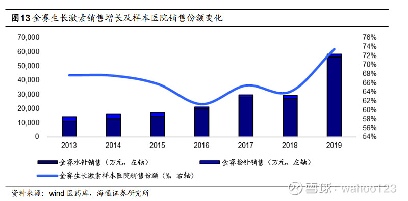 长春高新(000661):每股净资产 29.17元,每股净利润 7.53元,历史净利润年均增长 0.0%,预估未来三年净利润年均增长 28.71%,更多数据见:长春高新000661核心经营数据 长春高新的当前股价 480.17元,市盈率 63.79,未来三年的估值假设和预期收益率如下:15倍PE,预期收益率 -65.8%;20倍PE,预期收益率 -54.4%;25倍PE,预期收益率 -42.99%;30倍PE,预期收益率 -31.59%。 一、行业分析 (一)行业概况及发展趋势 1、行业概况-公司在生长激素业务占据龙头地位 公司主营业务为生物制药及中成药的研发、生产和销售,辅以房地产开发、物业管理及房产租赁等业务。公司下属金赛药业、百克生物、华康药业和高新房地产,其中核心子公司为金赛药业和百克生物,分别从事生长激素和疫苗研发业务。 金赛药业收入占比较大且持续提升,从2012年的41%增加到2019年的65.39%;百克生物收入占比第二为17.39%,华康药业和高新地产分别占比为7.86%和12.77%。金赛药业净利润占比从2012年的69.07%增加到2019年的89.93%,预计2019年10月公司收购金赛药业99.5%股权后,金赛并表后净利润占比将会更加提高估计将到达90%左右。因此以下行业的分析内容主要围绕金赛药业的生长激素和促卵泡激素等重组药物进行研究。 生长激素是目前用来治疗矮小症的主要药物,缺乏生长激素也被认为是患矮小症的最主要因素。矮小症是指儿童的身高低于同性别、同年龄、同种族儿童平均身高的2个标准差(-2SD,标 准线称 SD),每年生长速度低于5厘米者。生长激素缺乏症(GHD)是下丘脑-垂体前叶功能障碍造成GH 分泌不足引起的生长障碍性疾病。 生长激素共有三种剂型,分别为粉针、水针和长效剂型。相比粉针剂型,水针剂型和长效剂型在生物活性、稳定性、安全性和方便程度等方面的优势十分显著,同时长效剂型实现了一周注射一次,在患者的依从性上相比水针和粉针有明显优势,但是长效剂型价格相对较高,患者年用药金额高达 15 万元,相比之下,水针剂型的年用药金额为5.5万元,而粉针剂型年用药金额为 2.0万多元,较高的价格也为长效剂型的推广带来一定难度。 2、国内生长激素市场远未饱和,成长空间巨大 除中国市场以外,生长激素在全球的销售额大概维持在 30 亿美元,市场规模基本保持稳定, 生产企业主要有辉瑞、诺和诺德、礼来、罗氏及默克五家国际大型制药企业,其中诺和诺德市场规模占比相对较高,2019 年达到 43%。我国生长激素市场起步较晚,仍处于快速发展阶段,生长激素样本医院销售额从 2012 年的 1.89亿元增长到2019年的 7.95 亿元,复合增速达到 22.78%,预计2019年生长激素市场总规模达到近 60 亿元。 2019 年国内儿童 GHD 矮小症用药市场远未饱和。中国矮小症发病率约为3%,现有 4~15 岁的需要治疗的患儿约有 700万。假设国内每年200万儿童为病理性缺乏,20%治疗率,每个儿童每年平均 3-4万治疗费用(根据金赛水针剂型测算),则潜在市场空间达 120-160 亿元。根据金赛官网资料,2018年金赛营收32亿元,按 90%计算生长激素的收入为 28 亿元,而金赛市占率约为 65%,可推算出国内生长激素市场为43亿元左右。2019年全年生长激素市场规模约 60亿元,因此仅儿童GHD 矮小症单个适应症尚有 2-3 倍成长空间。然而截至2019年,矮小儿童的实际治疗率只有2%。矮小症新患有潜在的很大存量市场待挖掘,生长激素用药市场存在长期高速增长的逻辑。 未来成人市场有望扩容。生长激素在美国上市较早,使用范围相比我国也更加广泛,除了用于治疗儿童矮小等症状外, 因为有研究表明生长激素具有一定的促肌肉生长和抗衰老的作用,因此国外使用生长激素的成年人比例较高,超适应症使用占比较高,美国生长激素的超适应症使用比例在 30%左右,每年使用生长激素抗衰老、增强肌肉的人数多达 30 万。从使用人群年龄分布来看,接近 44%的人年龄段在 40-59 岁,接近 30%的人年龄段在 20-40 岁,0-20 岁年龄段人群占比仅为26%,足以见得生长激素超适应症使用在美国十分普遍。 生长激素在我国属于管控类药物,从流通到使用管控十分严格,超适应症使用比例很低。金赛药业水针剂型生长激素获批适应症主要有儿童生长激素缺乏症(GHD)、下丘脑-垂体疾病所致 的生长激素缺乏症、重度烧伤、SHOX 基因缺失但不伴 GHD 和 Noonan 综合征,长效剂型生长激素有儿童生长激素缺乏症(GHD)获批,同时,水针剂型有 Prader-Willi 综合症、特发性矮身材(ISS)等适应症处于临床Ⅲ期,长效剂型有 Turner 综合症等适应症处于临床Ⅱ期。美国 FDA 批准的生长激素适应症多达 11 项,相比之下,生长激素在我国获批的适应症还相对较少,未来随着更多适应症的逐步获批,生长激素市场潜力有望进一步被挖掘。 (二)行业商业模式优劣 1、医药行业周期性较弱 生长激素属于生物医药行业,本身处于快速成长期未来行业增速有望达到年化30-40%,同时其业务特点是大额、较长周期,一般平均治疗周期为13个月,医生建议治疗周期为24个月,平均治疗费用在4-6万元/年,由于事关孩子健康,治疗中途放弃的可能性比较小,用药有刚性因此波动性比较小。今年由于疫情原因,很多二三线城市病人无法去大医院就医,导致治疗人数有所下降,相信疫情过后公司加大营销和医生培训力度,患者人数会恢复增长。 2、具有高度技术壁垒和高毛利率 生长激素在我国属于兴奋剂类管控类药品,生产消费均处于严格的监管过程中,药物研发需要一定周期还必