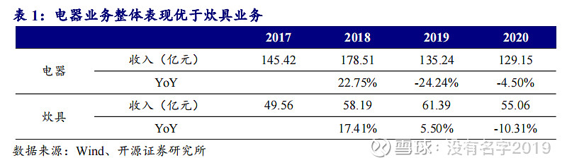 苏泊尔(002032):每股净资产 9.23元,每股净利润 2.25元,历史净利润年均增长 26.43%,预估未来三年净利润年均增长 13.79%,更多数据见:苏泊尔002032核心经营数据 苏泊尔的当前股价 72.24元,市盈率 29.01,未来三年的估值假设和预期收益率如下:15倍PE,预期收益率 -28.2%;20倍PE,预期收益率 -4.26%;25倍PE,预期收益率 19.67%;30倍PE,预期收益率 43.6%。 点击关注, 可以订阅哦! 投资要点 文:开源吕明可选消费团队(家电/轻工/纺服) Q4营收回暖,国内小家电龙头回归可期,维持“买入”评级 2020/2020Q4公司实现营收185.97亿元(-6.33%)/52.92亿元(+6.76%),剔除会计准则变化的影响,2020/2020Q4公司营收195.85亿元(-1.35%)/55.77亿元(+12.50%)。Q4营收显著回暖。考虑疫情造成2020年低基数影响,下调2021-2022年盈利预测。预计2021-2023年归母净利润21.09/ 24.30/ 27.90亿元(此前预测2021-2022年归母净利润为22.36/25.22亿元),以最新股本计算,对应EPS为2.57/2.96/3.40元,PE为28.9/25.1/21.8倍,由于公司系国内小家电龙头,且线下渠道优势显著,伴随管理层变革,品牌活力有望重新激活,维持“买入”评级。 电器表现优于炊具,外销协同效应提升 分业务来看,电器业务表现略优于炊具业务。电器业务推陈出新,根据魔镜数据,2020年公司在淘系渠道上,破壁机销售额6.95亿元(+206.3%),空气炸锅销售额1.97亿元。炊具业务份额领先。据GFK数据,2020年苏泊尔炊具炒锅、高压锅等七大品类线下总体市场份额达49.2%(+1.4pct),WMF在高端炊具市场份额同比提升5pct。分渠道看,外销协同效应持续提升。2020年公司外销收入57.27亿元(+12.08%),内销线上占比持续提升,线下渠道继续下沉。 盈利能力稳步提升,现金流持续改善 受疫情、会计准则变化影响,2020年毛利率26.42%(-4.73pct),销售/管理/财务/研发费用率分别为11.42%/4.08%/-0.05%/2.38%,同比变动-4.73/0.06/0.17/0.1pct。净利率同比提升0.26pct至9.93%。经营活动产生的现金流净额同比提升19.85%。 高管换帅有望激活内销活力,2021年外销关联交易预计再升 2020年以来公司通过联名、启用新青春代言人等深耕品牌年轻化。新任总经理张国华丰富的快消行业经验有望帮助公司进一步提升品牌活力。根据预计关联交易公告,2020年与SEB集团关联交易实际发生额为55.42亿元,预计2021年与SEB关联交易66.65亿元,同比提升20%以上,双方协同效应有望进一步提升。 风险提示:SEB订单波动、原材料价格波动、汇率波动等。 1 空气炸锅增速亮眼、外销回暖, Q4收入环比提升 受新冠疫情及新的会计准则下销售费用抵减营收的影响,2020年公司营业收入同比有所下滑。2020年公司实现营收185.97亿元(-6.33%),剔除会计准则变化的影响,2020年公司营收195.85亿元(-1.35%)。 2020Q4收入端显著回暖。2020Q4营业收入52.92亿元(+6.76%),剔除会计准则变化影响,2020Q4营收55.77亿元(+12.50%),Q4收入端显著回暖。 1.1 电器业务表现优于炊具,空气炸锅品类 增速亮眼 分业务来看,电器业务表现略优于炊具业务。2020年公司的电器、炊具业务收入占比分别为69.44%、29.61%,合计达99.05%。其中电器业务收入129.15亿元(-4.5%),炊具业务收入55.06亿元(-10.31%)。 (1)炊具业务市场份额保持领先地位。根据GFK监控的国内30个重点城市炊具市场份额数据,2020年苏泊尔炊具炒锅、高压锅、煎锅、汤锅、蒸锅、套装锅、陶瓷煲七大品类线下总体市场份额达49.2%,同比2019年提升1.4pct。根据GFK数据,2020年WMF在高端炊具市场份额同比提升5pct。 (2)电器业务推陈出新,不断丰富、扩大现有品类。报告期内公司新上了风冷小快电饭煲、IH猛火快速电压力煲、可拆静音破壁机等产品,在品类扩张上,开发了空气炸锅、三明治机、电热水杯等新品,根据魔镜数据,2020年公司在天猫、淘宝渠道上,破壁机销售额6.95亿元(+206.3%),空气炸锅销售额1.97亿元。 1.2 受益于SEB订单转移,2020年外销表现 优于内销 (1)外销受益于SEB订单持续转移。由于全球疫情影响,大部分国家分阶段采取防疫措施,导致国外产能收缩,促使炊具、电器供应端向国内转移。2020年全年,公司外销收入57.27亿元(+12.08%)。 (2)内销线上占比持续提升,线下渠道继续下沉。根据年报披露,2020年公司电商渠道占比持续提升,积极把握直播风口、精细化店铺运营管理。根据公司官方微信号数据,2020年双十一期间,全网销售额14.5亿元,同时客单价提升28%。线下积极推动三四级市场发展,并推动和电商平台在下沉市场O2O渠道的全面合作,发挥公司中高端产品差异化与代理商稳定优势,打造公司在三四级市场新的增长点。 2 毛利率:受疫情、会计准则变化影响下滑, Q4环比改善 受疫情、会计准则变化影响,2020年公司毛利率出现一定下滑,Q4毛利率显著回暖。2020年公司销售毛利率26.42%,同比下降4.73pct,主要系:(1)受新收入准则影响,将符合销售抵减的应付客户费用抵减营业收入;(2)新冠疫情影响公司线下销售,同时加大线上营销力度。2020Q4公司销售毛利率29.04%,环比提升3.24pct。 3 费用率管控良好,净利率有所提升 公司在3月31日晚间发布股权激励草案公告。此次股权激励拟向107人(包含董事、高管及核心骨干人员)共计授予1800万份股票期权(占公告日股本的2.35%),授予价格为21.99元/股。 此次股权激励的业绩考核目标为以2020年为基数,2021-2023那边收入增长不低于15%、33%、56%,净利润增长不低于5%,16%,33%。以最低要求换算,2021-2023年收入同比增速分别为15%,15.7%,17.3%,利润增速为5%,10.5%,14.7%。折合为复合增速,未来三年收