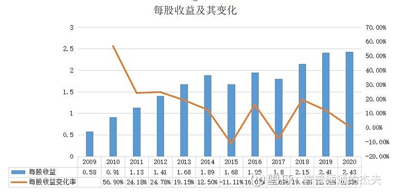 招商银行(600036):每股净资产 26.61元,每股净利润 3.79元,历史净利润年均增长 24.17%,预估未来三年净利润年均增长 13.17%,更多数据见:招商银行600036核心经营数据 招商银行的当前股价 53.3元,市盈率 13.81,未来三年的估值假设和预期收益率如下:15倍PE,预期收益率 47.66%;20倍PE,预期收益率 96.88%;25倍PE,预期收益率 146.1%;30倍PE,预期收益率 195.32%。 宁波银行(002142):每股净资产 18.05元,每股净利润 2.43元,历史净利润年均增长 25.96%,预估未来三年净利润年均增长 18.24%,更多数据见:宁波银行002142核心经营数据 宁波银行的当前股价 40.71元,市盈率 16.25,未来三年的估值假设和预期收益率如下:15倍PE,预期收益率 46.79%;20倍PE,预期收益率 95.72%;25倍PE,预期收益率 144.65%;30倍PE,预期收益率 193.58%。 1. 公司概要 宁波银行成立于 1997 年 4 月 10 日,2007 年 7 月 19 日成为国内首家在深圳证券交易所挂牌上市的城市商业银行。 宁波银行除了在宁波地区经营之外,还在上海、杭州、南京、深圳、苏州、温州、北京等地设立了分行。业务主要集中在长三角、珠三角和环渤海湾的经济发达地图。 2. 商业模式 2.1 多个利润中心 公司始终致力于打造多元化的利润中心,目前在银行板块已形成了公司银行、零售公司、财富管理、私人银行、个人信贷、远程银行、信用卡、投资银行、资产托管、票据业务、金融市场、资产管理 12 个利润中心,子公司方面,形成了永赢基金、永赢租赁、宁银理财 3 个利润中心。公司的盈利来源更加多元,大零售及轻资本业务的盈利占比不断提升,发展的可持续性不断增强。[1] 2.2 经营规模增长很快 如图 1所示,公司的收入规模在 2010 到 2020 的平均增长为 23.4%,这说明公司的“大银行做不好,小公司做不了”的差异化经营策略是有效的。 图 1: 收入组成 2.3 利息收入中债券和理财占比较高 如图 2可知,在利息收入中,除了发放贷款和垫款的利息收入外,债券投资和理财产品及资管计划的收入也很高。在 2020 年的 567.89 亿利息收入中,债券投资利息收入有 100.4 亿,占比 18%,理财产品及资管计划的利息收入为 66.44 亿,占比 12%。 图 2: 利息收入组成 2.3 非利息收入中代理业务收入较高 如图 3,2020 年宁波银行的利息净收入占到整个收入的 68%,手续费和佣金收入和 2019 年相比,占比降了不少,应该是计算方法的问题,原来算作手续费的收入 2020 年当做利息收入了。 图 3: 收入组成 在手续费和佣金收入中,代理类业务占比最大,占整个手续费和佣金收入的 80%。近年来,公司将财富管理业务作为转型发展的重要战略方向,推动代客理财、代理基金、代理保险等手续费收入实现较快增长。 图 4: 手续费和佣金净收入 如图 4所示,由于统计口径的问题,2018 年以前的数据采用不同的口径统计,我们看到 2017,2018 年的手续费和佣金收入增长并不明显。2020 年的股市相对较好,我们可以推测因为这个代理基金和理财的收入较高。 2.4 较好的净利差和净息差指标 图 5: 净利差变化 图 6: 净息差变化 因为公司有大量优秀的小微企业客户,所以净利差和净息差指标较好。 3. 经营效率 宁波银行作为最优秀的城市商业银行,一直有较高的净资产收益率。从图 7可以看到,从 2009 到 2020 年来,宁波银行的平均年净资产收益率在 18% 以上。 图 7: 净资产收益率 再看图 8是最近 12 年每股收益及其变化,在 2014 年以前,每股收益每年增速很快,从 2015 年开始,每股收益增长变化波动很大。2020 年由于受到疫情的影响,每股收益几乎没有增长。最近 5 年的每股收益的平均增长率为 8.15%。 图 8: 每股收益及其变化 4. 护城河 我把宁波银行的护城河总结为两大护城河:优质的地理区域和高质量的风险管理。 4 风险 4.1 优质的经营区域 优质经营区域是公司实现可持续发展的重要基础和保障,在机构布局上,公司确立了以长三角为主体,以珠三角、环渤海湾为两翼的“一体两翼”发展策略,上述这些区域都是中国经济最发达的地区,潜在基础客群和业务拓展空间都十分广阔。经过多年来的耕耘和积累,公司各项业务的商业模式已经能够较好地契合各区域市场的特点,同时公司保持战略定力,坚持聚焦于大零售业务和轻资本业务的拓展,业务规模和盈利贡献在不断提升。[1] 4.2 风险管理 公司坚持“控制风险就是减少成本”的风险理念,将守住风险底线作为最根本的经营目标,持续完善全面、全员、全流程的风险管理体系。在坚持垂直集中的授信审批的基础上,“4+N”风险预警、贷后回访、行业研究、产业链研究等一系列风险管理措施的有效性不断显现,使得公司能较好地应对经济周期与产业结构调整。公司 的不良率在行业中一直处于较低水平,确保公司能够专注于业务拓展和金融服务,为可持续发展打下坚实基础。 5. 风险 因为银行是高杠杆行业,所以风险管理是其中特别重要的一部分。 5.1 资本充足率 图 9: 资本充足率 首先我们看看资本充足率。《商业银行资本管理办法》要求宁波银行的核心一级资本充足率大于 7.5%,一级资本充足率大于 8.5%,资本充足率大于 10.5%。如图 9为采用权重法计算的资本充足率,由于规模增长较快,公司一直有资本充足率不足的感觉,所以,当前采取了包括发行优先股,定向增发和配股的方式来补充资本。 5.2 不良贷款率 图 10: 不良贷款率 不良贷款率指标是非常优秀的,从 2010 年开始,从来也没有超过 1%。 5.3 拨备覆