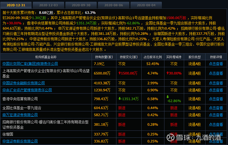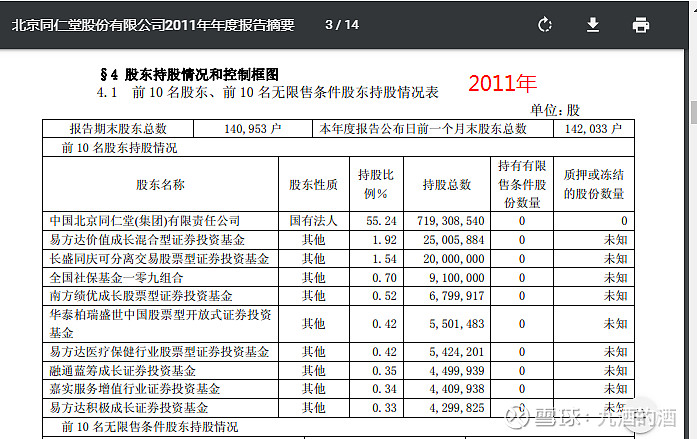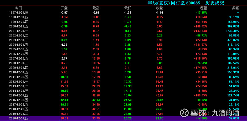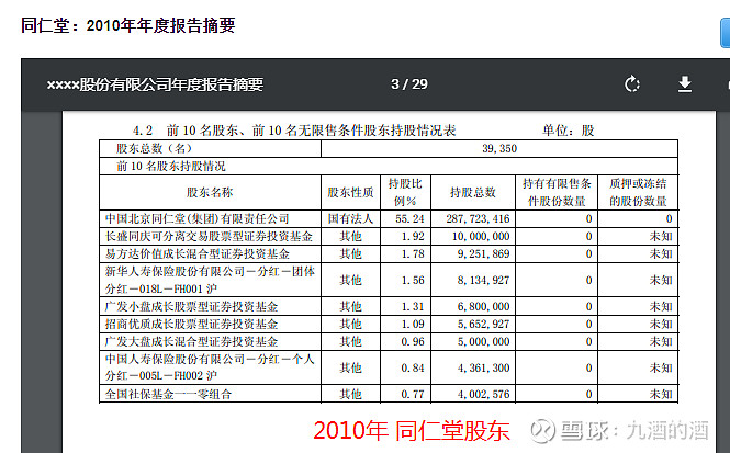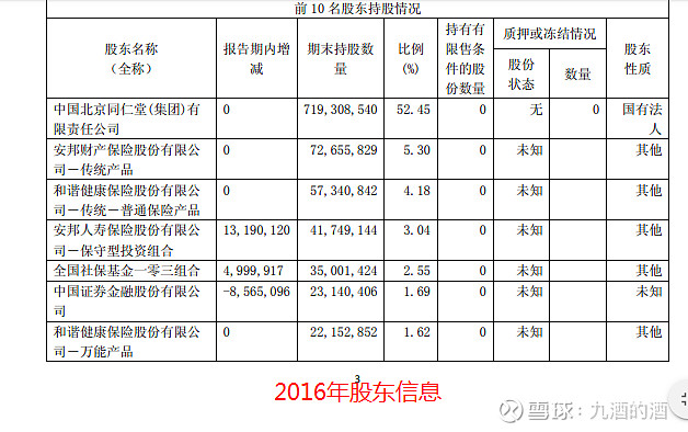 同仁堂(600085):每股净资产 7.41元,每股净利润 0.75元,历史净利润年均增长 8.55%,预估未来三年净利润年均增长 8.91%,更多数据见:同仁堂600085核心经营数据 同仁堂的当前股价 29.16元,市盈率 38.77,未来三年的估值假设和预期收益率如下:15倍PE,预期收益率 -52.22%;20倍PE,预期收益率 -36.29%;25倍PE,预期收益率 -20.37%;30倍PE,预期收益率 -4.44%。 #2021雪球投资炼金季# 如何快速全方位了解一家企业,年报是一个好的入手点 北京同仁堂股份有限公司 股票代码 600085 品牌:同仁堂 地位:同仁堂是中药行业久负盛名的中华老字号 主营业务是中药研发、生产、销售; 公司的主要产品是安宫牛黄丸、同仁牛黄清心丸、同仁大活络丸;同仁堂是中药行业久负盛名的中华老字号;同仁堂以安宫牛黄丸、同仁牛黄清心丸、同仁大活络丸为代表的十大王牌产品以及众多经典药品家喻户晓,蜚声海内外,在临床病患治疗中盛享美誉,公司业务覆盖 20 个国家及地区,零售终端达 71 个,形成了“立足中国香港,深耕主流,面向世界”的国际网络布局。公司使用的“同仁堂”商标属于控股股东同仁堂集团所有,该商标于一九八九年被国家工商行政管理局商标局认定为驰名商标。 同仁堂品牌始创于1669年(清康熙八年)。自1723年(清雍正元年)为清宫供御药,历经八代皇帝长达188年。 1949年新中国成立,使饱经沧桑的同仁堂获得了新生。1992年中国北京同仁堂集团公司组建并于2001年改制为国有独资公司,现代企业制度在同仁堂集团逐步建立完善。 1997年旗下同仁堂股份在上海上交所上市,2000年同仁堂科技在香港联交所上市,2013年同仁堂国药在香港联交所上市,同仁堂集团整体实力跃上了新台阶。 同仁堂集团坚持以中医中药为主攻方向,目前在经营格局上形成了以制药工业为核心,以健康养生、医疗养老、商业零售、国际药业为支撑的五大板块,构建了集种植(养殖)、制造、销售、医疗、康养、研发于一体的大健康产业链条。 拥有七个子集团、两个院和多家直属子公司,2400多家零售终端和医疗机构可以常年为广大消费者提供健康服务。拥有36个生产基地、110多条现代化生产线,可生产六大类、20多个剂型、2600多种药品和保健食品,安宫牛黄丸、同仁牛黄清心丸、同仁乌鸡白凤丸等一大批王牌名药家喻户晓。 股东成分:大股东为北京市国有资产监督管理委员会 报告期内主要经营情况: 报告期内实现母公司 37 个品规线上销售 2.20 亿元。同仁堂商业下属门店为 880 家,实现营业收入 739,448.12万元,同比下降 3.62%,营业利润 36,619.65 万元,同比上升 3.25%。 公司商业零售经营情况同仁堂商业按照“名店、名药、名医”的发展模式,坚持突出同仁堂品牌特色1.门店开设与分布情况同仁堂商业共设立零售门店 880 家,报告期内新设门店为 28 家。 2.门店经营情况 公司作为传统中成药生产与销售的老字号,品牌历史悠久,品种储备丰富,常年生产的中成药品规逾 400 个。 具有代表性的品种,按照心脑血管、补益、清热、妇科进行划分。 心脑血管类代表品种包括:安宫牛黄系列、同仁牛黄清心系列、同仁大活络系列、愈风宁心滴丸、偏瘫复原丸等; 补益类代表品种包括:六味地黄系列、金匮肾气系列、阿胶系列、五子衍宗系列等; 清热类代表品种包括:感冒清热系列、牛黄解毒系列、牛黄清胃系列等; 妇科类代表品种包括:同仁乌鸡白凤系列、坤宝丸、调经促孕丸等。 主要控股参股公司:①北京同仁堂科技发展股份有限公司在香港联合交易所有限公司主板市场挂牌上市,本公司所持股份占其总股本的 46.85%。净利润 78,650.76 万元,同比增长 6.09%。②北京同仁堂国药有限公司于 2013 年 5 月 7 日在香港联合交易所创业板发行上市,主要在海外发展分销网络以及制造销售中药产品。本公司对同仁堂国药的持股比例为 33.62%,净利润 50,467万元。③北京同仁堂商业投资集团有限公司投资占 51.98%。主要经营中成药、中药饮片、化学药制剂、生化药品,投资管理等。2020 年该公司实现净利润 26,618.87万元。 经营计划: 打造“4+2”经营模式,精准布局 OTC、终端、医疗、药酒四大市场 员工情况: 政府补贴: 关于2021年的畅想: 整体看,在2020年疫情影响下,依旧保持了非常稳健的利润增长。公司虽然从事医药领域,但是,不同于直接抗疫情的医药企业,没有相关的疫情产品。 研发费用的结构,整体感觉不合理,正在用在科研的部分比较少,当然,这个固有的传统配方有关,不需要过多的研发。 资产的减值比较多,这方面不可不察。 海外销售面临的市场不稳定风险因素。较为突出。 同仁堂其国资地位,在融资方面有独特优势,根据长期借款显示,有多笔免息贷款,有多笔1%左右的超低利息贷款。 来自各类政府的项目的补贴是比较高的,合计补贴5408.1万元, 坏账方面,个人认为是偏多的。 报告期的流通股:高毅资产持股较为长期,增持力度较大,北上资金相对减少较多。 核心优势:同仁堂的优势是文化、是品牌、是历史,这是独家的,不可复制的。 在特定的产品具有相对的垄断性和稀缺性,未来大健康产业伴随老龄化社会会成为最大受益者, 从品牌历史角度,属于真正的百年企业,属于非周期企业,具有中药产品的自主知识产权,而且不用研发,属于轻资产。 传统中药在当下的投资环境中,整体处于低估值状态。生物医药,仿制药,疫苗,医疗器材等长期以来都是A股医药领域投资