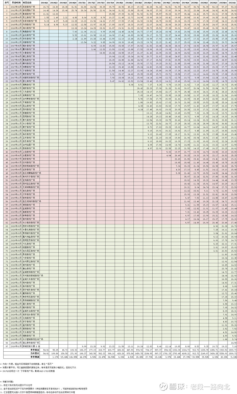 新城控股(601155):每股净资产 22.61元,每股净利润 6.79元,历史净利润年均增长 41.16%,预估未来三年净利润年均增长 17.34%,更多数据见:新城控股601155核心经营数据 新城控股的当前股价 46.65元,市盈率 6.91,未来三年的估值假设和预期收益率如下:15倍PE,预期收益率 191.95%;20倍PE,预期收益率 289.27%;25倍PE,预期收益率 386.59%;30倍PE,预期收益率 483.91%。 老规矩,文章中的表格自行下载,本次更新3张表格(因为以前是想到哪就整理哪个表格,后期会把所有表格整理一下):网页链接 表格1: * 不知道为什么,发出来的图片总是不全,最后只能把2020年隐藏了,实际表格里有 首先是把去年的数据更新了,关于平效、租金增速等信息,单座吾悦DCF表格等信息都在里面; 表格2: 4月9号新城发布一季度经营简报,我自己比较关心的就是吾悦的租金收入情况了:“2021年一季度公司商业运营总收入(即含税租金收入)为19.20亿元”。 预期在19-21亿之间,结果落在下限。本来想着今年90亿稳稳的,现在看来还是先看到85亿吧。 唯一让人欣慰的就是一季度销售额居然差不多500亿了,有点小惊喜。从大方向上来看,新城还是比较稳的,没有大家说的那么不及预期,主要是因为我觉得吾悦还算是估值便宜,未来增长确定性很强的标的,可以长期持有。 表格3: 今年一季度环比真的是惨目忍睹啊,不过我对今年85亿目标没有任何担心。 当大家还在猜测原因的时候,申万昨天的研报《新城控股21Q1经营数据点评:租金持续加速,销售快速增长》就把“低于”预期的原因解释了(给申万袁豪点个赞),然后还把新城的估值提高到66块。 虽然解释了原因,但总觉得有点牵强,归结起来还是疫情反复、减租等原因。不过地产股都是个位数估值,还预期这么高不合理啊,应该是破产倒闭才对。就像去年某人点评:疫情这么严重,吾悦出租率居然能做到接近100%,那以后还有什么提升空间呢?还好一季度普遍出租率有那么一点点下降。 拍脑袋估值:21年就算85亿40%净利率也有34亿,吾悦增速这么快,未来增长也是可以预见的(今年吾悦目标56%+),作为第一梯队A股仅此一家的商业地产公司,永续收租的生意毛估给40PE,不算住开,估值都比现在股价高了,吾悦这个收入是因为受疫情影响,正常年份还要高很多的,期望2023年彻底恢复增长。 $新城控股(SH601155)$ $新城发展(01030)$ $万科A(SZ000002)$ 作者:老段一路向北原文链接:https://xueqiu.com/6240633847/176824250 转载请注明:www.51xianjinliu.com » 新城控股2021年一季度吾悦广场数据 喜欢 (0)or分享 (0)