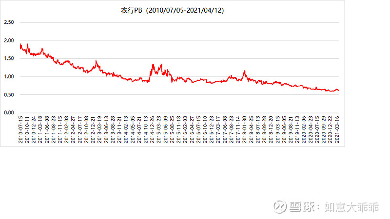 招商银行(600036):每股净资产 26.61元,每股净利润 3.79元,历史净利润年均增长 24.17%,预估未来三年净利润年均增长 13.17%,更多数据见:招商银行600036核心经营数据 招商银行的当前股价 53.3元,市盈率 13.81,未来三年的估值假设和预期收益率如下:15倍PE,预期收益率 47.66%;20倍PE,预期收益率 96.88%;25倍PE,预期收益率 146.1%;30倍PE,预期收益率 195.32%。 农业银行(601288):每股净资产 5.56元,每股净利润 0.59元,历史净利润年均增长 42.68%,预估未来三年净利润年均增长 6.03%,更多数据见:农业银行601288核心经营数据 农业银行的当前股价 3.26元,市盈率 5.28,未来三年的估值假设和预期收益率如下:15倍PE,预期收益率 223.6%;20倍PE,预期收益率 331.47%;25倍PE,预期收益率 439.34%;30倍PE,预期收益率 547.2%。 郑重声明:本文分析纯属于兴趣,不构成对任何标的投资建议 农业银行自2010年7月15日上市以来,已经将近11年了,我们使用Wind或IFind可以导出自上市以来农行的PB-Band如下图: 从上图可以看出农行历史上最低的0.60,我们看一下现价的安全边际,同样我们取Wind或IFind对农行每股净资产的一致预期:2021年每股净资产为5.28元,2022年每股净资产为5.74元,按照农行4月13日的收盘价3.39元计算得出2021年的PB为0.64,2022年的PB为0.60,PB区间为0.60~0.64,我们将农行历史的PB做一个直方图如下: 从上述直方图可以看到,历史上,农行在0.60~0.64的概率为6%,也就是说按照历史数据,未来有94%的概率使得农行的PB在0.64以上,即现价的安全边际有94成,我们再看历史PB的25分位数是0.84,即:按照历史数据的规律,按照农行目前的现价0.60~0.64PB,平均值为0.62,那么其2年内有75%的概率,其PB会达到0.84,对应的上行空间为:0.84/0.62-1=35.4%,对应的价格大约是:3.39×(1+35.4%)=4.58元价格,如果取历史PB数据10%分位数PB(0.70)做同样的计算,那么其2年内有90%的概率,其PB会达到0.70,对应的潜在的上行空间大约为:0.70/0.62-1=12.9%,对应的价格大约是:3.39×(1+12.9%)=3.83,这个价格和农行历史上前复权的最高收盘价很接近,即农行在2年内有90%的概率突破历史最高价 当然,上述分析成立的前提是农行在未来2年的资产质量至少不能比现在要差,否则的话就不会成立,接下来的文章会着重分析农行未来2年的资产质量的状况 @ericwarn丁宁 @眼力与定力 @睿信投研 @马克陈 $银行ETF(SH512800)$ $农业银行(SH601288)$ $邮储银行(SH601658)$ 作者:如意大乖乖原文链接:https://xueqiu.com/3555593296/177023064 转载请注明:www.51xianjinliu.com » 农业银行长期投资价值分析1 喜欢 (0)or分享 (0)