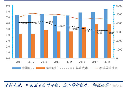 中国巨石(600176):每股净资产 5.29元,每股净利润 0.69元,历史净利润年均增长 21.93%,预估未来三年净利润年均增长 33.57%,更多数据见:中国巨石600176核心经营数据 中国巨石的当前股价 18.42元,市盈率 26.7,未来三年的估值假设和预期收益率如下:15倍PE,预期收益率 17.95%;20倍PE,预期收益率 57.26%;25倍PE,预期收益率 96.58%;30倍PE,预期收益率 135.9%。 一、公司概览 中国巨石成立于 1993 年,截止 2020 年,公司有 96.38%的收入和 99.85%的毛利来自于玻纤及制品的生产和销售。巨石在浙江桐乡、江西九江、四川成都、美国南卡以及埃及布局有5 个生产基地,2020 年底预计产能达到 200 万吨,是以产能计全球最大的玻纤生产企业,公司还在 14 个国家和地区建立了销售网络,逐步完善全球销售网络布局。自 1999 年上市以来,经过不断地规模扩张、技术创新与市场开拓,近10年公司主营业务收入的年合增长率达9%,近十年净利润年复合增长率达19%,2018 年营业收入历史性地突破百亿规模,2020 年公司实现营收116.66 亿元,归属净利润 24.16 亿元。 二、股权结构:中国建材控股子公司 经过 20 多年的股权转让变更,公司目前为中国建材控股子公司,持股比例为 26.97% 。1999年,中新集团持有公司 37.79%股权,2002 年时将此部分股权无偿划转至北新建材集团;2005年,北新建材将持有的该部分股权无偿划转至中国建材。第二大股东振石集团,为创始人张毓强(持股 70.28%)及董监高周森林、杨国明等共同投资设立的企业,旗下控股三十多家涉及多领域的公司。截止2020年报,中国建材持股公司比例为 26.79%,振石控股集团持股比例为 15.59%,香港中央结算有限公司(陆股通)持股比例为至 7.29%,中央汇持股比例为 1.25%。 三、关于玻纤 玻璃纤维是一种性能优异的无机非金属材料,绝缘性好、耐热性强、抗腐蚀好,常被用作复合材料中的增强材料、电绝缘材料、绝热保温材料、电路基板等领域,是国家重点鼓励发展的新材料。 玻纤以叶腊石、高岭土、石灰石、石英砂等矿石为原料,经过高温熔化、拉丝、烘干、络纱等环节制造而成。我国富含叶腊石,因此国内玻纤产品多以叶腊石作为原材料进行生产,而美国玻纤产品多以高岭土作为原材料生产。玻纤主要成分为二氧化硅、氧化铝、氧化钙等,根据玻璃中碱含量的多少可分为无碱玻纤、中碱玻纤和高碱玻纤,其中无碱玻纤占据 95%以上的产量规模。玻纤生产工业主要有两种,坩埚拉丝法和池窑拉丝法,目前我国池窑拉丝法占比约 94%。 玻纤生产流程 玻纤按照纤维的直径可分为细纱和粗纱,细纱是指单丝直径小于 10 微米的纱线,常见直径有5、7、9 微米,主要用作电子纱和工业纱,电子纱可用于生产电子布,下游为电子元件印刷线路板。粗纱是指单丝直径在 10 微米以上的纱线,可分为直接纱和合股纱。直接纱是指平行单丝不加捻而合并的集束体,合股纱是指平行原丝(多股原丝无捻粗纱)不加捻而合并的集束体。若按照是否加捻,玻纤可分为有捻纱、无捻纱,捻度是单位长度内纤维与纤维之间所加的转数,加捻是为了提高纤维之间的饱和力增加受力度。 玻纤制品和玻纤复合材料是玻纤主要的制产品。玻纤制品由玻纤初级加工而成,主要包括玻纤织物(方格布、网格布、电子布等)以及玻纤无纺制品(短切毡、湿法薄毡、连续毡、缝编毡、针刺毡等)。电子布是电子工业级的玻纤制品,属于高端玻纤制品。短切毡是将玻纤原丝切割成 50mm 长,将其随机且均匀分布在网带上,通过粉末或乳液粘结剂经加热固化后粘结成短切原丝毡。玻纤复合材料由玻纤制品进行深加工制成,主要包括 CCL、绝缘材料、浸渍涂层制品、FRSP(热固性增强塑料制品)、FRTP(热塑性增强塑料制品)、增强建材及其他复合板材/片材。 玻纤经过近百年的发展,已经形成从玻纤到复合材料的完整产业链。上游对接矿石采掘、化工、能源,玻纤生产的主要原料是叶腊石、石灰石、石英砂、硼钙石、硼酸等矿石与化工原料,辅料主要为浸润剂,燃料主要是天然气和电力,下游主要应用领域集中于交运、电子、建筑建材、风电以及一些新兴行业。 其中下游产业应用领域集中在建筑建材、电子电气、交通运输、管罐、工业应用以及新能源环保等领域,占比分别约为 34%、21%、16%、12%、10%和 7%。其中有相对比较偏周期的应用领域(建筑建材、管罐等),也有比较新兴的应用领域(汽车轻量化、5G、风电),所以玻纤行业兼具“周期”和“成长”双重属性。2020 年,作为交通运输领域的汽车轻量化替代品、以风电叶片为代表的新能源玻纤需求增长较快。 玻纤产业链 玻璃纤维的主要下游应用领域(2020公司年报) 玻纤行业是典型的重资产行业,固定资产与在建工程占总资产的比重超过 67%,除此之外,玻纤行业还高度依赖矿产资源与能源。以中国巨石为例, 原料辅料投入最大,单吨生产成本约占 34%,主要原料叶腊石,占成本的 11%; 能源成本位居第二,单吨成本约占25%,其中,天然气约占 10%,电力约占 15%; 其次,折旧成本约占 19% ,同样反映了重资产的行业特征;再次是人工成本约占 11%,其余成本合占 11%。 固定资产与在建工程在总资产中比重高 玻纤生产的成本结构(以中国巨石 2018 ) 四、行业格局 1、近年来国内玻纤产量占全球产量的比重不断提升,达 64%,2019 年国内玻纤产量达到 527 万吨,同比增 12.6%。由于玻纤材料对于钢材、木材等传统材料具有替代性,伴随产能