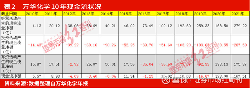 万华化学(600309):每股净资产 21.82元,每股净利润 7.85元,历史净利润年均增长 25.91%,预估未来三年净利润年均增长 8.49%,更多数据见:万华化学600309核心经营数据 万华化学的当前股价 88.5元,市盈率 11.27,未来三年的估值假设和预期收益率如下:15倍PE,预期收益率 69.9%;20倍PE,预期收益率 126.53%;25倍PE,预期收益率 183.16%;30倍PE,预期收益率 239.79%。 特约 | 张保良 本文所写或是投资人指出年报看到一些隐忧,是希望能够更客观看公司,是希望公司能够发展得更好,希望公司为投资人创造更大回报。 万华化学2021年年报超出机构预期,年报显示,公司的管理效益也在提升,规模经济优势一直是万华化学的护城河。从利润贡献角度看,聚氨酯还是利润核心板块。2021年海外营收占比的提升也符合公司国际化战略。但通过对比历年的年报,笔者发现从万华化学现金流角度去看,近年来,万华化学为了完成既定目标,扩张走上激进之路。 产能扩张带来规模经济效益 报告期内,万华化学的利润核心板块聚氨酯系列产品中,烟台110万吨MDI技改新增50万吨产能投放市场、聚醚多元醇销量提升及价格上涨以及产能(新增25.5万吨/年)、销量提升带来规模效用。对全球化布局的万华化学来说,今年营收和利润增长的另一个贡献是各产品产能的新增和扩张。 由于万华的产品MDI是大宗商品,公司主要开展的B2B型的业务决定公司的产品不存在品牌溢价,关键点是有进入壁垒的产品产能扩张和价格导向的成本优势。预计未来利润的最大贡献维度来自于三大板块的新增产能,即:公司产业链向上和下游延伸的新增产品产能,新产业链打通(例如HMDI产业链:万华是全球惟一一家掌握核心技术的企业)的新产品产能,核心产品MDI、TDI产能扩张和新业务(类似三元正极电池材料领域)的进入。通过技改不仅使得MDI产能提高,而且特殊的技术使得单吨产能的总投资额下降,这样平均每单位产品分摊的投资成本得以降低,从而使万华具备了规模经济效益。 2021年2月烟台工业园MDI装置完成从60万吨/年至110万吨/年的技改扩能,新增50万吨产能。此次扩产的50万吨/年产能的投资仅为0.7亿元/万吨。万华化学烟台工厂和宁波工厂MDI成本相较于国内其他厂家装置而言成本优势明显,年初某机构调研中高管曾讲道“万华较其他厂家便宜150-200美金,价格最低”,烟台万华技改后应具有每吨1500-2000元的完全成本优势。 可见,进入壁垒(进入壁垒和生产壁垒)+供给侧低成本+规模经济效益,通过价格优势导向锁定客户,三者结合产生的护城河,公司才会产生如此高的经济收益。 从自身“造血”到举债扩张 企业扩张必然离不开现金的支持。从经营活动产生的现金流量净额、投资活动产生的现金流量净额、筹资活动产生的现金流量净额为+(流入)和-(流出)看,从万华化学近10年的现金流量表可以看到万华属于+-+类型(蛮牛型)和+--类型公司(奶牛型)。 2012年和2016年~2019年,万华属于奶牛型的公司,这类公司特点是经营活动产生的现金流量净额为+(流入)说明企业经营正常,投资现金流为-(流出)说明企业在扩张,筹资活动产生的现金流量净额为-(流出)表明企业在还债同时还在给股东分红,回报股东,也就是说这几年万华化学完全靠着企业经营现金流来实施扩张投资同时还债和回报股东。 与可持续相对的是不可持续,现金流在流入但小于投资活动产生的现金流量净额流出+筹资活动产生的现金流量净额流出,马上就变成+-+类型(蛮牛型)公司。 2010年、2011年、2015年、2017年、2018年、2020年、2021年万华化学是典型蛮牛型公司,这类公司就是把经营活动收入,加上借债或出让股权筹来的资金一起投入到新项目中。企业扩张的急切之心昭然若揭,宛如一头勇往直前的蛮牛。如果所投项目再创辉煌企业可能高速成长,如果失败就宛如蛮牛撞山,就惨了!所以,所投资项目需要仔细分析具体问题具体研究。 不过从历史发展轨迹看,万华一直处于稳步增长扩张,所投入的项目都是逆行业周期扩张产能,且达到预期收益,今年业务暴发的原因也是前期产能扩张的结果。同时,万华本身是重资产行业,新产能和新产业链需要投入,形成护城河;但另一方面恰恰正是由于其重资产特征,很多投资者(资本)不愿因进入,阻挡了短期资本进入。可见万华化学的扩张之心非常强烈的,这源于2019年万华的战略规划,“5年内,力争进入全球化工前20强;在10年内,进入全球化工前十强;在15年内,成为全球一流的世界500强企业。” 2020年万华化学全球化工企业排名第32名,2021年第29名,排名是按总营收排名。 从负债角度看万华化学的扩张 公司现有的在建工程的预算数1600亿,近5年的购建项目的资本支出843亿,据此推算现有项目全部落地,还要投入800亿左右。还不包括未来几年的计划项目,未来三年,资本支出很可能超过千亿规模。然而,万华现在手里不到400亿类现金,扣掉分红的78.5亿,就剩320亿了。而短借539亿,一年内到期的长期借款42亿元,长期借款156亿元,资金压力很大。不考虑资本支出,光2022年就面临260亿的资金缺口。考虑资本支出,资金需求会超过500亿。虽然万华的经营“造血”能力强劲,未来几年估计平均每年经营“造血”250亿,还会有200-300亿资金缺口。只能靠扩大负债规模解决了。年报列示了2021年通过银行间市场发超短债融资的172亿的利率,最高的2.75%。 在2016年至2020年的5年里,公司高速扩张没完全依靠自身