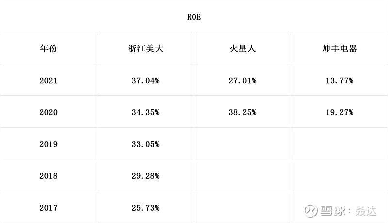 浙江美大(002677):每股净资产 3.19元,每股净利润 1.03元,历史净利润年均增长 19.89%,预估未来三年净利润年均增长 16.71%,更多数据见:浙江美大002677核心经营数据 浙江美大的当前股价 14.02元,市盈率 13.21,未来三年的估值假设和预期收益率如下:15倍PE,预期收益率 75.19%;20倍PE,预期收益率 133.58%;25倍PE,预期收益率 191.98%;30倍PE,预期收益率 250.38%。 只讨论公司经营,不谈论股价涨跌。 1.集成灶行业情况 2021年受宏观经济下行、房地产市场持续低迷、原材料价格上涨、叠加疫情反复等影响,厨电行业承压前行。 但集成灶行业整体呈现出逆势增长的态势,展示出了集成灶行业强劲的韧性和活力。 奥维云网全渠道推总数据显示:2021年传统厨电(烟灶消)市场整体规模5153万台、564亿元,零售量同比下滑9%,零售额同比增长2%; 2021年油烟机市场规模2150万台、333亿元,零售量同比下滑6%,零售额同比增长4%。 传统烟灶消等品类陷入发展瓶颈,零售量持续下降,零售额因产品结构升级小幅增长,而集成灶市场却持续开疆扩土,挤占传统烟灶市场份额。 据奥维云网(AVC)推总数据显示,2021年集成灶市场规模304万台、256亿元,零售量同比增长28%,零售额同比增长41%。集成灶产品增速居厨电市场各品类之首。 总结:厨电行业已处于成熟期,但集成灶抢在抢占传统厨电的市场份额,还处于成长期,并且市场规模较大,还有继续提升的空间。 2.行业竞争格局 集成灶行业快速向上的发展态势吸引了众多传统厨电、综合家电及跨界企业的加入,这些企业的入局加速了集成灶品类认知度和渗透率的提升,同时也加剧了行业竞争。 2021年集成灶行业洗牌加速,行业集中度不断提高,行业CR5销售额占比达44%,头部品牌的虹吸效应越发明显,腰部品牌的增长越发受限,小品牌的生存空间被更进一步压缩。 未来拥有核心技术、产品力、渠道力和品牌力等综合能力的企业将会胜出。 而集成灶的销售渠道分为线上和线下 【线上】同时前十品牌集中度为64%,2020年线上上半年零售规模过亿元的仅有四家品牌,火星人以20.5%的额份额排名第一: 而【线下】美大是绝对的第一,以23%额份额稳居首位,去年开始也加大了对线上的重视,开拓了自己的电商商城,进驻了天猫、京东等主流销售平台,在线上也排名靠前,成绩不俗。 受疫情的影响,外加线上销售能精准引流,相对来说线上销售渠道更有优势,销售额占比也在逐年提高。 财务指标对比 亿田智能在4月19号才发年报,就先不等了~ 资产负债表: 1.总资产 从总资产规模来看,三家旗鼓相当。 而总资产的增速浙江美大稍低一些。 2.资产负债率 浙江美大和帅丰电器的资产负债率都较低,而火星人相对较高。 但并不是说火星人的风险高,我们要继续分析三家公司的负债组成: 3.有息负债 三家公司的有息负债都可以忽略不计,没有偿债风险。 并且按比例来看,三家公司准货币资金占总资产的比值都在50%附近!说明三家公司的现金流都非常充裕。 4.经营性负债 三家公司都能无偿占用上下游资金,说明集成灶企业总体的行业地位都较高。 而火星人占用的资金最多,2021年是浙江美大和帅丰电器的两倍,说明其竞争优势最为明显。 再回到前面火星人的资产负债率较高,是由于经营性负债较多所致,并非异常,而是好事情。 5.应收账款 浙江美大和帅丰电器的应收账款占比非常低,说明产品非常畅销。 而火星人的占比就相对较高,说明其销售政策较为宽松。 6.存货 浙江美大的存货比值最低,火星人的较高。 但三家公司的存货都不愁卖、赊账少,问题不大。 7.固定资产 三家公司都属于轻资产型公司。 但浙江美大比值最高,说明其维持竞争力的成本相对较高。 8.投资类资产 三家公司都比较专注于主业。 9.商誉 三家公司都没有商誉,没有异常。 利润表: 1.营业收入 三家公司的营业收入含金量都非常高,说明能赚到真金白银。 而从增速来看,火星人遥遥领先,帅丰电器也高于浙江美大。 2.毛利率 从毛利率可以看出,浙江美大是走高端路线,而帅丰和火星人在2021年毛利率显著下降,是以销量为主。 谁的策略更好并不好说,但三家公司的毛利率都大于40%,说明行业的利润很客观,后期竞争必然会更激烈。 3.成本管控能力 成本管控能力浙江美大最强,火星人最弱。 火星人该比值偏高,是由于毛利率相对较大,并且销售费用较多所致。 4.销售费用 浙江美大和帅丰电器的销售费用率都较低,说明产品比较容易销售。 而火星人的销售费用率连续2年都大于20%,是由于其职工薪酬支出得较多所致。 广告费和展会费浙江美大和火星人投放的金额相当,相对来说浙江美大的成本管控能力更强。 而帅丰电器的广告和展会投入明显较低,目前是抢占市场份额的时期,并不是好事情。 5.主营利润 浙江美大主业盈利能力最强,持续性也最好。 6.净利润 浙江美大和火星人的净利润含金量都较高。 而帅丰电器含金量较低,是由于存货和预付增加所致。 7.归母净利润 火星人归母净利润的增速最高,而浙江美大的金额最大并且最为稳定。 8.ROE ROE方面,浙江美大最高并且持续增长,说明其盈利能力在不断变强。 火星人由于刚上市,并不稳定,还有待观察。 而帅丰电器ROE偏低,可以淘汰了。 现金流量表: 1.造血能力 浙江美大的造血能力比较稳定,而火星人的成长性较高。 但2021年两者的金额都维持在6亿左右,还属于小公司范畴。 2.分红 浙江美大的分