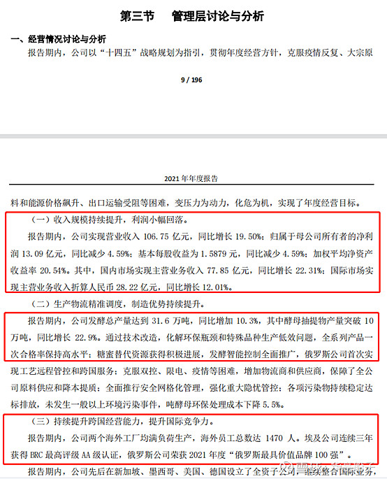 安琪酵母(600298):每股净资产 8.23元,每股净利润 1.59元,历史净利润年均增长 20.95%,预估未来三年净利润年均增长 17.54%,更多数据见:安琪酵母600298核心经营数据 安琪酵母的当前股价 38.4元,市盈率 27.12,未来三年的估值假设和预期收益率如下:15倍PE,预期收益率 0.73%;20倍PE,预期收益率 34.3%;25倍PE,预期收益率 67.88%;30倍PE,预期收益率 101.45%。 1.1企业信息 安琪酵母始建于1986年,总部位于湖北宜昌,前身为宜昌食用酵母基地,是国家计委布点的全国唯一一家酵母科研基地,1997年整体改制湖北安琪生物集团有限公司,1998年3月25日经湖北省体改委批准以发起方式设立股份有限公司,2000年8月在上海证券交易所挂牌上市交易。公司经过多年发展,业务规模不断扩大,酵母及深加工产品已广泛应用于烘焙、中式发酵面食、调味、酿造与生物能源、人类营养健康、微生物营养、动物营养、植物营养等领域。公司在国内外建有12个工厂,酵母发酵产能已达到31. 6万吨,酵母抽提物产量突破10万吨,产销规模已成长为亚洲第一、全球第二大酵母公司。目前已形成面向全球、信息灵敏、反应迅速、渠道畅通、控制有力的营销与市场服务网络,全球163个国家和地区可以享受到安琪提供的优质产品和细致周到的服务。公司形成了多业务品牌构架体系,不同的专业领域实施品牌细分,打造安琪品牌集群的力量,安琪已成为中国酵母市场的标杆品牌。公司肩负了发展中国现代酵母工业使命,一直引领着中国酵母工业的发展,30多年来,经形成了完整的中国酵母工业技术和装备体系,创造了中国市场不断增长的酵母需求,推动了酵母系列产品标准的建立,带动了相关应用领域技术进步,有力提升了中国酵母产品的先进性和国际化水平。 大信会计师事务所(特殊普通合伙)连续多年为本公司出具了标准无保留意见的年报审计报告。 资料来源:公司官网 1.2行业规模和发展阶段 1.2.1行业规模 现代酵母产业起源于欧洲,历经上百年的发展历程和持续的技术进步,酵母产业沿着酵母制品和酵母衍生制品两大产品线不断发展,已深入应用和服务于食品制造、饲料工业和生物制造等领域。 数据来源:公开资料整理 酵母是一种肉眼看不见的微小单细胞微生物,通常为圆形、椭圆形或腊肠形,酵母菌体含有蛋白质、脂肪、糖分和B族维生素等,分布于整个自然界,是一种典型的异养兼性厌氧微生物,在有氧和无氧条件下都能够存活,是一种天然发酵剂,能将糖发酵成酒精和二氧化碳,具有丰富的营养价值,是人们生活离不开的一种消费品。酵母可以用来发酵多种富微量元素酵母或氨基酸酵母,与其他发酵方法相比,酵母在发酵速度、营养价值和便利性上都具有一定的优势。目前酵母主要可以分为鲜酵母与干酵母,而干酵母又可分为活性干酵母与非活性干酵母,活性干酵母主要用于发酵面包、酿酒等;非活性干酵母主要用于直接食用、药用等。从消费市场看,酵母消费市场增长不平衡,欧美及大洋洲活性酵母应用成熟,存量大但增量小,以鲜酵母为主,市场增长潜力有限,酵母衍生品需求潜力较大;非洲、中东、亚太等区域人口增长快,烘焙业兴起,活性酵母市场需求增长迅速。 数据来源:公开资料整理 酵母工业属于生物产业中的生物制造业,生物产业是我国九大战略性新兴产业之一,中国已成为全球最大的酵母生产国和出口国。安琪酵母在我国的行业分类中属于食品饮料-调味发酵品,主要产品集中在酵母及深加工产业,公司业务在国内、国外都有涉及。从产业链来看,酵母产品的上游是甜菜、甘蔗种植业,酵母制造是糖蜜的最大需求,糖蜜等培养基中经过扩大培养和繁殖、分离,脱水,均质后经压榨而制成酵母。中游包括酵母、酵母抽提物及酵母衍生品等中间产物。酵母产品的下游应用领域广泛,主要包括烘焙、发酵面食、调味品、动物饲料、酿酒、化妆品、医疗保健品等领域。从应用领域上看,酵母应用的传统和主导领域行业发展相对成熟,在饲料养殖、生物发酵等新兴领域市场容量巨大,应用前景广阔;酵母衍生品在风味、营养、健康等领域应用的广度和深度正在进一步拓展。 资料来源:公司年报 酵母属于典型的用途广、用量少但效用明显的添加剂类产品,随着其用途不断多元化和居民收入的提升,食品消费支出呈增长趋势,人们更加注重食品风味化、精细化及多样化已成不争事实,这对调味发酵行业发展,起到较大促进作用。从产能分布上看,目前全球酵母总产能约为190万吨,乐斯福、安琪、英联马利分列行业前三位;酵母行业产能主要集中在欧美,超过总产能一半;近年来中国成为全球酵母产能增长最为迅猛的区域,带动了亚太乃至全球酵母产能的快速增长。 数据来源:公开资料整理 根据观研报告网发布的《2021年中国酵母行业分析报告-市场行情监测与未来规划分析》显示,2019年我国酵母产量为39. 4万吨,较上年同比增长5. 6%;酵母需求量为26. 17万吨,较上年同比增长3%.自2014年来,我国酵母市场规模也在持续增长,2018年增长至37. 92亿元,同比增长6. 57%;2019年中国酵母市场规模达到39. 57亿元,同比增长5. 63%.从地域分布上看,我国已成为全球酵母行业竞争的主战场,随着中国酵母抽提物产能平稳增长,行业集中度提升以及下游应用领域不断增加,中国酵母行业整合得以持续进行,安琪在行业内凭借规模、品牌、技术、渠道等优势,市场地位将进