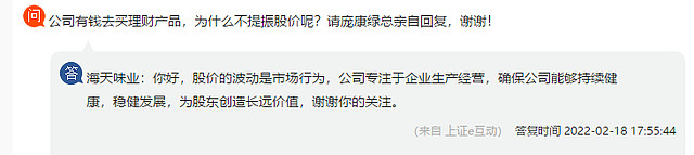 海天味业(603288):每股净资产 5.56元,每股净利润 1.58元,历史净利润年均增长 20.57%,预估未来三年净利润年均增长 15.29%,更多数据见:海天味业603288核心经营数据 海天味业的当前股价 75.35元,市盈率 53.34,未来三年的估值假设和预期收益率如下:15倍PE,预期收益率 -56.18%;20倍PE,预期收益率 -41.58%;25倍PE,预期收益率 -26.97%;30倍PE,预期收益率 -12.36%。 文 | 杨万里 在美股暴跌阴影下,A股早盘大幅低开,很快又上演深V反转,今天终于硬气了一把。不过,股市上涨的快乐与海天味业的投资者无关。 5月10收盘,海天味业逆市下跌0.7%,股价为76.11元,总市值为3527亿元,已跌至2020年5月份水平。 若将时间再推前,海天味业自2021年1月8日涨至152.14元高点后,便开启了漫长的回调之路。当前股价与高点相比,累计跌幅达49.97%,接近腰斩。 由于股价表现不佳,把投资者都搞急了。 去年年末,有人提问称,“公司有钱去买理财产品,为什么不提振股价呢?请庞康总亲自回复”。资料显示,庞康现任海天味业董事长、总裁、法定代表人等职务。 时隔2个月后,海天味业方面才回复,表示“股价的波动是市场行为,公司专注于企业生产经营,确保公司能够持续健康,稳健发展,为股东创造长远价值”。 海天味业曾被投资者誉为“酱油茅”,如今却沦为“牛夫人”。股价走弱背后,原因是什么? 一是业绩因素。 2022年一季报显示,海天味业实现营收72.10亿元,同比增长0.72%;实现归属净利润18.29亿元,同比下降6.36%。 一方面,受疫情冲击,餐饮行业低迷,海天味业三大核心产品酱油、调味酱、蚝油营收增速分别下滑-0.53%、-8.61%、-3.17%。 另一方面,成本上行导致盈利能力下降。数据显示,今年一季度,海天味业毛利率、净利率分别同比下滑2.77个百分点、1.93个百分点。 值得一提的是,在去年10月下旬,海天味业宣布调高包括酱油、蚝油及酱料等产品出厂价3%至7%。但是,去年的提价将难以完全覆盖现有成本的压力。 一组数据显示,海天味业成本构成包括:大豆占成本比例为19%、白砂糖占成本比例为15%,玻璃瓶、塑料瓶分别占成本比例为12%、12%。 从2020年年初(疫情爆发)至今,大豆等大宗农副产品的价格持续大涨。例如,大豆当月连续(期货)在两年零五个月时间内累计涨幅超过67%。 成本大幅上市无疑增加了海天味业的经营成本。 二是公司估值偏高,且基本面无法支撑。 截至5月10日,海天味业动态市盈率为48.21倍,而食品行业平均市盈率为35.92倍,海天味业估值明显更贵。 一般来说,高估值就需要高业绩增速来支撑,而海天味业基本面无法支撑。 数据显示,海天味业的营收增速从2017年的17.06%下降至2021年的9.71%,归属净利润增速从2017年的24.21%下降至2021年的4.18%。 不难发现,去年海天味业的营收、净利增速均降为个位数。 此外,近年海天味业的毛利率处于持续回落状态,反映出公司盈利能力减弱。2018年至2021年,公司毛利率分别为46.47%、45.44%、42.17%、38.66%,4年下降了7.81个百分点。 我们关注到,调味品行业最大的特征是行业非常分散。截至2020年,海天味业市占率排名第一,但也只有7%的市场份额。 有市场观点认为,调味品属于刚需行业,可选品牌较多,产品同质化、行业竞争严重。对于消费者来说,到底是价格优先还是品牌优先,暂时不能定调。所以,海天味业的护城河到底多深一直是个争议的话题。 业绩增速放缓、股价腰斩,海天味业后市如何表现,我们将继续保持关注! 作者:德林社原文链接:https://xueqiu.com/4226224438/219549666 转载请注明:www.51xianjinliu.com » 庞康公司为什么不提振股价海天味业股民急了股价已腰斩 喜欢 (0)or分享 (0)