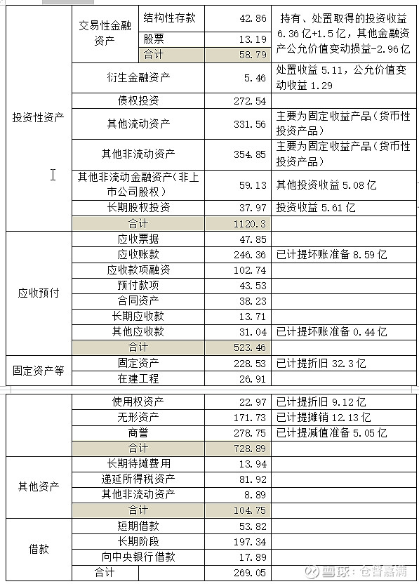 美的集团(000333):每股净资产 17.87元,每股净利润 4.17元,历史净利润年均增长 0.0%,预估未来三年净利润年均增长 12.19%,更多数据见:美的集团000333核心经营数据 美的集团的当前股价 56.68元,市盈率 13.54,未来三年的估值假设和预期收益率如下:15倍PE,预期收益率 55.83%;20倍PE,预期收益率 107.78%;25倍PE,预期收益率 159.72%;30倍PE,预期收益率 211.67%。 一、分红 2020年度现金分红116.78亿,回购股份136.64亿,分红总额253.42亿。 2021年归母净利润285.74亿,未提出分红方案。 二、主营业务分析 (一)营业收入及成本构成: 反映:①营业收入增幅较大,但营业成本增幅更大;②暖通空调占比超40%,消费电器占比接近40%;③机器人及自动化系统虽然占比较低,但增幅较大;④国内市场占比60%,国外市场占比40%,国内市场增幅更大;⑤线上销售占比接近20%,线下销售占比超80%,线上增幅小,线下增幅较大。 (二)营业成本构成 反映:原材料占营业成本的84%,且增幅最大 三、资产负债表 详表: 四、利润表: 五、现金流量表 经营活动收到的现金3104.9亿,略小于营业收入的3433.61亿; 经营活动产生的现金流量净额350.92亿,大于利润总额的337.18亿; 资本开支68.25亿,大于固定资产、无形资产计提折旧摊销的44.43亿。即实际上资本开支约24亿,归母净利润现金含量约265亿。 六、总结 美的的业务还算比较复杂的,主营业务就有众多产品,还有财务公司业务、投资业务。分块看: (一)投资业务 交易性金融资产、衍生金融资产、债券投资、固定收益产品资产共计1023.2亿,难以取得超4%的收益,以正价作为估值,仍为1023亿。 长期股权投资资产(联营企业)37.97亿,收益5.61亿,其他非流动金融资产(非上市公司股权)59.13亿,不知其他投资收益5.08亿中有多少是该部分资产取得的收益,暂不算,仍以5.61亿的25倍估值,为140亿。 合计1423亿。 (二)财务公司业务 吸收存款7.82亿,发放贷款206.57亿,利息收入21.27亿,收益率真高,以这个利息收入给25倍估值,约534亿。 (三)主营业务 投资性资产收益、其他收益、财务公司利息收入共计56.34亿,折合净利润约42.26亿,则主营业务净利润约243亿,减实际的资本开支24亿,还剩净利润219亿。给25倍估值,为219*25=5475亿。实际上年度原材料成本上涨较快,对以后可能是个好消息。 (四)总估值 1423+534+5475=7423亿。 作者:仓督嘉满原文链接:https://xueqiu.com/7740430704/219685602 转载请注明:www.51xianjinliu.com » 美的集团2021年年报解读 喜欢 (0)or分享 (0)