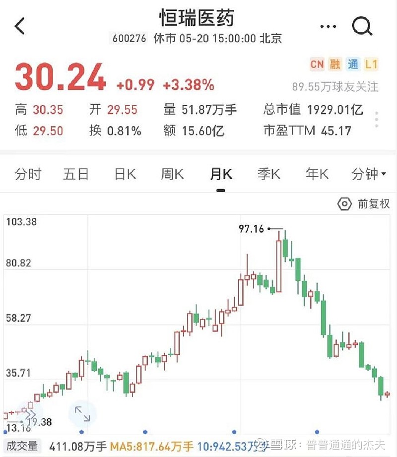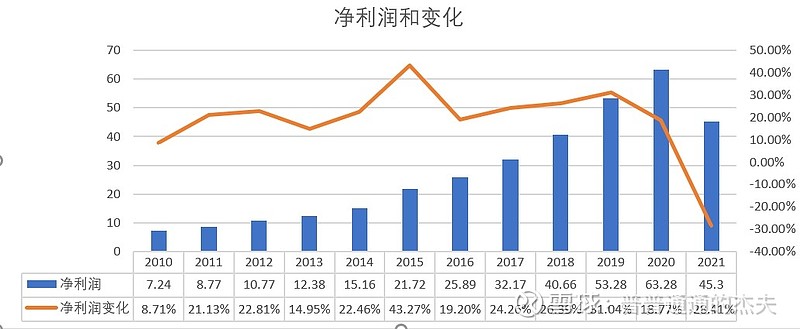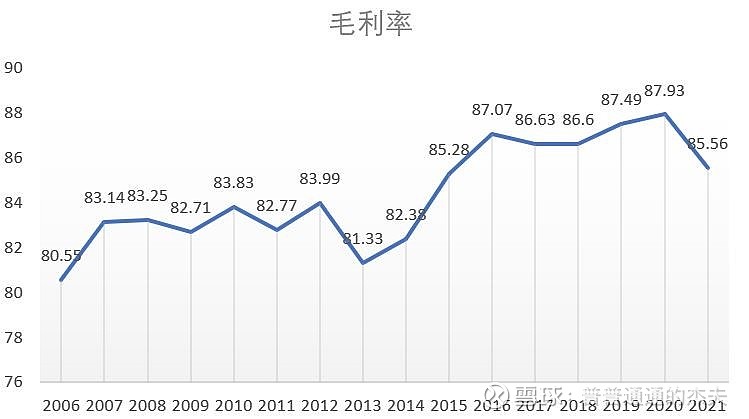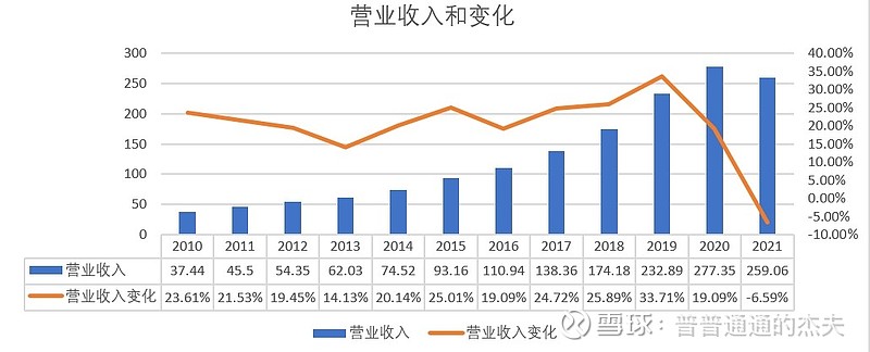 恒瑞医药(600276):每股净资产 5.47元,每股净利润 0.71元,历史净利润年均增长 23.13%,预估未来三年净利润年均增长 11.63%,更多数据见:恒瑞医药600276核心经营数据 恒瑞医药的当前股价 30.03元,市盈率 44.86,未来三年的估值假设和预期收益率如下:15倍PE,预期收益率 -50.67%;20倍PE,预期收益率 -34.22%;25倍PE,预期收益率 -17.78%;30倍PE,预期收益率 -1.33%。 恒瑞医药(600276):每股净资产 5.47元,每股净利润 0.71元,历史净利润年均增长 23.13%,预估未来三年净利润年均增长 11.63%,更多数据见:恒瑞医药600276核心经营数据 恒瑞医药的当前股价 30.03元,市盈率 44.86,未来三年的估值假设和预期收益率如下:15倍PE,预期收益率 -50.67%;20倍PE,预期收益率 -34.22%;25倍PE,预期收益率 -17.78%;30倍PE,预期收益率 -1.33%。 1 公司概要 江苏恒瑞医药股份有限公司是一家从事医药创新和高品质药品研发、生产及推广的医药健康企业,创建于 1970 年,2000 年在上海证券交易所上市,截至 2021 年底,共有全球员工 24491 余人,是国内知名的抗肿瘤药、手术用药和造影剂的供应商,也是国家抗肿瘤药技术创新产学研联盟牵头单位,建有国家靶向药物工程技术研究中心、博士后科研工作站。 恒瑞医药是国内知名的抗肿瘤药、手术用药和造影剂的研究和生产基地之一。公司产品涵盖了抗肿瘤药、手术麻醉类用药、特色输液、造影剂、心血管药等众多领域,已形成比较完善的产品布局,其中抗肿瘤、手术麻醉、造影剂等领域市场份额在行业内名列前茅。 在市场竞争的实践中,恒瑞医药坚持以创新为动力,打造核心竞争力。公司近年来每年投入销售额 15%左右的研发资金,2020 年累计投入研发资金 49.89 亿元,占销售收入的比重达到 17.99%,2021 年,公司进一步加大了研发投入,累计研发投入达到 62.03 亿元,比 2020 年增加 12.14 亿元,同比增长 24.34%,占销售收入比重达到 23.95%。 恒瑞医药本着“诚实守信、质量第一”的经营原则,抗肿瘤药、手术麻醉类用药、特色输液、造影剂市场份额在国内市场名列前茅。目前公司有注射剂、口服制剂和吸入性麻醉剂等 19 个制剂产品在欧美日上市,实现了国产注射剂在欧美日市场的规模化销售。 公司注册于江苏连云港市。 2 商业模式 2.1 创新药 图 1: 主营业务占比 如图 1所示,公司的抗肿瘤药 2021 年收入 130.7 亿,占比 51%,毛利率也最高,有 90.63%。麻醉药有 49 亿,占比 19%,毛利率 89%。这是公司毛利率最高的两大类产品。 2021 年公司国内的营业收入有 251 亿,国外的营业收入有 6.1 亿,只占总收入的 2.3%,国外的营收同比还略有下降,所以恒瑞医药还不能称之为是一个国际化的公司,它还只是一个以国内销售为主的公司,国际化还有很长的道路要走。 2.2 营收增长很快 如图 2是 2010 年到 2021 年的营业收入,从 2010 年的 37.44 亿,增加到 2021 年 259 亿,10 年间的复合增长率有 19%,这是相当可观了。 图 2: 营业收入和变化 相应的净利润也大幅增长,如图 3所示,从 2010 年的 7.24 亿到 2021 年的 45.3 亿,11 年的复合增长率为 18%,很少有生意能够这么赚钱。 图 3: 净利润和变化 2.3 经营效率较高 恒瑞医药的毛利率是很高,一般在 80% 以上。 图 4: 毛利率 看图 5,恒瑞医药的净资产收益率也极高,在 2020 年前 10 年都在 20% 以上,2021 年突然有了大幅下降,一个是由于新冠疫情的影响,更大的原因是国家集采的影响,另外,公司 21 年加大了研发投入。 图 5: 净资产收益率 公司的现金流也不错,在 2021 年的 45 亿利润中,净现金就有 42.19 亿,收入的质量很高。 图 6: cash 3 护城河 3.1 研发优势 经过多年发展,公司已经形成了一支 5400 多人的规模化、专业化、能力全面的研发团队,在多个疾病研发领域的创新能力和执行能力方面都形成了一定的竞争优势。公司先后在连云港、上海、成都、美国和欧洲等地设立了研发中心,以满足多个疾病领域管线对新分子实体的发现和开发需求,以应对外部严峻的竞争态势。公司加强了临床研发部以及海外研发团队的研发投入和能力建设,保证了临床研发策略前沿、市场准入时间缩短、执行质量水准提升。研发团队从临床研究、运营、注册、药物警戒等多个维度主导和支持了国内外 250 多个临床项目,其中包括国际多中心临床近 20 项,推进 7 项国际多中心项目进入注册 III 期临床,并有 10 余项研究处于准备阶段。 2021 年,公司自主研发的创新药海曲泊帕乙醇胺片、脯氨酸恒格列净片、羟乙磺酸达尔西利片获批上市,公司已上市创新药增至 10 款。注射用卡瑞利珠单抗治疗二线及以上鼻咽癌、一线鼻咽癌、一线鳞状非小细胞肺癌、一线鳞状食管鳞癌的 4 个新适应症相继获批,获批适应症总数达 8 个,是目前获批适应症最多的国产 PD-1;氟唑帕利胶囊第 2 个适应症获批上市,用于铂敏感复发性上皮性卵巢癌、输卵管癌或原发性腹膜癌成人患者在含铂化疗达到完全缓解或部分缓解后的维持治疗;注射用甲苯磺酸瑞马唑仑第 3 个适应症获批上市,用于全身麻醉的诱导和维持。 公司在美国和欧洲已建立涵盖医学科学、临床运营、注册、药理、统计、质量管理等多部门在内的完整临床研发队伍,真正掌握了对整体项目进度的实际把控与主动权,实现在研项目的高效率运作与高质量执行,并积极进行新项目的临床研发规划。海外临床研发团队的各项工作有序推进,全面启动全球产品团队工作模式,不 4 风险 断优化国际化顶层设计