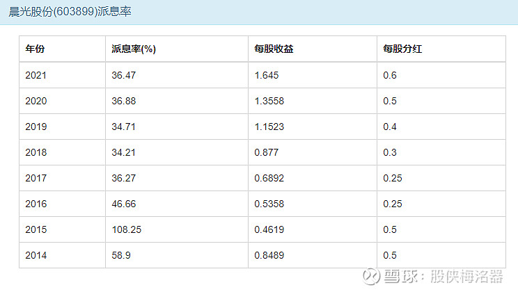 晨光股份(603899):每股净资产 6.68元,每股净利润 1.65元,历史净利润年均增长 27.96%,预估未来三年净利润年均增长 18.67%,更多数据见:晨光股份603899核心经营数据 晨光股份的当前股价 49.05元,市盈率 31.06,未来三年的估值假设和预期收益率如下:15倍PE,预期收益率 -15.93%;20倍PE,预期收益率 12.09%;25倍PE,预期收益率 40.12%;30倍PE,预期收益率 68.14%。 买股票的往往有三怕:一怕买错,二怕买贵,三怕买漏。 这里有套方案做养鹅配方,可以系统性解决这三个问题。 口说无凭,看图说话,现在看下晨光股份603899的数据: 众所周知,晨光主营的是文具,而每户人家都有上学的孩子,学生都要用文具,所以晨光发展的不错,ROE上市以来一直都大于20%,已经超过配方基本要求,达到股神巴菲特的苛刻要求了。再看一下历年的分红情况: 上图所示,晨光刚开始那两年也是没整明白,尽心尽力的分红,比例比较高,但是那样的分红是难以为继的,或许是明白了茅台的玩法,痛定思痛,长痛不如短痛,第三年分红比例下调,做了个有后续有计划的长期打算,第四年稳住,当时肯定有人说小气,才分36.27%,但是计划做了就得坚持,第五年开始每股分红稳步上涨,打造出股票内在价值一路升腾的样子,誓做文具界的茅台。别看最近一年来的下滑腰斩,他的内在价值在增长,股价有时也要根据市场先生的指示,弯一下腰,蹲下来是为了更好的起跳。配方表示看得到明年的分红大概率是每十股派息7元。接下来用配方试算一下养鹅情况: 养鹅配方不是事后诸葛亮,不取最低点,取符合条件的2018年的年度分红即2019年的5月7日为首次买入时间,那天,每十股派息3元,开盘价36.36元股息率0.83%,应使用先锋队资金买入2300股*36.36=83628元,补仓位设定0.83%*1.5=1.25%股息率处的股价30/1.25=24元,行情选择了上行,没能补仓。目标售价设定为36.36*1.5=54.54元,此价格出现于2020年4月23日,自动卖出1900股,收回本息103626元,历时一年少14天,留取400股养鹅,与时间做朋友,收获源源不断的的被动收入。 2020年5月22日每十股派息4元,开盘价50.7元,股息率0.79%,应使用先锋队资金买入1600股*50.7=81120元,补仓价设为0.79%*1.5=1.19%股息率处的股价40/1.19=33.61元,行情选择了上涨,没能实现补仓,目标售价设定为50.7*1.5=76.05元此价格出现于2020年10月13日,自动卖出1300股,收回本息98865元,历时5个月少9天,留取300股养鹅,与时间做朋友,收获源源不断的被动收入。 2021年5月7日每十股派息5元,开盘价88.8元,股息率0.56%,应使用先锋队资金买入600股*88.8=53280元,补仓价设定为0.56%*1.5=0.94%股息率处的股价50/0.94=53.19元,此价格出现于2022年2月10日,应使用打援部队资金买入1800股*53.19=95742元,二次补仓价设定为0.94%*1.5=1.41%处的股价50/1.41=35.46元,财年内最低价44元,没能实现二次补仓。本财年告一段落,核算一下综合成本(53280+95742)/2400=62.09元/股。下年度除权除息日开盘价如果大于这个成本价就不做买入,低于这个成本价,则按股息率买入,进行补仓,以摊低持股成本。 2022年5月6日每十股派息6元,开盘价46.88元,股息率1.28%,应使用先锋队资金买入2700股*46.88=126576元,合并上期,综合成本为275598/5100=54.04元,再度补仓价为1.28%+0.5%=1.78%股息率处的股价60/1.78=33.71元,目标售价设定为54.04*1.5=81.06元,如果行情不选择33.71元,那么81.06这个价格应该在2022年11月7日前出现。也就是说从88.8元的买入价到81.06元卖出价可以实现难以想象的50%增长。 回过头来回答前面的三个怕:1怕买错,就选ROE大于15%,每股分红上涨的股票。2怕买贵,就以股息率为权重买入相应的份额。3怕买漏就在每个除权除息日也是股价折扣日定为每年首次买进日。卖就交给时间,设定好50%的增长自动卖出,坚持去做,你把鹅养大,鹅把你养老。 加油,为进一步接近股票内在价值而不懈努力,奋斗余生。 作者:股侠梅洺器原文链接:https://xueqiu.com/2024688502/221211324 转载请注明:www.51xianjinliu.com » 晨光股份603899 喜欢 (9)or分享 (0)