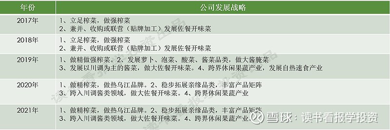 涪陵榨菜(002507):每股净资产 8.07元,每股净利润 0.87元,历史净利润年均增长 26.24%,预估未来三年净利润年均增长 22.09%,更多数据见:涪陵榨菜002507核心经营数据 涪陵榨菜的当前股价 35.99元,市盈率 42.43,未来三年的估值假设和预期收益率如下:15倍PE,预期收益率 -34.01%;20倍PE,预期收益率 -12.02%;25倍PE,预期收益率 9.98%;30倍PE,预期收益率 31.98%。 朋友们大家好,这里是“读书看报学投资” 今天我们一起来了解和分析一下涪陵榨菜这家企业。 一、公司介绍 重庆市涪陵榨菜集团股份有限公司是一家以榨菜为根本,立足于佐餐开味菜领域的国有控股食品加工企业,主要从事榨菜、萝卜、泡菜、下饭菜和其他佐餐开味菜等方便食品的研制、生产和销售。公司下辖重庆涪陵、四川眉山、辽宁盘锦三大生产基地,10家子公司、10家生产厂、1个数字化生产车间、17条自动化生产线、28万吨原料发酵窖池,年生产成品榨菜、萝卜、泡菜、下饭菜能力20万吨。 公司销售网络覆盖全国34个省市自治区,260余个地市级市场,1000多个县级市场,产品远销全球50多个国家和地区,“乌江”榨菜品牌知名度、市场占有率高,品牌价值100.98亿元(位居第十届中国品牌价值500强榜单347位)。 目前,公司正以绿色发展、高质量发展为引领,全面推动“中国榨菜城”智能制造基地项目建设,打造集智能制造工艺、大数据高效管理、和谐生态环境、特色工业旅游于一体的具备国内一流水平的智能制造基地,推动涪陵榨菜产业转型升级,实现榨菜、泡菜、川调类酱产品融合发展。 二、行业情况分析 公司在2021年年报中描述了目前行业的状态以及公司所面临的现状,主要存在五项主要的困难: 1、行业准入门槛较低,导致产业竞争非常激烈。 2、随着中国城市化、工业化进程的加快,人口进一步向城镇集中,居民消费能力不断提升,消费不断升级,新的食用方法、功能不断涌现,新的消费方式不断出现。 3、 2021年年初青菜头收购价格猛涨、原料价格奇高,年中大宗商品价格波动引起包装、 辅材等价格大幅上涨,消费品行业在生产端承压。 4、销售端面临社区团购等新渠道较大冲击,对既有经销商体系挑战加大。 5、传统品牌老化对新生代消费群体粘性减弱,行业洗牌呈现加剧态势。 针对行业困境,公司也基本明确了未来发展的方向和部分处理措施。 1、 针对市场准入门槛低,竞争激烈,公司积极参与行业标准制定,拉通产业升级,向着行业规范化、品牌化、集中度进一步提高。 2、 面对原材料价格的波动,公司目前采用年度招标方式,年初确定价格,年终根据订单采购;“公司+合作社+农户”采购模式,保障原料来源,通过自身30万吨的原料窖池,平抑大宗农产品价格的波动。 3、 针对品牌做好“明确榨菜价值,做热乌江品牌”“城市精准营销,重塑渠道结构”坚持做透线下渠道,做好渠道下沉到县乡。 4、 面对消费场景,研究、引导、推广新食用方法,新功能,将公司定位为“植物性调味品制造商”,提升品牌对新生代群体的粘性。 根据【中国报告大厅网讯】据榨菜/下饭菜品牌排行榜数据统计分析,前五名的品牌是乌江、鱼泉、吉香居、辣妹子,铜钱桥,其中涪陵榨菜和鱼泉榨菜包揽了国内51%的市场占有率,涪陵榨菜更是处于绝对垄断地位,市占率约为40%。 下面我们分析一下对榨菜行业价格具有绝对影响作用的主要原材料“青菜头”的情况。 “种撒白露间,移栽寒露田。” 青菜头种植要求温度较低,均生长在四川、重庆、浙江北纬29°21‘至30°01’之间。尤其在涪陵及周边地区、四川眉山的部分地区,特定的马鞍形气候与紫色土壤而生的青菜头质量为最佳。 9月种下,1-2月份即可收割,而若遭遇暖冬或极寒,则都会造成青菜头减产,此外青菜头收割时机较短,块茎成熟可收获到雨水季节来临不过1个月的时间,雨水浸泡过的青菜头会迅速膨胀,重量增加但是口感变差,品质有所下滑。 总结一下,影响青菜头价格波动的两个环节,一个是具有地域限制性的产地,一个是严苛的收获时间,这两个主要限制因素造成青菜头的价格容易出现波动,从而造成下游榨菜厂家的成本变动。针对以往青菜头是涪陵榨菜的护城河的说法我们不太赞成, 2021年涪陵区青菜头总产量达169.9万吨。粗略推算一下2021年全国青菜头总产量约在370万吨左右。涪陵榨菜2021年销售榨菜13.48万吨,使用原材料青菜头约41万吨。涪陵榨菜用掉全国11%的青菜头,用掉了涪陵区24.1%的青菜头,任何气候或者其他原因造成的价格波动都将会造成涪陵榨菜原材料的成本提高,所以我们认为青菜头虽然在产地上比较独特,但是不仅对涪陵榨菜没有起到多大的提升作用,反而倒是价格的波动严重影响了公司的原料成本。虽然公司采用了“公司+合作社+农户”采购模式以及自有的原料窖池进行调节,但是依然不能完全避免原料价格的影响。 我们来聊一聊榨菜的消费场景和公司的战略规划。 榨菜已经不是我们熟悉的早年间馒头加榨菜的消费场景了,随着人均消费量高的地方逐渐衍生出更多地消费方式, 可以用来炒蛋、焖鱼、烧汤,同时也是在疫情封闭期间作为居家储备物资的较好选择,但是随着新生代步入主力消费大群,国家整体的消费升级,近年来自热饭菜、预制菜等新产品的推出,榨菜及下饭菜这类传统食材面临着很大的压力,已经失去部分市场,所以涪陵榨菜给的长期战略目标是将榨菜定义为休