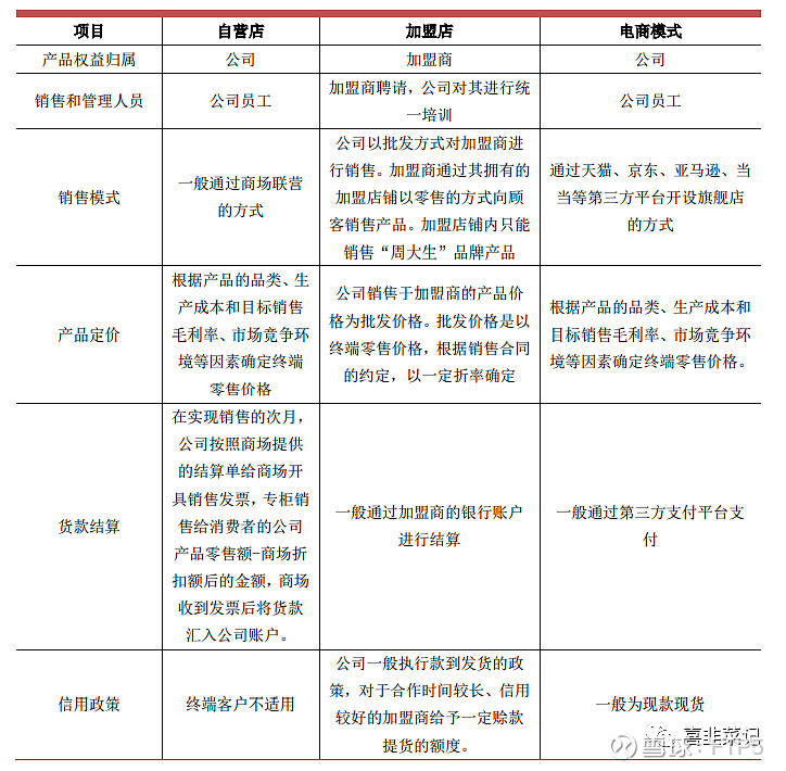 周大生(002867):每股净资产 5.28元,每股净利润 1.12元,历史净利润年均增长 17.68%,预估未来三年净利润年均增长 17.37%,更多数据见:周大生002867核心经营数据 周大生的当前股价 13.67元,市盈率 11.71,未来三年的估值假设和预期收益率如下:15倍PE,预期收益率 32.47%;20倍PE,预期收益率 76.63%;25倍PE,预期收益率 120.79%;30倍PE,预期收益率 164.94%。 公司研究:周大生系列报告(三)之盈利预测 公司研究:周大生(四)之半年毛利进一步预测 上文提要: 1、公司:周大生是一家销售钻石镶嵌产品与黄金产品的上市公司。 2、行业:黄金珠宝行业亟待复苏,市场竞争激烈,品牌是最大壁垒。 摘要:本来想看看这家公司有什么很吸引人的地方,但看起来平平无奇,我现在把他定义为同步性很强的防御性标的。 一、商业模式 (一)两大主营产品:钻石镶嵌首饰,黄金镶嵌首饰 2021年,周大生根据市场消费习惯的结构性变化,公司快速调整自己的产品定位,由“以钻石为主力产品,黄金为人气产品” 调整为“黄金为主力产品,钻石为核心产品”,K金、铂金、翡翠、珍珠、彩宝为配套销售产品。其中,黄金产品毛利在10%左右,钻石产品毛利在30%左右。 黄金产品方面,从“情感表达、时尚装扮、文创IP”三大产品研发方向,打造了“欢乐童年、浪漫花期、幸福花嫁、吉祥人生、美丽人生、璀璨人生”六大黄金产品线,并在每条黄金产品线下,打造了不同产品系列。公司持续加大黄金产品的IP合作力度,除跨界联名卡通IP宝可梦、兔斯基系列外,公司在国家民族自信与文化自信逐渐增强、消费市场进入国潮消费新纪元的大背景下推出了黄金文创IP联名“非凡•国潮”系列,包括 为藏地佛教文化—吉祥•布达拉、普陀山观世音菩萨祈福文化—如意•普陀、经典馆藏文物福佑文化—遇见•国潮。公司推出了非凡古法金系列,其中“非凡金•美丽人生”系列将中国经典古法工艺创新升级,用创新技艺结合演绎现代简约时尚主义。 (PS:皮卡丘联名真的没get到) 图1、素金首饰 图2、素金首饰收入占比 钻石镶嵌产品方面,公司一直以来主推高毛利率的钻石首饰,公司获得百面切工钻石大陆独家授权。2013年获得“LOVE100” 钻石的中国区独家经销权。2013年抢先引入比利时EXELCO公司的“LOVE100” 百面切工工艺,相较于常见钻石的57或58个切面,产品亮度可提升20%,而百面切工钻石也一直是公司钻石类的核心产品。另外近些年随着悦己型,非婚庆型消费的兴起,珠宝饰品的款式,用途和场景更加多元化,公司在其他贵金属类,宝石类等均加大了布局。 图3、镶嵌首饰 (PS:星光女神代言人已到期) 图4、镶嵌首饰收入占比 (二)主要用户群体:小镇贵妇 公司通过在一、二线城市核心商圈开设自营店的方式,打造了一批经营管理标准化的样板店,有效地提升“周大生”品牌的影响力和知名度,对城市周边及三、四线城市发展产生有力的辐射和带动作用,构成了以直辖市为核心、 省会城市和计划单列市为骨干、三四线城市为主体的全国性珠宝连锁网络。 直白的说,目前周大生的主要用户群体不是一二线城市的高消费人群,而是三四线城市的高消费人群,通过在一二线城市的门店提高品牌形象,为周大生在三四线营造高端产品形象,由于周生生,周六福等早期进入中国市场的港资品牌主打一二线城市,留下了三四线城市这看起来人均消费能力不高的“空挡”。周大生作为中国本土品牌对中国国情有着深刻的认识,在三四线城市营造出自己独特的影响力。打造了“小镇”但“贵妇”的人群心里独特的“奢侈品”形象。 图5、周大生门店分布 (三)模式:拿货加工销售 珠宝首饰行业的产业链较长,包括矿石开采、加工、储存、原料交易、产品 制造和终端零售等环节,各个环节的增值率呈哑铃型分布。整体行业利润向零售环节集中,零售渠道和上下游资源整合能力成为珠宝首饰企业的主要竞争力。周大生生产环节外包,主要专注于珠宝首饰品牌的运营。其上游是原材料供应商,委外加工厂商,下游是终端消费者和加盟商。 图6、我国珠宝首饰行业的产业链情况 1、钻石采购 公司供应链管理中心负责成品钻石的采购事宜,根据业务部门用石需求、成 品钻石库存情况,结合短期内市场价格趋势,制定和实施采购计划。公司成品钻石主要分为境外采购和境内采购两种方式。 ①境外采购 图7、境外采购流程 ②境内钻石供应商采购 图8、境内采购流程 2、金料采购 公司PMC部根据公司的经营计划,结合公司生产计划和库存状况,汇总采购 需求和请购单据,并据此编制公司金料采购工作的年度、季度、月度和临时采购 计划和预算。报告期内,公司获取黄金原材料的方式主要包括现货交易和黄金租赁两种方式。 ①上海黄金交易所现货交易 图9、黄金现货交易流程 ②黄金租赁 为锁定黄金金料成本,规避黄金价格波动风险,公司通过黄金租赁的形式采购原材料,具体情况如下:公司与银行签订黄金租赁合同,按照一定租借利息从银行借入黄金原材料组织给予委外生产商生产,实物黄金的交割通过上 海黄金交易所的会员服务系统进行划转。当租借到期后,公司向上海黄金交易所购入等质等量或以自有存货的黄金实物归还银行。公司黄金租赁业务流程如下: 图10、黄金租赁流程 3、加工生产 公司所在地罗湖区水贝是我国珠宝主要加工基地,聚集了 90%以上的大型珠宝首饰加工企业,