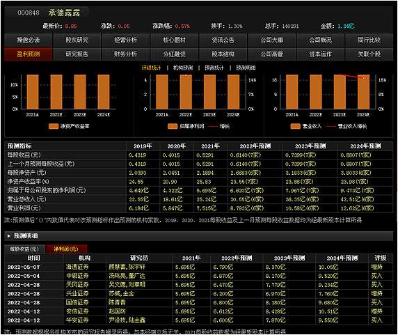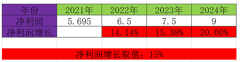 承德露露(000848):每股净资产 2.19元,每股净利润 0.54元,历史净利润年均增长 17.54%,预估未来三年净利润年均增长 18.48%,更多数据见:承德露露000848核心经营数据 承德露露的当前股价 8.69元,市盈率 15.77,未来三年的估值假设和预期收益率如下:15倍PE,预期收益率 55.02%;20倍PE,预期收益率 106.7%;25倍PE,预期收益率 158.37%;30倍PE,预期收益率 210.05%。 $承德露露(SZ000848)$ 这只股票关注了许久,之前也持有过一段时间,中间有些小赚,后来因为买别的股票就清仓了。 最近在读唐朝的《价值投资实战手册》颇有收获,尝试按照书中的逻辑对承德露露这只股票进行一个价格的估值,下边是演示过程(承德露露2021年年度报告): 1、首先企业符合3大前提 (1)利润为真,判断企业净利润是否变成现金回到公司账户,持续大于1是优秀企业的特征; 验证方法:现金流量表里的经营现金流净额/利润表里的净利润; 70页,6.88亿 69页,5.16亿 6.88/5.16=1.33>1,证明此企业比较优秀。 (2)利润可持续;结合东方财富里F10资料财务分析以往的数据和各个机构的盈利预测,对盈利预测取个中间值,对于预测差距较大的上下数据直接删掉。 (3)维持当前利润不需要资本投入或资本投入很少。 71页,公司固定资产投入910万,相对比例较低,且比上年减少。 以上3个条件都满足,进行下一项。 2、市场无风险收益率3%~4%之间。 3、无风险收益率的倒数作为当前市盈率的平均水平:100/4=25,100/3=33,取中间值(25+33)/2=29。 4、净利润含现金流量低于1,市盈率打8折,6.88/5.16=1.33>1,不需要打折。 5、利润增长为15%,利润收入为5.595亿元。 6、三年后估值:三年后市值=三年后合理市盈率*三年后净利润=29*5.595*1.15*1.15*1.15=246.77亿元。 7、买点:三年后合理估值的50%就是理想买点=246.77*50%=123.4亿元。 总股本:10.76亿股,目前价格8.85, 市值=总股本*股票价格=10.76*8.85=95.226亿元<123.4亿元,符合买入条件。 123.4/10.76=11.47元,在股本不变的情况下,股票价格低于11.47元就可以买入。 8、卖点:当前市盈率>50;或者市值超过三年后合理估值上限的150%卖出,以先到者为准。 对三年后合理估值上限的150%进行计算: 三年后合理估值的上限市盈率取33倍计算=33*5.595*1.15*1.15*1.15*150%=421.21。 421.21/10.76=39.146元。 股票价格达到39元每股。或者市盈率到达50倍卖出,以先到者为准。 作者:蚂蚁撼象原文链接:https://xueqiu.com/1339009132/222336707 转载请注明:www.51xianjinliu.com » 承德露露的买入价格 喜欢 (0)or分享 (0)