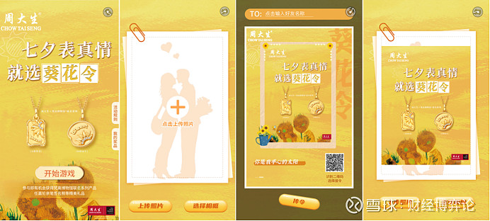 周大生(002867):每股净资产 5.28元,每股净利润 1.12元,历史净利润年均增长 17.68%,预估未来三年净利润年均增长 17.36%,更多数据见:周大生002867核心经营数据 周大生的当前股价 13.67元,市盈率 11.71,未来三年的估值假设和预期收益率如下:15倍PE,预期收益率 32.44%;20倍PE,预期收益率 76.58%;25倍PE,预期收益率 120.73%;30倍PE,预期收益率 164.87%。 蕴含中国传统文化底蕴的七夕情人节即将到来,在这个中国最具浪漫色彩的传统节日,比起玫瑰巧克力,象征“忠诚、热烈、一生挚爱”的向日葵更是让人无法拒绝的礼物。周大生珠宝特推出梵高博物馆联名等多款24K金镶钻向日葵链牌,更是为情侣倾情打造“七夕表真情,就选葵花令”的趣味互动活动,充分理解当下年轻人追求新奇的心理,创造符合当下年轻人特立独行的示爱体验。 “葵花令”灵感来源于周大生与梵高博物馆联名七夕新品24K金镶钻向日葵链牌“向阳而生”、“无限热爱”链牌。产品以梵高名画《向日葵》为设计元素,以不规则的调色盘塑形,生动还原艺术的氛围感,并将勃勃生机的向日葵采用喷砂工艺和光金效果立体呈现,五颗星钻于心点睛,光芒一瞬盛放,演绎出对生命的烈火激情,也表达着情侣间炙热的爱意。由于产品外形酷似古代令牌,故叫“葵花令”。以“葵花令”链牌作为七夕礼物,赠予另一半爱的特权金牌,许下一份爱的最高承诺,无疑是七夕最特别的心意。 “葵花令”又像传统对诗游戏“飞花令”,“中式情人节”以中国传统文化作为切入点,极具东方特色,相比较西方表达爱意的方式,“葵花令” 独具本土特色仪式感,更贴合七夕这一营销节点,非常浪漫。周大生专为七夕情侣打造的“葵花令”趣味互动H5便以“七七夕表真情,就选葵花令”为主题。2022年7月23日至8月7日,进入周大生珠宝微信公众号发布的H5“葵花令”游戏,点击“开始游戏”即可选择相框拍照或上传照片,上传照片之后即可生成七夕专属葵花令,点击“传令”分享给心爱的TA,当TA接受到你分享的“葵花令”点击“接令”,双方即完成了传令、接令的甜蜜互动,能够同时获得一次抽奖机会,有机会获得周大生与梵高博物馆联名系列新款吊坠、周大生代言人任嘉伦周边、以及精美饰品和优惠券等超级福利。除此之外,参与周大生官方微博、抖音、小红书#七夕表真情就选葵花令#话题活动还能参与抽奖,获得周大生与梵高博物馆联名系列新款吊坠和周大生品牌代言人任嘉伦周边等福利。 以“葵花令”传递真挚爱意,出其不意的七夕限定浪漫,让情侣们体验不一样的节日。令人惊喜的是为营造节日浪漫氛围,周大生珠宝在线下门店打造专属七夕的向日葵花墙,提供了更为沉浸化、差异化的七夕示爱体验,满足年轻消费者仪式感、个性化的诉求。活动期间只要在向日葵宣誓区许下“我这一生都将爱你,忠诚于你”的爱情诺言,让向日葵见证你与TA之间浪漫的爱,参与趣味指令互动,不仅能够创造专属于你们的甜蜜记忆,共赴一场独一无二的浪漫之旅,还可参与向日葵惊喜抽奖获得惊喜好礼。 对于生活需要仪式感的年轻人而言,说“我爱你”的方式纵然有百般套路,也不可或缺一份真心。在这个浪漫的节日里,周大生珠宝打造的“葵花令”活动,希望所有情侣们可以在活动中放肆表达爱、收获爱、感受爱、享受爱。 作者:财经博弈论原文链接:https://xueqiu.com/5573807036/226699866 转载请注明:www.51xianjinliu.com » 七夕表真情周大生珠宝发起葵花令甜蜜互动活动 喜欢 (0)or分享 (0)