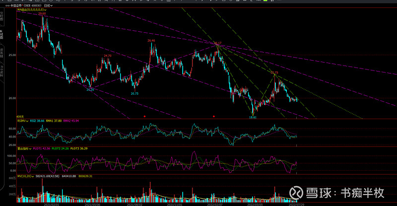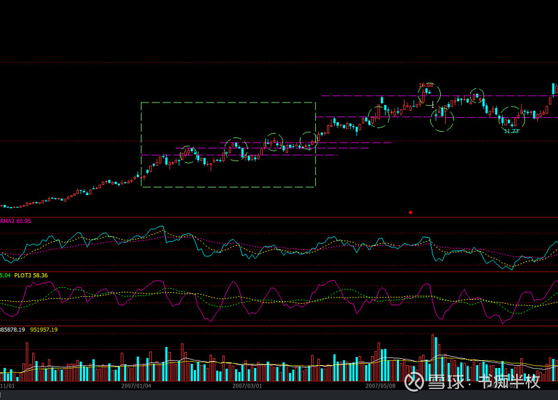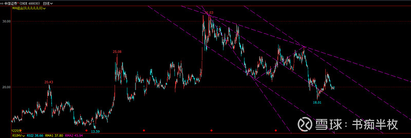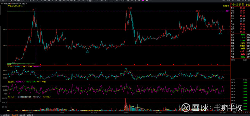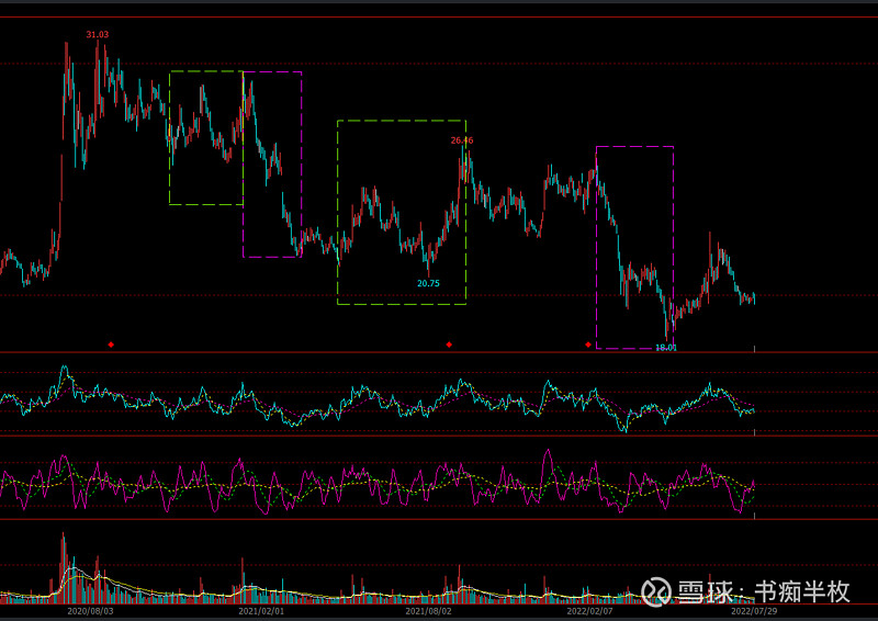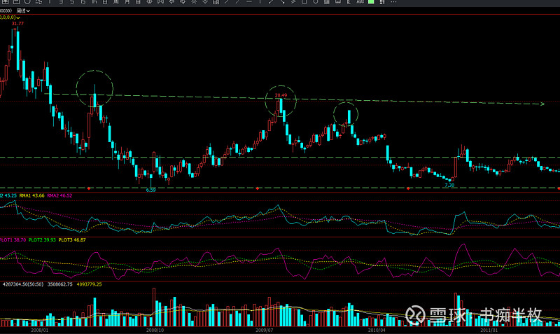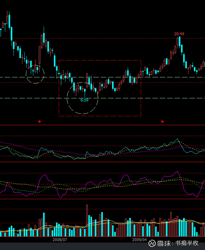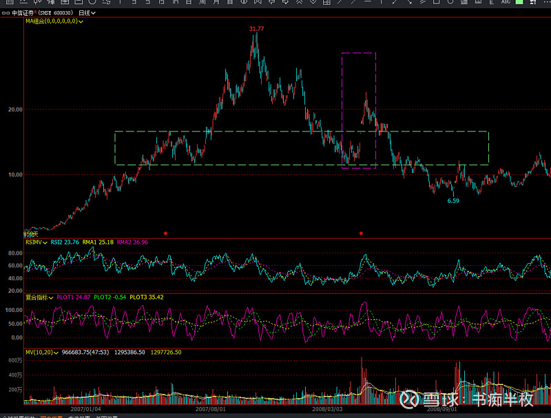 中信证券(600030):每股净资产 15.35元,每股净利润 1.77元,历史净利润年均增长 28.85%,预估未来三年净利润年均增长 16.06%,更多数据见:中信证券600030核心经营数据 中信证券的当前股价 19.09元,市盈率 12.21,未来三年的估值假设和预期收益率如下:15倍PE,预期收益率 117.42%;20倍PE,预期收益率 189.9%;25倍PE,预期收益率 262.37%;30倍PE,预期收益率 334.85%。 本文无结论,无结果,无定论。指望速成,可以跳过。 我学了技术分析很久,我对很多走势有些理解不能,或许我对自己的要求过高,或许我的理解力太差,无论如何,我希望慢慢梳理,好好从头学起。 本文标的股票随机选择典型的大型的股票。 本篇主要写中信证券, 先说大背景,上图是周线,周线中,绿色方框约为五浪上涨形态,这种走势是相对明确的。这个五浪上涨的高点,紫红色水平线标出。此后所有的走势没有 超过该范围。 那么,对于波浪来说,先不考虑更复杂的情况和数浪,就这里而言,他绿色方框以后的走势都算是这个绿色防控的第二浪调整。至少到目前还没有办法证明,新趋势已经开始了。 也就是说,绿色方框本身是五浪上涨的趋势上涨,绿色方框以后的走势是,调整型下跌。调整型走势是对应趋势上涨而言的。 没有趋势上涨,也就没有调整下跌。这是个相对概念。 也就是说,07年下半年以后的走势,全部是调整。 除非,将来的走势,有一天,能够证明上图蓝色方框里面的小一个级别的五浪走势是第三浪的第一浪。那么,这票或许回来空间极具想象力。如果是这种情况,蓝色方框只是第三浪的起始浪,那么,未来,目前的高点少于未来完整的五浪结构的三分之一,一般而言,或许只可能占了四分之一到五分之一。这个结论没什么用,因为未来很远。 什么是趋势浪?波浪理论种,趋势浪是五浪结构,调整浪是三浪结构,更复杂的情况暂时不提。 一般来讲,这个就是五浪结构,这个大的方框是个大五浪,小方框,是个三个小五浪结构。 这个大方框满足,一四浪不重叠,三浪不为最短。三个驱动浪都是五浪结构的特征。所以他是一个大的五浪结构的主升浪。 个别地方可能没有办法确认他的准确五浪结构的内在细节,在这张图,至少,我还没有去细究,我谨慎的用五浪特征去猜测的,因为非三即五。但是猜测也要满足波浪的特征。不能瞎猜。. 这里是上图中的两个调整形态。他不满足上述的五浪 特征的描述,一次他是三浪结构。这两个三浪结构在大致的级别上相当。 趋势上涨中,最重要的介入位置,就是调整, 通过调整来判断将来的走势,估算高度。通过调整来确定上涨可能性。 比如说,如果他只是个调整,且调整幅度是健康的,不超过66%的回撤幅度。那么,他就是健康的调整,然后找工具确认调整结束。找点位买进,做未来的大趋势,是一般通行的方法。 第一种做法,调整结束的位置,也就是回调的低点,比如说上图方框中的下沿位置,他的风险系数主要是跌穿了不止损。以及找不到合理的止损位。但是一般而言方框的下沿,调整的末端,是较为良好的买入区域,因为总体风险系数较小,买入成本较低,止损空间小。 第二种做法,也就是,方框的上沿区域也就是突破的位置,这个是最多人在研究和做的,也就是海龟交易法的核心内容,突破前高做多,就单看这张图,做法没毛病,因为,突破后向上的空间完全打开了,远期走势极具想象力。突破的做法需要严格止损,而且,止损一般比较大,还可能反复止损,这是突破做法的缺陷,不止损的突破战法,会比较惨。还有人是用均线的缠绕之后的向上开口扩张,还有人使用的类似布林通道,等。他们都是在做同样的事情。忽略调整,捕捉未来的趋势。 突破的难点是这里,紫红色的水平线段都是根据线段左侧高点来画的,一般是第一个高点,圆圈是突破区域重点标出。可以看到突破手法,在这里面会被反复打脸。或许左侧绿色方框可以看作是一个楔型,可是那也是走了两三个高点才能说他是楔型的,在当时,很难和顶部反转,或者大型调整的开始相甄别出来,这是最难的地方,而且,这个走势,一般来说代表偏空,可是看他后面的走势涨的很好。所以,该怎么看这里偏空预期?左侧提前空?左侧提前进的都在山岗上吹风。 右侧,还有几个向下的假突破,这是行情的复杂性。 这就是楔型,一个相对预期偏空的走势,可是有时候他也是在上涨早期的,我对这种走势,困惑了几年,如果严格来说,还要找他内在的结构的波浪特征,这个太复杂了,我估计没能力解释清楚。 上图这个方框里面是个expanded flat走势,他的迷惑性很大,他的高点突破了前高,他的低点,突破了前低,可是他只是个调整,意味着他仍然是上涨趋势中的中间位置。 反倒是,向下突破失败构成了一个绝佳的买点。 这是个复杂的expanded flat或者 flat。他的高点轻度超过了前高。低点轻度超过了前低。他的买点和此后的长期横盘会让人很困惑。这是难点,耐心,和信心,有时候真的很重要。 这是个众所周知的头肩顶形态,不过我不能接受生搬硬套,尤其在学了波浪理论之后,他其实是有第五浪的上涨,或者第五浪的第五浪上涨的一个摆臂,和下跌a浪,b浪组成的。确认跌穿颈线,差不多就是c浪位置了。 从趋势上来说,他其实至少意味着,超大型的abc调整正在形成,这个得看此前的五浪是否完整,这个超大型的abc调整是不是和此前的趋势上涨级别相对称。级别相当,这个很重要。有a,有b,那么就有c。而且, c的级