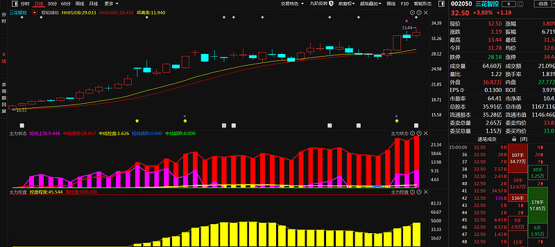 中信证券(600030):每股净资产 15.35元,每股净利润 1.77元,历史净利润年均增长 28.85%,预估未来三年净利润年均增长 16.06%,更多数据见:中信证券600030核心经营数据 中信证券的当前股价 19.09元,市盈率 12.21,未来三年的估值假设和预期收益率如下:15倍PE,预期收益率 117.42%;20倍PE,预期收益率 189.9%;25倍PE,预期收益率 262.37%;30倍PE,预期收益率 334.85%。 A股主升浪行情就此启动,你还在空仓?选股大家都知道很重要 但是总是选不好股票,大家不妨多学习怎么判断主力资金的意图,才能够更好的跟着市场的主流资金操作,顺势而为! 首先这里先给大家介绍怎么去简单判断主力资金的情况,大家仔细浏览完之后,可以对照学习下 通过主力状态数据:红色——主力, 紫色——游资,蓝色——散户,黄色——主力控盘度 三花智控 公司已完成三花汽零收购事项,17Q3开始并表,三花汽零专注于新能源车空调及热管理产品的研发,电子水泵等多项产品已拥有业内领先的技术实力和产品质量;是沃尔沃、蔚蓝新能源、宝马新能源热管理部件的供货商 目前主力状态显示是:有主力资金 且主力资金在控盘攀升 拉升阶段,游资也在介入 短期涨的幅度过多了些,留意短线回调的需求 蔚蓝锂芯 公司是国内LED芯片主要供应商之一,LED外延及芯片产能居国内同行业”前三强”。公司是LED外延芯片行业技术水平、营运效率、盈利最好的企业之一,公司LED芯片凭借稳定的性能和高性价比获得市场的高度认可 目前主力状态显示是:无主力 无游资,留意套牢盘什么时候消化,以及资金的介入时刻 海象新材 公司是目前国内领先的PVC地板生产及出口商之一,主要从事PVC地板的研发、生产和销售。主要用于建筑物的室内地面装饰,产品功能与传统木地板、瓷砖等地面装饰材料相似。 目前主力状态显示是:游资跑路了 中信证券 成立于1995年10月,2003年在上海证券交易所挂牌上市交易,2011年在香港联合交易所挂牌上市交易,是中国第一家A+H股上市的证券公司。 目前主力状态显示是:无主力 无游资 有时候股票的上涨不管是因为消息面还是技术面还是基本面的情况,但是股价上涨的本质都是盘中能够发现资金介入的异动,如果你判断不出来,不妨盘中可以通过主力状态去判断 只要选好股通过这个方法是很容易能够实现低进高出的。不会判断买卖点的一定要学会这个方法,还有任何疑问都可以与我探讨 观点基于软件数据分析,仅供学习参考,不构成投资建议,入市有风险,投资须谨慎 作者:归一世界原文链接:https://xueqiu.com/1039016020/226796965 转载请注明:www.51xianjinliu.com » 三花智控 蔚蓝锂芯 海象新材 中信证券 股市中的主力指的是什么? 喜欢 (0)or分享 (0)