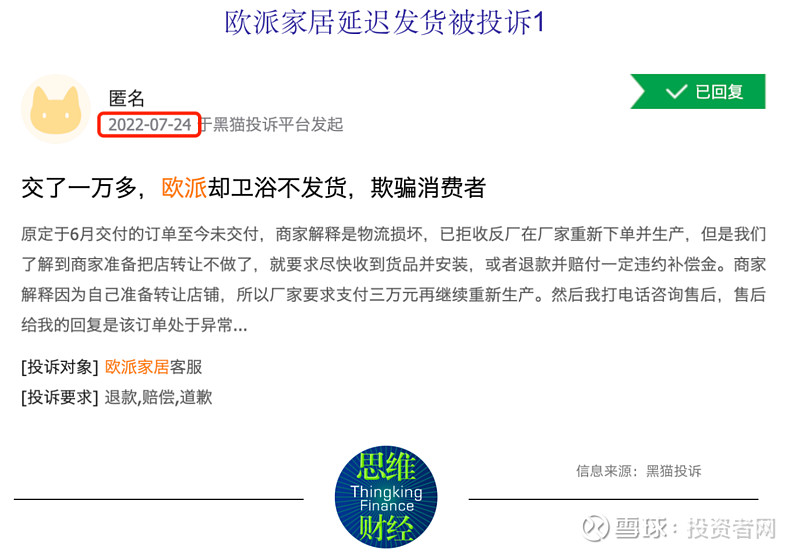 欧派家居(603833):每股净资产 23.65元,每股净利润 4.4元,历史净利润年均增长 41.77%,预估未来三年净利润年均增长 16.72%,更多数据见:欧派家居603833核心经营数据 欧派家居的当前股价 114.09元,市盈率 25.98,未来三年的估值假设和预期收益率如下:15倍PE,预期收益率 -8.01%;20倍PE,预期收益率 22.65%;25倍PE,预期收益率 53.31%;30倍PE,预期收益率 83.98%。 《投资者网》张斯文 编辑 胡珊 8月10日晚间,广东欧派家居集团(下称欧派家居,603833.SH)发布2022年上半年业绩预告,公司营业总收入约97亿元,同比增长约18%;同期净利润约10亿元,同比增长约0.6%。其中今年二季度单季实现营业收入约56亿元,同比增长约13%;实现归属于上市公司股东的净利润约8亿元,同比下降约0.5%。 市场对此反应较为冷淡。8月11日收盘,欧派家居股价涨幅为0.78%。当天,A股三大指数集体走强,沪指涨1.6%,深证成指涨2.05%,创业板指涨2.37%。 对于这次中期业绩不甚理想的情况,市场似乎早有预兆。近一个月,这家公司股价历了一轮大跌。据Wind统计,从今年7月1日到8月11日收盘,欧派家居股价跌幅近22%。 十年营收翻10倍 欧派家居一直被视作国内家居行业领军企业。成立近三十年来,凭借在橱柜中市占率约9%、在衣柜及系统柜中的市占率7%,已经成为家居行业中的绝对龙头。 而2021年,我国定制橱柜行业和定制衣柜及系统柜行业的前五名合计的市占率均为18%左右,也就是说,欧派家居抵得上后四家公司市占率的总和。 浙商证券据此测算,远期欧派出厂客单值可达4.33万元,15%市占率情形下客户数可达345万户,对应收入空间1500亿。 尤其在近十年,欧派家居的营收和净利润暴增近10倍,从2011年的22亿元到2021年已增长至204亿元,复合年均增长率24.86%。 同期,归母净利从0.8亿元到2021年飙涨至近27亿元,复合年均增长率41.77%。 公司业绩迎来了大踏步发展。这一切都要从1994年姚良松在广州创立了欧派橱柜说起。创立之初,姚良松是国内第一个将欧洲的“整体厨房”概念引入中国,这一做法开创了国内橱柜定制的先河,欧派从众多的家居企业中快速崛起。 迄今为止,中国家居行业的革新其实从未停止过,这背后是中国中产阶层以及高收入群体的不断壮大,他们对生活品质有着更高要求,这些都促使欧派家居进入第二次变革时代。 借用姚良松的话说,“欧派家居的大家居已经逐渐探寻出一条属于自己的发展之路。” 从依靠厨柜起家,到2003年逐渐拓展卫浴、2006年涉足衣柜、2010年进军木门,在定制核心品类顺利实现融合销售后,欧派家居分别在2018年开始向整装领域、2019年向软体配套领域、2021年在主辅领域全面进军。自此,欧派家居已经成为致力于为消费者提供真正的一站式解决方案。 而董事长姚良松也已从那个“四处流浪躲债”的少年,成功蜕变为家居行业首富。据胡润研究院此前发布《2022胡润全球富豪榜》显示,姚良松以590亿的财富在家居行业排名第一,成为全球家具行业首富。 对此,浙商证券认为,欧派在每一轮地产下行周期的关键节点,总能做出重要的增长驱动换挡措施,保障自身核心财务数据持续取得优异表现。 营销手段高超 欧派利用广告营销不断巩固和提高了品牌影响力。根据新京报联合千龙智库发布的《2020 中国家居TOP 品牌舆情报告》显示,在品牌传播、价值影响、口碑评价、消费诉求以及总值五项维度上,欧派家居均遥遥领先于第二名尚品宅品。 从公司过往对于营销手段来看,2005 年,欧派聘请蒋雯丽作为代言人,在央视做广告,开业界先河。 2010 年,欧派以数千万元成功竞到央视一套《新闻联播》后 7.5 秒的黄金时段广告。 2020年,在爆火电视剧《安家》带动下,欧派作为合作品牌,获得观众广泛认可。种种举措,均领先于业内对手。 在消费升级大背景下,消费者对家具的质量、服务、品牌、环保性等要求将越来越高,消费理念转向品牌消费,这对大品牌是一种利好。 内外部管理水平有待完善 欧派家居虽然对外扩张一直较为顺利,已经坐享品牌升级的红利,但内外部管理水平有待改善。 一则连续延期交货的报道,也从侧面反映出欧派家居上半年的管理能力存在一定问题。 8月5日,海报新闻发布了一篇名为《北京欧派总部直营店连续3次交货延期》的报道,报道称:“一位消费者在今年1月份就向欧派家居预定了柜子,4月份付了全款,前后一共花费了将近10万块钱,但是欧派家居却以各种理由一拖再拖,迟迟没有解决安装”的问题。 而在黑猫投诉上,有关欧派家居不发货的投诉近期已有多起。一位匿名消费者在黑猫平台上表示:“原定于6月交付的订单至今未交付,商家解释是物流损坏,已拒收返厂在厂家重新下单并生产,但是我们了解到商家准备把店转让不做了。” 而另一位消费者表示:“今年1月份按照设计预算支付全款,4月份签订合同,确认图纸复尺,家电早就买好了并确定尺寸,但是所有家电空间全部留小了,抽屉忘记发货,安装过程沟通不畅,阳台柜中间隔板未居中,挖孔特别丑,今天说板子没到,明天说物流慢,后天说喷粉工艺麻烦,各种拖拉”。 其实,欧派家居的“内部矛盾”从去年年底便开始初露端倪。去年12月,多家媒体发布报道称欧派家居涉嫌偷税漏税。事发于某短视频平台,网名为“原安阳欧派老韩”的用户实名举报欧派家居税务问题。 不仅如此,据《华夏时报》和《财经天下》报道,除了老韩以外,还有多名经销商称,欧派家具有