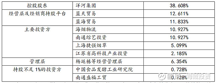 洋河股份(002304):每股净资产 29.81元,每股净利润 5.01元,历史净利润年均增长 36.15%,预估未来三年净利润年均增长 22.54%,更多数据见:洋河股份002304核心经营数据 洋河股份的当前股价 145.02元,市盈率 25.01,未来三年的估值假设和预期收益率如下:15倍PE,预期收益率 -4.57%;20倍PE,预期收益率 27.24%;25倍PE,预期收益率 59.05%;30倍PE,预期收益率 90.86%。 股权结构代表了公司的利益分配结构,股权结构分析是公司分析重要的一环,这家公司是谁在运营,他与公司的利益关系有多大。这家公司的经营成果最终由谁分享。这些对于拥有一家公司(的一部分)而言,是一个不能回避且非常重要的问题。本文对洋河股份的股权进行了初步的分析,有助于帮助投资者正确认识企业。 1、上市前洋河的股权结构 2002年12月,公司成立,股份总数6800万股。 注册资本6800万,全体股东出资10372万元,以1:0.65561的比例折股,股份总数6800万股。每股面值1元。其中洋河集团以实物资产出资5226.41万,货币资产出资73.59万,占总股份数51.099%。 洋河酒厂股份有限公司的成立,实质上是洋河集团出让洋河酒厂股权,募集发展所需的资金,同时改革所有制,初步奠定了洋河酒厂三方分立的股权结构。洋河酒厂的所有权由洋河集团+产业上下游企业+公司经营管理层共同拥有。 2006年3月,增资扩股,股份总数9000万股。 公司增加注册资本2200w元,宿迁蓝天贸易以每股2.39元认购1135万股,蓝海贸易以相同价格认购1065万股。公司股份总数为9000万股。 蓝天贸易和蓝海贸易是洋河经营层和经销商的持股平台,保证了公司主要经营层和经销商与公司利益一致。17年蓝天贸易与蓝海贸易合并为洋河蓝色同盟,蓝色同盟和其前身从06年以来,稳定持有洋河股份20%左右的股权。 2007年3月,资本公积转增,股份总数13500万股。 资本公积转增股本,每十股转增5股,公司注册资本增加至13500万元,股份总数为13500万股。 2008年1月,资本公积转增,未分配利润送股,股份总数为40500 万股。 公司以资本公积转增股本,每 10 股转增 1.5 股,同时以未分配利润向全体股东送股,每10股送18.5股, 公司注册资本增加至40,500万元,股份总数为40500 万股。 02年成立与08年上市前洋河的股权结构对比 2、上市融资 2009年11月,首次公开发行4500万股,发行价格60元/股,募集资金27亿,至此公司总股份45000万股,发行股份数占总股本的10%。 3、上市后 2011年4月,资本公积每10股转增10股。转增后股份总数为90000万股。 2012年5月,资本公积每10股转增2股。转增后股份总数为108000万股。 2013年5月,回购358万股并注销,股份总数为107642股。 2015年5月,资本公积每10股转增4股,转增后股份总数为150698.8万股。 2021年5月,股份总数为150698.8万股。 从09年到21年洋河股份没有再向市场进行股权融资。 4、洋河主要股东分析 洋河上市前的主要股东主要有以下(下表所示)法人和自然人。 其中洋河集团为控股股东,蓝天贸易及蓝海贸易为经营层及经销商的持股平台,海烟物流、南通综艺投资、上海捷强烟草、江苏省高科技产业投资为主要投资方。 在09上市之后到21年,洋河集团作为控股股东,股权一直保持稳定,且维持控股地位。主要投资方中,与白酒行业相关性不大的南通综艺投资和江苏省高科技产业投资逐步退出,15年江苏省高科技产业投资退出10大无限售股东,18年南通综艺投资退出10大无限售股东。蓝天贸易及蓝海贸易在17年合并为洋河蓝色同盟。 结论: (1)上市前洋河股份的股东主要包括洋河集团(控股),洋河经营层和股东共同的持股平台蓝天贸易、蓝海贸易,以及几家主要的投资方。 (2)上市后,洋河集团、蓝色同盟、与业务相关的主要投资方(海烟物流、捷强)等持股比例稳定,几乎没有变动。与公司业务不相关的投资方南通综艺投资、江苏高科技产业投资等逐步退出。 (3)从06到21年,洋河股份形成了由洋河集团控股+主要投资方+洋河蓝色同盟共同持股的持股局面,三方约占洋河股份70%的股权。 #白酒# #洋河股份# #价值投资# $洋河股份(SZ002304)$ $贵州茅台(SH600519)$ $五粮液(SZ000858)$ 作者:海贼投资原文链接:https://xueqiu.com/4582586436/230502668 转载请注明:www.51xianjinliu.com » 洋河股份的股权结构 喜欢 (0)or分享 (0)