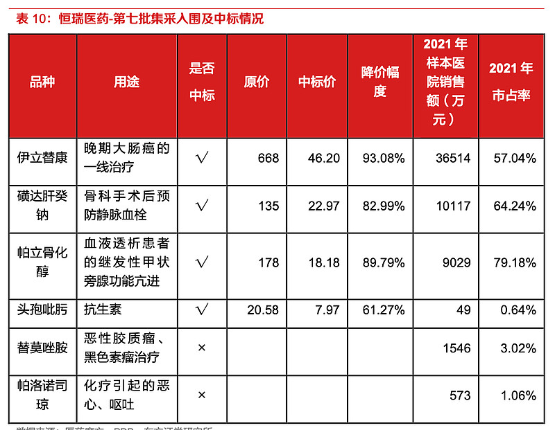 恒瑞医药(600276):每股净资产 5.65元,每股净利润 0.71元,历史净利润年均增长 23.13%,预估未来三年净利润年均增长 9.96%,更多数据见:恒瑞医药600276核心经营数据 恒瑞医药的当前股价 35.1元,市盈率 56.23,未来三年的估值假设和预期收益率如下:15倍PE,预期收益率 -59.66%;20倍PE,预期收益率 -46.21%;25倍PE,预期收益率 -32.76%;30倍PE,预期收益率 -19.32%。 恒瑞医药(600276):每股净资产 5.65元,每股净利润 0.71元,历史净利润年均增长 23.13%,预估未来三年净利润年均增长 9.96%,更多数据见:恒瑞医药600276核心经营数据 恒瑞医药的当前股价 35.1元,市盈率 56.23,未来三年的估值假设和预期收益率如下:15倍PE,预期收益率 -59.66%;20倍PE,预期收益率 -46.21%;25倍PE,预期收益率 -32.76%;30倍PE,预期收益率 -19.32%。 国内创新药 国内创新药申请与审批情况,NDA 的管线要少很多,但是 获批上市的新药近年来呈现增长的趋势。2010 年至 2020 年 NMPA 收到了 101 个创新药的 NDA 申请,其中已有 58 个创新药获得批准,但是真正的 FIC 药物很少,绝大多数属于 me-too 类。综合比较下来恒瑞还是不错。 集采 7批次集采降价幅度 恒瑞中标情况 集采后的销量与收入情况(白蛋白紫杉醇) 恒瑞医药创新药的情况 创新药板块业绩快速增长,仿创转型正当时。根据样本医院数据,近年来公司的创新药业绩增长, 并在进入医保后快速地爬坡。公司仿创转型也随着创新药的放量不断推进,根据 21 年中报的情况, 公司创新药的销售收入约 52 亿元,占整体销售收入的比重为 39%。整体来看,预计在 22 年之后, 公司创新药销售收入有望超过一半,成为以创新药销售为主的 Big pharma。还有多款已上市创新药未放量,除了已经 进医保一段时间并大规模开始销售的创新药,近两年上市的羟乙磺酸达尔西利、瑞维鲁胺、海曲 泊帕乙醇胺和脯氨酸恒格列净等品种,均为国内同适应症下首个自主研发产品。这些产品还处于 放量早期,在进入医保后有望为公司中短期业绩增长提供强大动力。 国际拓展 目前来看,海外营业收入占比尚小,发展前景很大。2020 年恒瑞医药海外营业收入达 7.58 亿元 人民币,增长率达 20%,占全年营收的比例为 2.74%。2021 年海外收入 6.17 亿元,占全年营收 的比例为 2.39%,有所下降。但长期来看,随着恒瑞国际化战略的持续推进,海外的市场将不断 拓展,发展前景可以期待。 仿制药海外注册申请不断推进中。截至 2021 年底,恒瑞的产品已进入超过 40 个国家,已在欧美 日获得包括注射剂、口服制剂和吸入性麻醉剂在内的 21 个注册批件,另有 1 个制剂产品在美国 获得临时性批准。2021 年恒瑞向美国 FDA 递交了 1 个原料药的注册申请,向欧洲和美国递交了 共计 6 个制剂上市申请。 肿瘤新发病数据 2020年全球新发癌症病例1929万例, 中国新发癌症457万人,占全球23.7%,由于中国是世界第一人口大国,癌症新发人数远超世界其他国家。 癌症新发人数前十的国家分别是:中国457万,美国228万,印度132万,日本103万,德国63万,巴西59万,俄罗斯59万,法国47万,英国46万,意大利42万。 按照人口发病率(每万人):中国32.4,美国68.7,印度9.5,日本81.7,德国75.8,巴西27.7.俄罗斯41,法国69.8,英国68.6,意大利70.6 小结: 1)第七批集采 会影响未来Q4 23Q1,大概金额在4亿左右 2)创新药持续放量 22年创新占比 50%+ 3)海外收入持续拓展,仿制药、创新药都在持续推进 4)医药市场规模还在持续增加。 5)2022恒瑞筑底之年。 $恒瑞医药(SH600276)$ $药明康德(SH603259)$ #2022国庆见闻# #三季度收官,你赚钱了吗# 作者:singlespark原文链接:https://xueqiu.com/1922452942/232102278 转载请注明:www.51xianjinliu.com » 恒瑞医药 喜欢 (0)or分享 (0)