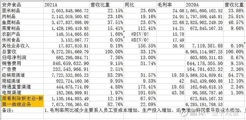 安井食品(603345):每股净资产 37.54元,每股净利润 2.84元,历史净利润年均增长 25.31%,预估未来三年净利润年均增长 34.57%,更多数据见:安井食品603345核心经营数据 安井食品的当前股价 136.02元,市盈率 45.44,未来三年的估值假设和预期收益率如下:15倍PE,预期收益率 -23.68%;20倍PE,预期收益率 1.76%;25倍PE,预期收益率 27.2%;30倍PE,预期收益率 52.65%。 免责声明:本文仅是个人投资过程中的思考和阶段性梳理,本人只是一个普通小散,文章观点不一定正确,投资水平也很一般,文章中涉及的股票或者基金均可能有大幅下跌的风险,请保持独立思考,市场有风险,投资需谨慎,文章观点仅作交流之用,不构成任何投资建议,读者朋友请勿据此操作! 我已经把持仓的企业都写过了,最近由于新关注了速冻食品及预制菜龙头:安井食品,虽然还没有买入,截止2022年10月15日尚没有持仓,分析文章可以先写一写,后面可能先买一个观察仓位,之前已经分别写过我的持仓股:腾讯控股、梦百合、福寿园、弘亚数控、浙江美大、开立医疗、雍禾医疗、时代天使,不管对错,自己能够把思考过程记录下来,就是一种投资上的进步,输出内容的过程也是加深自己对企业理解的过程。 我们先看下安井食品的主营业务: 我们可以看到,安井食品各业务板块分布还是比较均衡的,按照增长潜力可以分为两类业务:第一增长曲线:速冻火锅料制品(鱼糜制品、肉制品)+速冻面米制品 第二增长曲线:预制菜(菜肴制品:冻品先生+安井小厨+新宏业小龙虾+新柳伍小龙虾) 这两个板块是主要收入来源,其余就是一些其他收入,比如原材料、包装物、废料等出售收入,还有新宏业+新柳伍并表带来的一些非小龙虾业务。 2021年安井食品中新宏业是8月份开始并表,新柳伍尚未并表,第一增长曲线业务收入占比82.76%,同比增长22.09%,第二增长曲线(仅考虑冻品先生+安井小厨,剔除新宏业并表)收入占比12.19%,同比增长67.97%,再看下2022H1的情况: 2022H1安井食品中新宏业完全并表(持股90%),新柳伍尚未并表,第一增长曲线业务收入占比降低到了70.86%,因为YQ影响,同比仅增长10.13%,第二增长曲线(仅考虑冻品先生+安井小厨,剔除新宏业并表)收入占比提升到了15.48%,同比增长67.58%,可以看到即使不考虑新宏业和新柳伍的小龙虾菜肴业务并表,安井食品的第二增长曲线预制菜业务凭借高增长,收入占比也在持续提升,目前安井食品的预制菜业务经营战略是:冻品先生OEM贴牌+安井小厨自产+并购(新宏业、新柳伍小龙虾)第一增长曲线:速冻火锅料制品(鱼糜制品、肉制品)+速冻面米制品: 在中国速冻食品市场,火锅料和速冻面米是份额最大的两个品类,2020年速冻面米制品占比52.4%, 速冻火锅料占比 33.3%; 速冻火锅料市场空间及竞争格局: 2021年中国速冻火锅料市场520亿,预估我国火锅餐饮市场2021-2025年复合增速为13.0%, 那么预估2021-2025年中国速冻火锅料市场增速为10%-15%;速冻火锅料市场竞争格局方面:火锅料由于门槛低,主要品牌有安井、海霸王、海欣、惠发等,市场集中度仍较低CR5约20%,安井食品作为速冻火锅料市场份额排名第一,份额为9%; 注:内容来自平安证券研报 安井食品作为行业龙头市场份额有望持续提升,考虑速冻火锅料市场整体规模保持10%-15%增速,考虑安井食品在速冻火锅料市场份额提升,预估安井食品速冻火锅料业务保持16%-18%增速; 注:图片资料来源于平安证券研报 速冻面米市场空间及竞争格局: 2021年我国速冻面米市场782亿元,预计2025年突破千亿,复合增速6.3%竞争格局:速冻面米市场集中度较高, 目前三全食品、思念、湾仔码头三分天下,CR3达64% ; 注:内容来自平安证券研报 注:图片资料来源于平安证券研报 目前安井食品主要避开传统汤圆、饺子等成熟市场,主要发力手抓饼、烧麦、红糖馒头、发糕等新兴面点市场实现错位竞争,新兴面点由于外观新颖并且消费场景更加广泛,可以当早饭、下午茶点、夜宵等,尤其是现在年轻消费者生活节奏快,对吃早饭便捷性要求很高,晚上又容易饿,早饭或者夜宵来个手抓饼或者烧麦就非常不错。 安井食品的面米制品2022H1实现同比增长23.86%,2021年实现同比增长23.6%,可以看出安井食品在面米市场的这一经营战略还是非常高明的,未来有望保持20%+增速;第二增长曲线:预制菜(菜肴制品:冻品先生+安井小厨+新宏业小龙虾+新柳伍小龙虾) 预制菜按食用方法,分为即配、即烹、即热、即食,囊括除初级农产品外的各种形态的食品。预制菜市场规模:不同研报的差异比较大,根据艾媒咨询数据: 2021年中国预制菜市场3459亿,同比增长 19.8%, 预计2026年预制菜市场达10720亿,预估复合增速25.4%; 注:内容来自艾媒咨询 这个数据口径偏乐观一些,不过中国预制菜市场未来保持20%+增速应该还是可以的,预制菜的市场需求主要在B端,中国预制菜B端需求占80%,C端占20%; 预制菜竞争格局: 中国餐饮市场非常分散,餐饮市场连锁化率在不断提高,21年中国餐饮市场连锁化率为18%,未来有望持续提升,在餐饮企业应用预制菜有如下优势,采用预制菜可以使得净利润增加7%:a.成本低:采用预制菜,后厨的面积可以缩小,相对于节省了店面租金和人工成本;b.出餐快:采用预制菜速度快,相对于提高了翻台率,尤其是外卖订单对出餐速度有很高的要求;c.品质统一:餐饮连锁企业想要复刻曲奇模式进行扩张,统一的口味就是一个非常重要的环节,采用预制菜就避免了不同店面口味不一样的