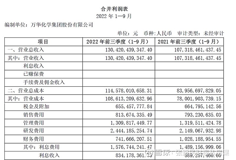 万华化学(600309):每股净资产 22.53元,每股净利润 7.85元,历史净利润年均增长 25.91%,预估未来三年净利润年均增长 4.68%,更多数据见:万华化学600309核心经营数据 万华化学的当前股价 82.41元,市盈率 13.83,未来三年的估值假设和预期收益率如下:15倍PE,预期收益率 63.9%;20倍PE,预期收益率 118.53%;25倍PE,预期收益率 173.16%;30倍PE,预期收益率 227.8%。 $万华化学(SH600309)$ 披露的三季报显示,今年前三季度,公司实现的营业收入达到1304.20亿元,同比增加近300亿元,增幅超过20%;归属于上市公司股东的净利润为136.08亿元,较去年同期减少59亿元,降幅超过30%。 业绩下滑,传递至二级市场上的是股价下跌。年内,公司股价累计下跌了接近20%,对应的市值蒸发了近550亿元。 两大问题,看透万华化学 第一个问题,万华化学增收减利; 第二个问题,突破卡脖子技术,能不能带来新的盈利增长点。 增收减利怎么回事? 核心问题就是企业的毛利率下降。 什么原因呢? 企业说了,原材料、燃料价格上涨,市场价格下降,那么这样的话,两头一挤,企业的毛利率下来了,其他费用还是正常要发生的 所以他销售费用、管理费用、研发费用、利息费用都是有所增长,但是不是特别大。 那么这个市场的变化,如果不能扭转的话,他未来的业务,在原有的惯性基础之上,盈利能力还是不会有特别大的改善的。 那么最近人家说了,我有一个突破卡脖子技术的这样一个东西,如果真是这样的话,完全有可能形成他的业务的增长点。 你是不是能够在产品的质量上,在量产化以及市场的迅速衔接上,能不能做出来,这还需要相当多的努力呢。 但是我注意到呢,这个企业的财务结构上有一些需要关注的地方。 购建固定资产、无形资产和其他长期资产支付现金规模,第一巨大,第二超过了他的同期经营活动的现金流量净额。 需要什么? 需要债务融资和其他融资来支撑,形成了什么呢?你看资产负债表就看出来了。 第一固定资产有所增加,增加的不太多;第二在建工程增加的巨大,两个加一起1000多亿。 不得了。如此高的固定资产和在建工程。如果未来还想获得像样的利润的话,必须有巨大的市场规模,必须有不错的毛利率,同时你的其他费用控制还得过得去。 企业现在已经形成的这种固定资产,在建工程和其他这些非流动经营资产,未来将接受市场的检验。 #G注经华学堂,获取更多企业财报信息# #视频读财报,投资大炼金# 作者:张新民财报私房课原文链接:https://xueqiu.com/7184917734/233671705 转载请注明:www.51xianjinliu.com » 三季报解读两大问题看透 万华化学 喜欢 (0)or分享 (0)
