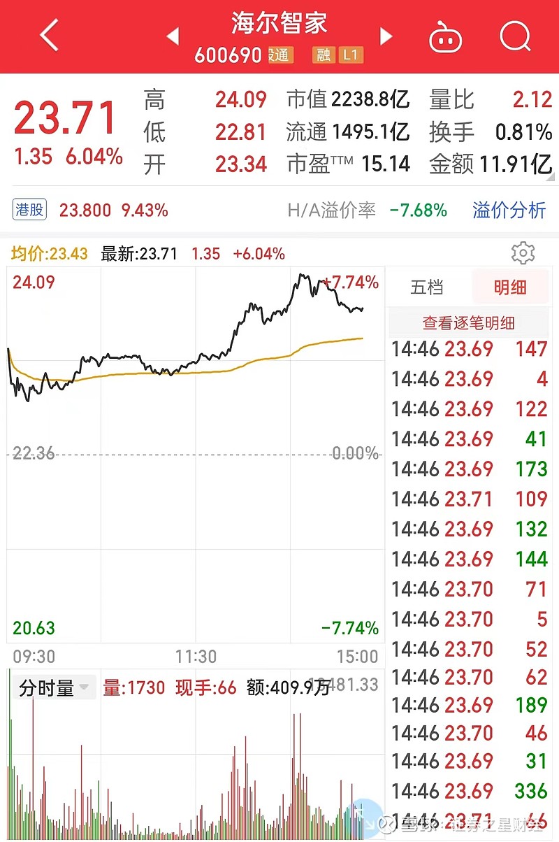 海尔智家(600690):每股净资产 9.7元,每股净利润 1.25元,历史净利润年均增长 28.41%,预估未来三年净利润年均增长 15.96%,更多数据见:海尔智家600690核心经营数据 海尔智家的当前股价 24.02元,市盈率 15.36,未来三年的估值假设和预期收益率如下:15倍PE,预期收益率 37.3%;20倍PE,预期收益率 83.06%;25倍PE,预期收益率 128.83%;30倍PE,预期收益率 174.59%。 11月11日,智慧家电领导者海尔智家大涨超6%。消息面上,今天晚上,双11迎来最后冲刺阶段。晚8点后,双11第二波正式开卖,“尾款人”们纷纷上线,“双十一”话题被顶上热搜。在这过程中,海尔智家火力全开,不断刷新各项销售数据记录。 双十一销售数据斐然,天猫开售3分钟破5亿 从京东的渠道来看,海尔智家一直稳居京东家电行业第一的宝座,从10月31号开始,已经连续11天霸占了所有品类的榜首。具体来说,海尔智家的冰箱,洗衣机,热水器都是互联网上的佼佼者。而用户不止认可海尔智家的产品,同样也认可海尔智家的服务。根据京东家电竞速榜家电服务口碑排行榜,海尔智家洗衣机,热水器,厨卫电器,电视多品类服务口碑第一。 再看看天猫,海尔智家在天猫热销冰箱、洗衣机、大容量电热水器等多个品类中排名第一。在冰箱品类前十名中,海尔智家占据了前三名。洗衣机类前十名中,海尔智家位列前三,不仅占据了第一名,而且在排行榜上也是数一数二。排行榜显示,海尔滚筒洗衣机能健康地除菌除螨,呵护穿衣健康;实现全变温大空间、阻氧、干湿分储的海尔风冷无霜冰箱;海尔电热水器,四季开机即洗,抑尘免洗,更是用户必选之物。 从数据上看,海尔智家自双11开门红以来,一直保持着第一的势头。而这背后的原因,主要是因为海尔智家好的方案、好的体验、好的服务,为用户提供优质的生活解决方案。 除了好的方案、好的体验、好的服务,海尔智家以用户需求为核心的创新思路,为今年双11跑赢行业做好铺垫。随着用户需求的不断变化,海尔智家不断为用户提供全新的产品、场景生态,从而满足用户个性化生活的个性化需求。根据今年双11销售数据,用户选择套利的比例明显增加。这也说明越来越多的用户倾向于购买场景方案,满足智慧家庭生活的一站式需求。 业绩增长不惧宏观变动,企业经营尽显韧性 2022 年前三季度海尔智家共实现营业收入 1847.49 亿元,同比增长8.91%;实现归母净利润 116.66 亿元,同比增长 17.26%。作为全球家电行业领军企业,报告期内,公司业绩保持稳增水平,海外与高端化市场建设持续推进,渠道扁平化与用户运营平台数字化改革成效显现,驱动经营效率及质量不断提升。 得益于其人单合一机制、研发、制造、营销三位一体的高效本土化供应链运营模式,在全球通胀高企、零部件短缺环境下,报告期内公司海外业务(同比+8.7%)仍继续保持稳增态势,其中高端产品增长表现亮眼。 从细分市场看,欧美和澳新等成熟市场的高端品牌销售额同比增长30%-55%;在南亚,东南亚和日本等新兴市场,随着不断推进高端化转型,其品牌份额继续保持本地市场份额。基于公司海外并购品牌良好的产业整合和渠道互通效应,以及高端创牌战略,卡萨帝品牌国际化布局逐步完善,海外业务收入有望持续增长。 作者:证券之星财经原文链接:https://xueqiu.com/5187193467/235147971 转载请注明:www.51xianjinliu.com » 双11销售数据创记录海尔智家涨超6% 喜欢 (0)or分享 (0)