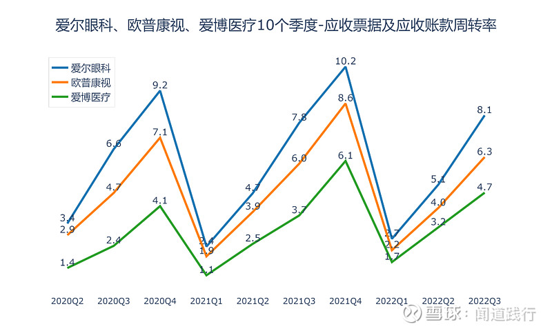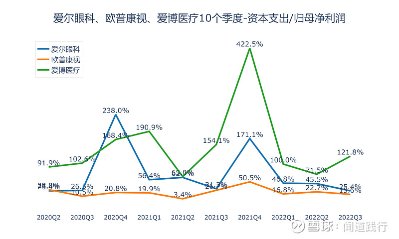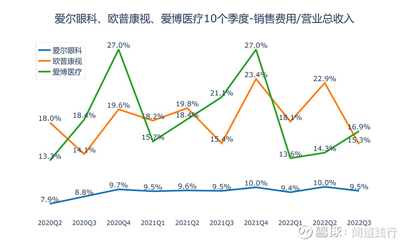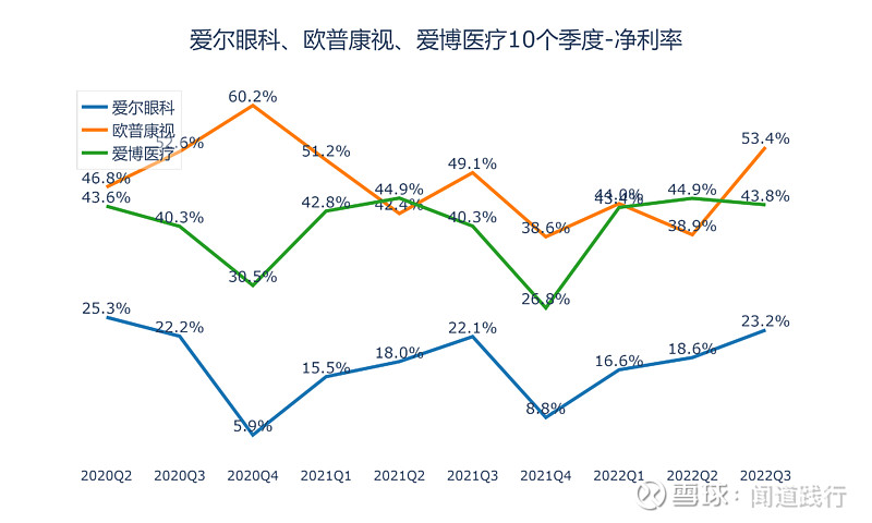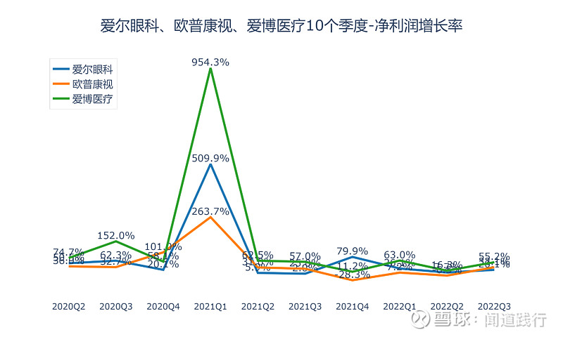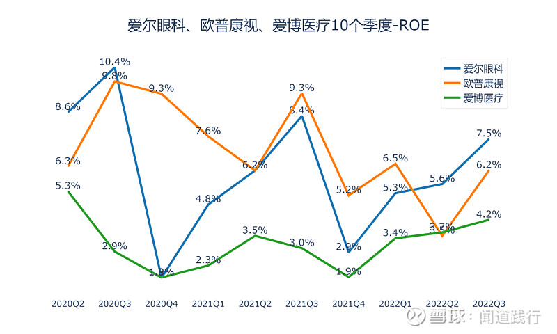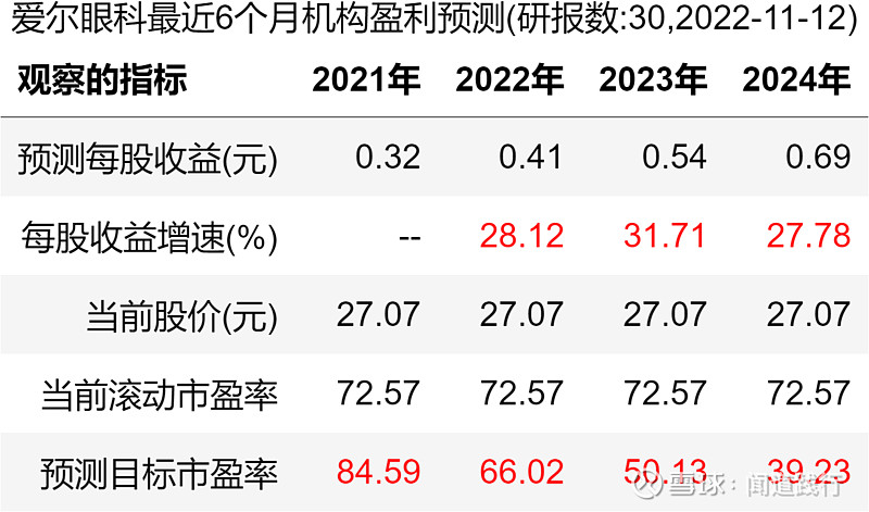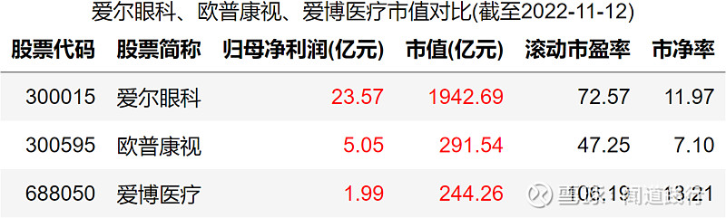 爱尔眼科(300015):每股净资产 2.31元,每股净利润 0.43元,历史净利润年均增长 30.89%,预估未来三年净利润年均增长 28.01%,更多数据见:爱尔眼科300015核心经营数据 爱尔眼科的当前股价 27.92元,市盈率 74.85,未来三年的估值假设和预期收益率如下:15倍PE,预期收益率 -75.71%;20倍PE,预期收益率 -67.62%;25倍PE,预期收益率 -59.52%;30倍PE,预期收益率 -51.42%。 10月26号,河北省医用药品器械集中采购中心发布《关于开展20种集采医用耗材产品信息填报工作的通知》,采购品种包括角膜塑形用硬性透气接触镜,即大众俗称的OK镜。 消息一出,10月27日,欧普康视跌超18%,爱尔眼科、爱博医疗跌超10%。 OK镜纳入集采后,价格有望迎来大幅下调,两万一副的配镜很快会成为历史。 我国青少年近视比例非常高,截至2020年底,近视的高中生超过八成,初中生有超过70%近视,近视的小学生居然达到35.6%。相比之下,美国只有25%的青少年近视,澳大利亚青少年近视率仅为1.3%,德国的近视率也一直控制在15%以下: 由于电子产品的普及,青少年的视力健康在持续恶化,近视的发病年龄越来越低,近视加深越来越快,高度近视人数越来越多,近视矫正和近视控制的需求在持续增长。 在集采降价的趋势下,OK镜市场需求能否被激发呢? 今天,我们一起看一下这三家上市公司:爱尔眼科、欧普康视和爱博医疗。 本文主要包括5个方面:盈利能力、运营能力、偿债能力、成长能力和目前估值,看完,希望能加深你对这些公司的理解。 1、盈利能力 1)主营业务及占比 这三家公司的产品,都是和眼科相关的,毛利率都非常高。 2)营收及归母净利润 营收,爱尔眼科遥遥领先,其次是欧普康视,爱博医疗第三。 归母净利润,爱尔眼科遥遥领先,其次是欧普康视,爱博医疗第三。 扣非净利润,爱尔眼科遥遥领先,其次是欧普康视,爱博医疗第三。 3)毛利率 毛利率,三家都非常高,爱博医疗最高,长期维持在80%以上,其次是欧普康视,爱尔眼科第三。 4)净利率 净利率,欧普康视最高,长期维持在40%左右,其次是爱博医疗,爱尔眼科第三。 5)经营活动现金流净额 经营活动现金流,爱尔眼科最高,其次是欧普康视,爱博医疗第三。 6)归母净利润转换为经营活动现金流的能力 积累现金的能力,爱尔眼科最强,其次是爱博医疗,欧普康视第三。 2、运营能力 1)总资产周转率 总资产周转率,三家都不高,爱尔眼科最高,其次是欧普康视,爱博医疗第三。 2)存货及存货周转率 存货,爱尔眼科最高,其次是欧普康视,爱博医疗最低。 存货占营收的比例,爱博医疗最高,其次是欧普康视,爱尔眼科最低。 存货周转率,爱博医疗最高,其次是欧普康视,爱尔眼科最低。 3)应收账款及应收账款周转率 应收账款,爱尔眼科遥遥领先,其次是欧普康视,爱博医疗最低。 应收账款占营收的比例,三家公司都比较高,爱博医疗最高,长期维持在60%以上,其次是欧普康视,爱尔眼科第三。 应收账款周转率,爱尔眼科最高,其次是欧普康视,爱博医疗第三。 4)合同负债及占比 合同负债,三家都不高。 合同负债占营收的比例,欧普康视最高,其次是爱尔眼科,爱博医疗第三。 5)固定资产占比 固定资产占总资产的比例,三家都不高,爱博医疗最高,其次是爱尔眼科,欧普康视第三。 3、偿债能力 1)资产负债率 资产负债率,爱尔眼科最高,其次是欧普康视,爱博医疗最低。 2)有息负债 有息负债,爱尔眼科遥遥领先,其次是爱博医疗,欧普康视最低。 3)现金余额 现金余额,爱尔眼科最高,其次是欧普康视,爱博医疗第三。 三家公司现金余额都远超过有息负债,偿债无忧。 4)资本支出及占比 资本支出,爱尔眼科最高,其次是爱博医疗,欧普康视最低。 资本支出占归母净利润的比例,爱博医疗最高,其次是爱尔眼科,欧普康视最低。 4、成长能力 1)营收增长率 营收增速,爱博医疗最快,其次是欧普康视,爱尔眼科最低。 2)净利润增速 净利润增速,爱博医疗最快,其次是爱尔眼科,欧普康视第三。 3)销售费用占比 销售费用占营业总收入的比例,爱博医疗最高,其次是欧普康视,爱尔眼科最低。 4)研发投入及占比 研发投入,爱尔眼科最高,其次是爱博医疗,欧普康视最低。 研发投入占营收的比例,爱博医疗最高,其次是欧普康视,爱尔眼科最低。 5)净资产收益率 净资产收益率,欧普康视最高,其次是爱尔眼科,爱博医疗第三。 6)机构盈利预测 未来3年,机构预测爱尔眼科每股收益增速分别为28.12%、31.71%和27.78%: 未来3年,机构预测欧普康视每股收益增速分别为24.19%、31.17%和29.70%: 未来3年,机构预测爱博医疗每股收益增速分别为43.56%、40.60%和37.69%: 可以看出,机构的这些预测,没有考虑集采的影响,后续研报对业绩的预期可能会适当降低。 5、目前估值 1)滚动市盈率 目前爱尔眼科的滚动市盈率为72.57,处于10年来43.72的分位值: 目前欧普康视的滚动市盈率为47.25,处于10年来16.83的分位值: 目前爱博医疗的滚动市盈率为106.19,处于2年来21.58的分位值: 2)市净率 目前爱尔眼科的市净率为11.97,处于10年来33.86的分位值: 目前欧普康视的市净率为7.1,处于5年来1.27的分位值: 目前爱博医疗的市净率为13.21,处于2年来48.56的分位值: 3)股息率 目前爱尔眼科的股息率为0.33%,处于10年来43.85的分位值: 目前欧普康视的股息率为0.43%,处于5年来96.53的分位值: 目前爱博医疗的股息率为0%,处于2年来100的分位值: 6、总结 通过以上对比分析,这三家公司整体能力如下图所示: 可以看出: 1)盈利能力