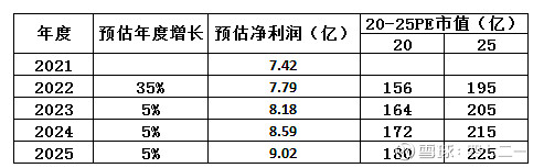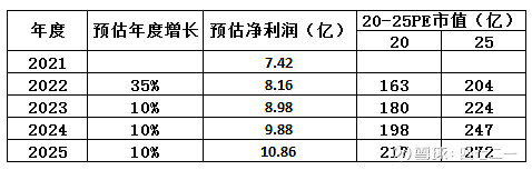 涪陵榨菜(002507):每股净资产 8.51元,每股净利润 0.87元,历史净利润年均增长 26.53%,预估未来三年净利润年均增长 18.81%,更多数据见:涪陵榨菜002507核心经营数据 涪陵榨菜的当前股价 27.25元,市盈率 25.88,未来三年的估值假设和预期收益率如下:15倍PE,预期收益率 -19.68%;20倍PE,预期收益率 7.09%;25倍PE,预期收益率 33.86%;30倍PE,预期收益率 60.63%。 $涪陵榨菜(SZ002507)$ 涪陵榨菜的业务比较简单,报表也比较干净,没什么复杂的报表科目,年报都不到200页,算是比较清爽的财报分析了。 涪陵榨菜公司基本情况: 公司成立日期:1988年4月30日 公司上市日期:2010年11月23日 实控人:涪陵国资委 上市约12年,市值增长约9倍,大牛股。当前股价24.32元,相较最高股价55.59元,还是腰斩有余的股价,可想而知历史峰值的市值增长应该超20倍。 公司主营业务:公司主要从事榨菜、萝卜、泡菜、下饭菜和其他佐餐开味菜等方便食品的研制、生产和销售。在行业中,公司产销量处于领先地位,产品有较高市场占有率,旗下“乌江”品牌具有很高的知名度和美誉度。 公司成长性:公司2010年上市以来(见下表)。营收CAGR 15%;净利润CAGR 27%;扣非净利润CAGR 26%。整体来看,成长性很强,营收增长远远低于利润增长,说明公司可能提价较多。 近3年数据见上表,营收CAGR 10%,净利润CAGR 4%,扣非净利润CAGR 3%,增收不增利,而且增速大大放缓。 主要指标见下表,近7年均值(2015-2021年)及2021年数据对比趋势,各项指标都很好。 财务报表指标见下表,近7年均值(2015-2021年)及2021年数据对比趋势,各项财务数据也很优秀。 从上面的相关数据看,成长性最近3年放缓了,其他指标还行,总体看还是很不错。未来会怎样?需要关注一下公司过去的内生增长和外延增长,以及未来的可能情况。 2010年公司上市时,只有3家子公司,分别是酱油公司、红天国梦和邱家榨菜,到2021年止这3家子公司全部是盈利状态。 上市后设立的子公司有:桑田食客电子商务、垫江县坪山榨菜、榨菜集团食品销售,这3家子公司至今都是盈利的。暂时处于亏损状态的子公司有:惠聚天下电子商务、辽宁开味食品这2家。惠聚天下电子商务2017年设立以来,累计亏损555万,还算不多,只是亏损幅度到2021年还在扩大,趋势不好;辽宁开味食品自2018年设立以来,累计亏损1273万,2021年年报披露该公司“年产5万吨泡菜生产基地建设项目”投资预算6亿,累计投入3.38亿,转固2.04亿,尚未建设完成。 上市后并购2家公司:2011年并购贵州省独山盐酸菜有限公司,至2018年注销,公司持续处于亏损;2015年10月并购四川省惠通食业有限责任公司,自并购日开始持续保持盈利状态,2016年盈利222万,到2021年盈利2.02亿,这笔并购赚翻了,虽然并购形成商誉3900万,但一直不需要计提减值。 公司未来的增长在哪里?看看2021年年报披露的在建工程变动情况。主要集中在“中国榨菜城-乌江涪陵榨菜绿色智能化生产基地”,预算投资36.83亿,进度仅1.29%,该项目计划建设20万吨榨菜生产车间及设备,另外还有一些原料窖池、原料加工车间及配套项目等,产能主要是20万吨榨菜;另外一个项目就是“辽宁年产 5 万吨泡菜生产基地建设项目”,预算投资6亿,进度56.35%,建成后争取早日扭亏为盈。 有个问题,根据招股说明书披露2010年公司榨菜产能6.1万吨,加上后期的扩产,再加上2015年并购四川省惠通食业有限责任公司,产能肯定有所增加。再来看看榨菜的销售量,2020年是13.56万吨,2021年是13.48万吨。今募投项目的榨菜产能是20万吨,计划建设期3年,达产期3年,即在当前基础上再翻一倍以上,市场能消化么?会不会有点冒进? 外销业务,到2021年仅2911万,虽然持续保持增长,但体量太小,对公司整体业绩影响小。 分红情况,2010-2021年股利支付率平均42%,期间仅2020年度未分红,2021年中期分红一次,年度再分配一次,估计这个安排与增发有关。税前分红率平均不到1%。 公司董监高的薪酬很克制,2021年董事长的税前薪酬仅62.33万,董监高的薪酬合计517万,还不如某些上市公司一个高管的薪酬高。董事长周斌全2000年加入公司并担任董事长和总经理,现任董事、总经理赵平,2005年起任公司副总经理,2007年任董事兼副总经理,2010年继续任董事并接任总经理至今,即周斌全与赵平搭班子已经十几年,董监高团队相对很稳定。只是董事长周斌全今年已59岁,国企的59岁是一个坎,能否续聘关系到公司企业文化的传承或转变? 根据以上分析,公司产能可能会逐步释放,并具备一定的提价权,结合2018-2021年CAGR仅4%,预估未来3年的CAGR为5%,则20-25PE的市值估算如下表: 如果未来3年CAGR为10%,则20-25PE的市值估算如下表: 暂且分析到此,记录一下当前市值。 如果投资涪陵榨菜,赚钱了,吃点涪陵榨菜,那是很酸爽的;如果不幸买贵被套了,或者亏损割肉了,那也吃点涪陵榨菜,同样是非常酸爽的…… 本人未持有涪陵榨菜,分析公司仅是为了储备个股。 个人观点,不构成投资建议。不喜勿喷! 作者:四七二一原文链接:https://xueqiu.com/1561972350/236378879 转载请注明:www.51xianjinliu.com » 酸爽的涪陵榨菜221126 喜欢 (0)or分享 (0)