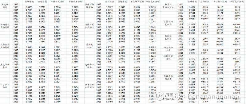 涪陵榨菜(002507):每股净资产 8.51元,每股净利润 0.87元,历史净利润年均增长 26.53%,预估未来三年净利润年均增长 18.81%,更多数据见:涪陵榨菜002507核心经营数据 涪陵榨菜的当前股价 26.73元,市盈率 25.38,未来三年的估值假设和预期收益率如下:15倍PE,预期收益率 -18.12%;20倍PE,预期收益率 9.17%;25倍PE,预期收益率 36.46%;30倍PE,预期收益率 63.76%。 不论是以前把馒头夹榨菜当作主食的,还是把榨菜当作饭前开胃小食的人们,一定对近年来榨菜悄无声息的从以前的五毛一包涨价到两元一包的现象,感到万分感慨。那么在榨菜涨价的背后,榨菜的成本涨价多少?公司能否从涨价中获取额外收益? 对此,本文从公司年报的产品销售信息着手,统计如下数据: 2015年涪陵榨菜:全年榨菜营收8.7亿、成本4.75亿、销售量97527.49吨、毛利率45.40%; 2021年涪陵榨菜:全年榨菜营收22.26亿、成本10.06亿、销售量153200吨、毛利率54.80%; 可以容易得到,公司在过去6年里,公司的榨菜单位收入与单位成本分别从0.89万元/吨与0.49万元/吨,上涨至1.45万元/吨与0.66万元吨。也即榨菜收入涨价1.63倍、成本涨价1.35倍。这也对应于公司榨菜毛利率从2015年的45.40%增长至54.80%的数据。 企业产品涨价的背后,涉及因素很多,除了受外在环境因素如通胀、大宗商品价格、劳动力成本、产品供需弹性、市场竞争等影响外,还与产业链中的上下游企业的定价能力有关。 除去通常意义上的产品实际成本的涨幅,公司在与上下游企业之间的商业信用融资收益也是重要的影响方面。有基本的财务知识的人应该清楚,如果从商业信用的融资角度来看,较多的应收账款与较少的应付账款,会增加企业的融资成本,降低自身收益。对此可以得知,从长期来看,企业可以将部分的产品涨价收益以商业信用融资收益的形式转嫁,也即是公司可以从增加应付账款与降低应收账款的方式,使得产品售价不必上涨过多,转嫁了一部分成本。而涪陵榨菜的应收与应付账款在2015-2021年间并无显著变化,这也能部分解释公司榨菜收入与成本涨幅显著的一个原因。 对此,我还收集了如下图所示的数家食品行业的主要产品单位收入与成本、应收与应付在过去几年内的涨价信息: 图中为各家食品公司的名称、经营产品类别、在2015-2021年间的应收、应付、单位收入、单位成本的涨幅信息、部分公司因为上市年份短或者缺失数据,所以数据不完全。 相关链接:过去五年最具提价能力的行业 $涪陵榨菜(SZ002507)$ $黑芝麻(SZ000716)$$海天味业(SH603288)$ @雪球创作者中心 @今日话题 作者:banananananaa原文链接:https://xueqiu.com/9719793318/236936005 转载请注明:www.51xianjinliu.com » 从五毛到两元一包的榨菜背后成本涨价多少涪陵榨菜 喜欢 (0)or分享 (0)